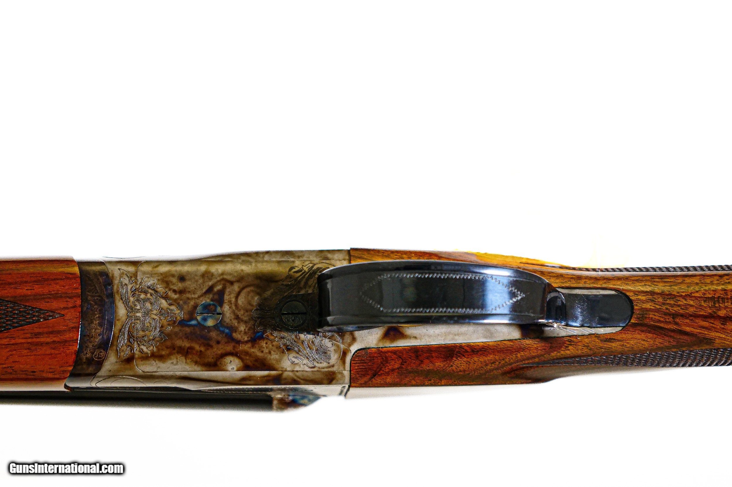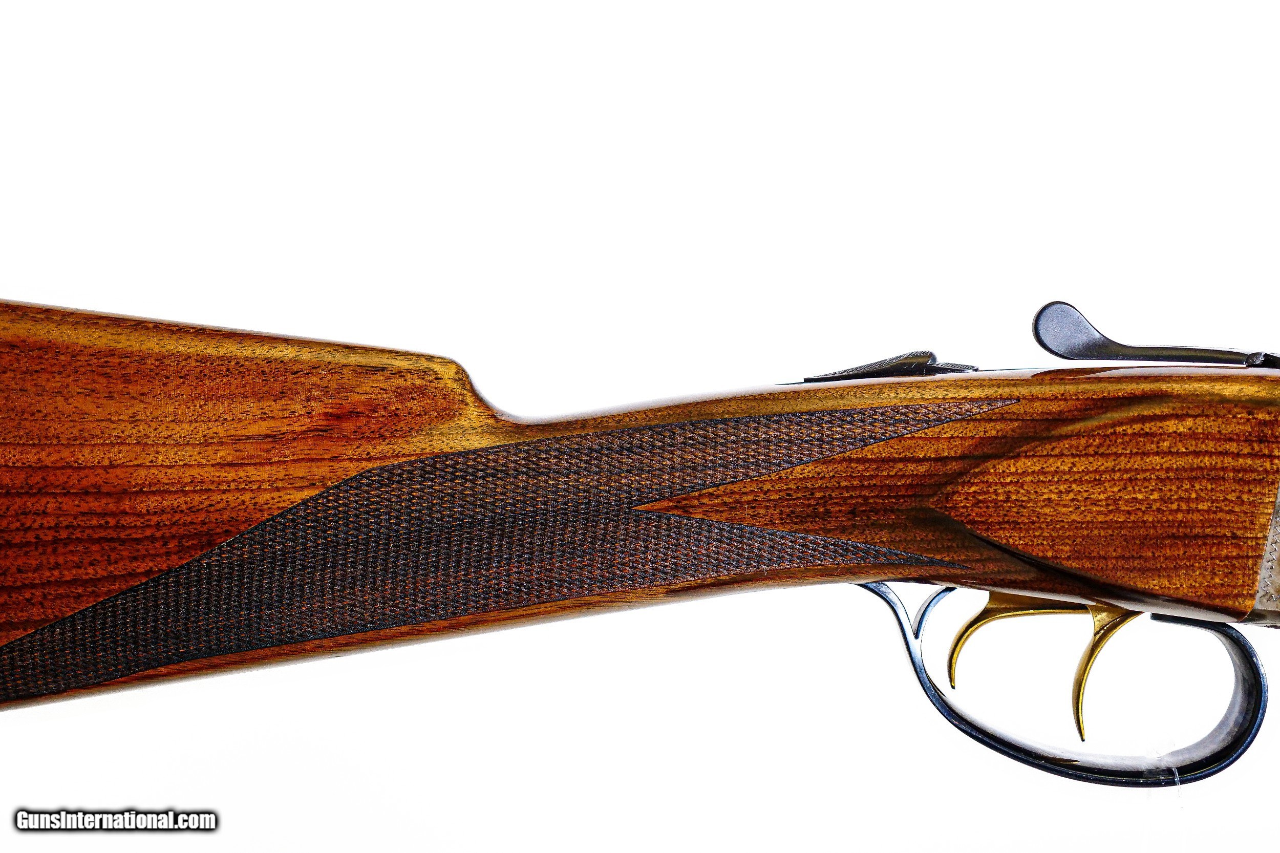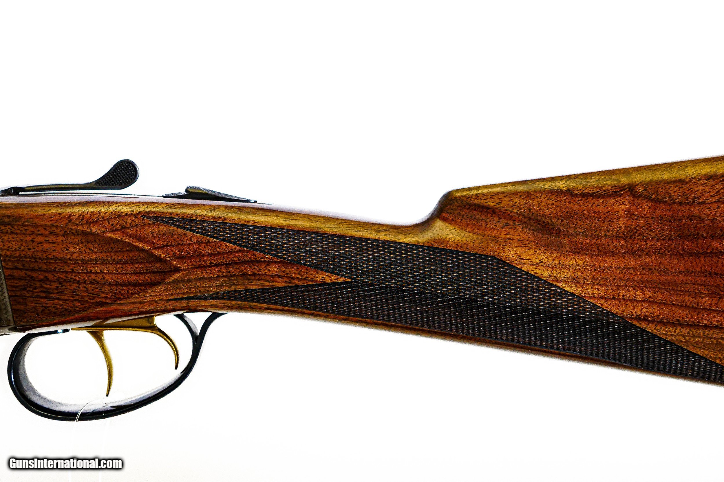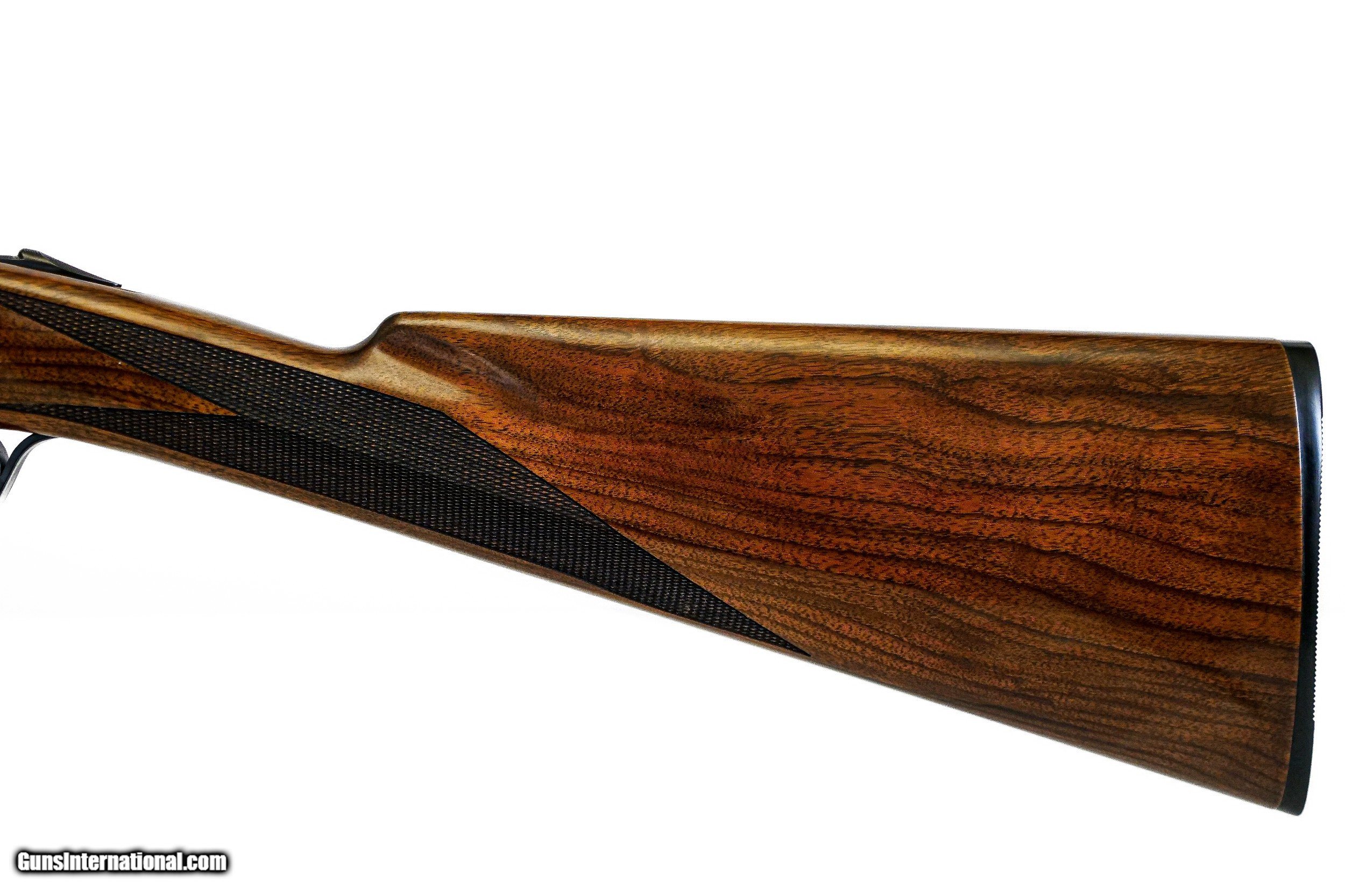 Description: SAVAGE - Fox A Grade, 20ga. 28” Barrels with Factory Screw-in Choke Tubes. Deluxe walnut straight grip stock, factory butt plate, game rib, gold double triggers, splinter forend, automatic ejectors, A grade engraving over magnificent traditional bone and charcoal case coloring, 2 point checkering, rare opportunity, factory new and unfired, cased, available for immediate delivery. S & H - $50.00. Inv: 51895 6 lbs. 0 oz. 14 3/8” x 1 ½” x 2 3/8” $4,250.00 SOLD |