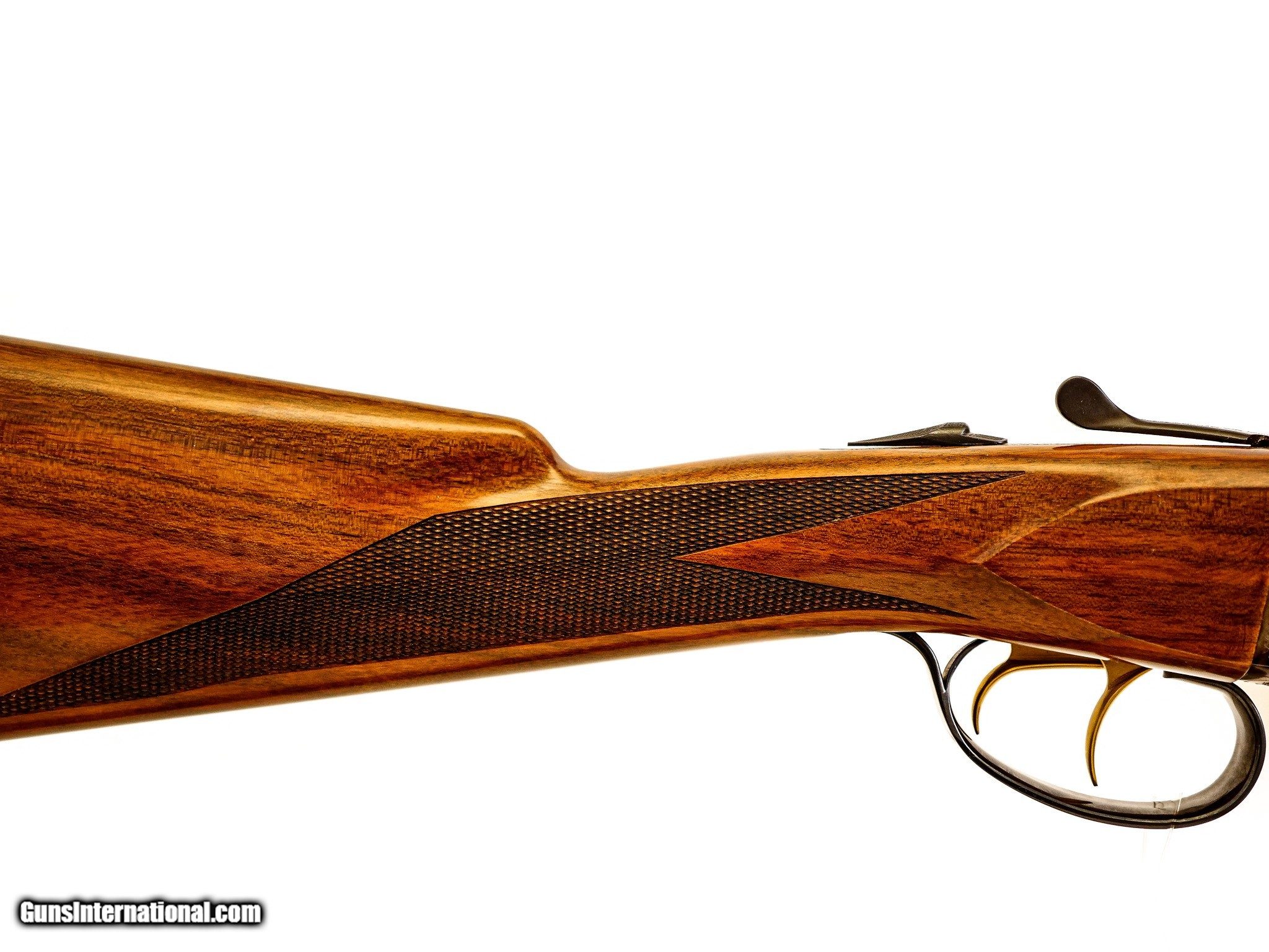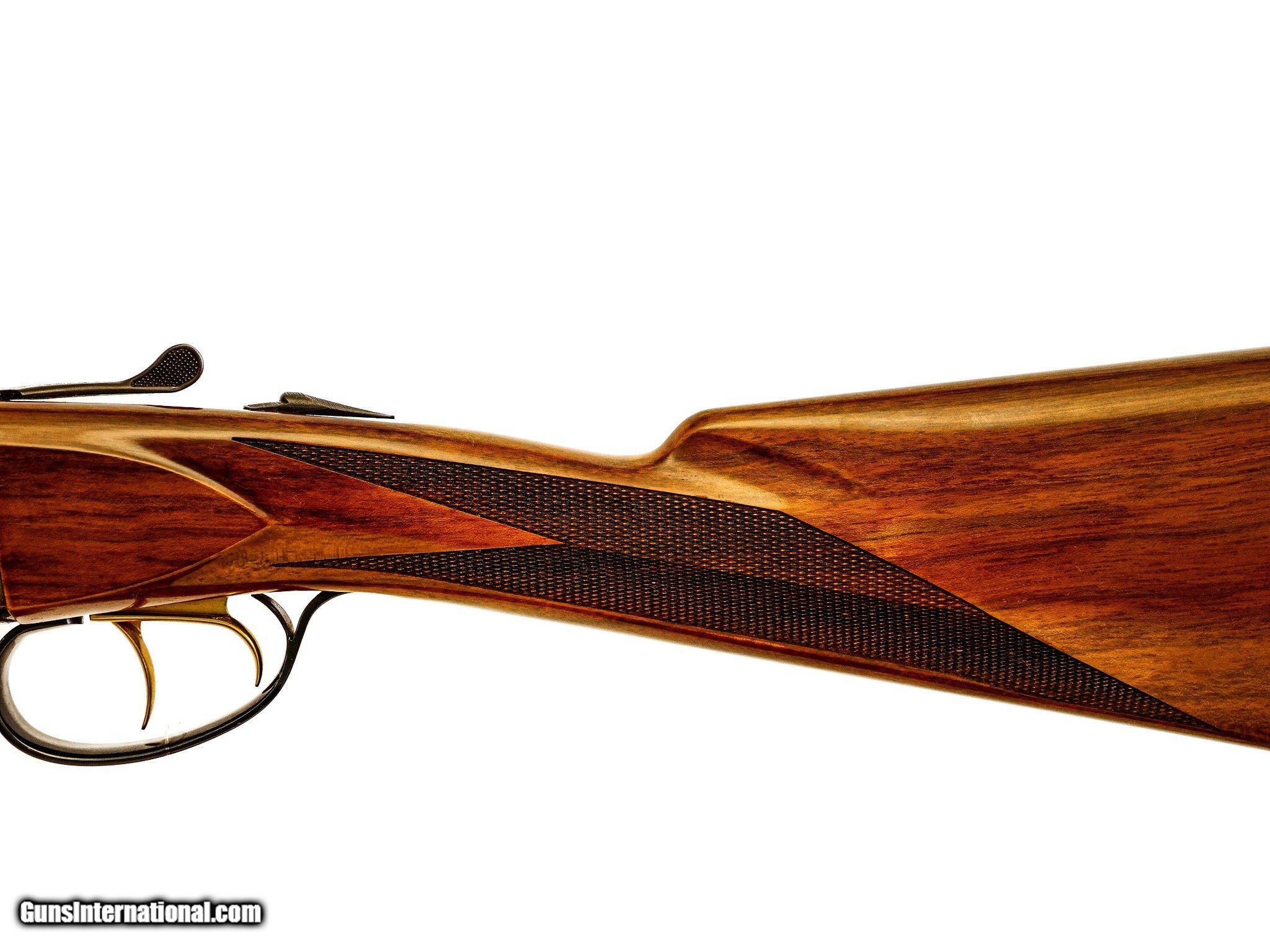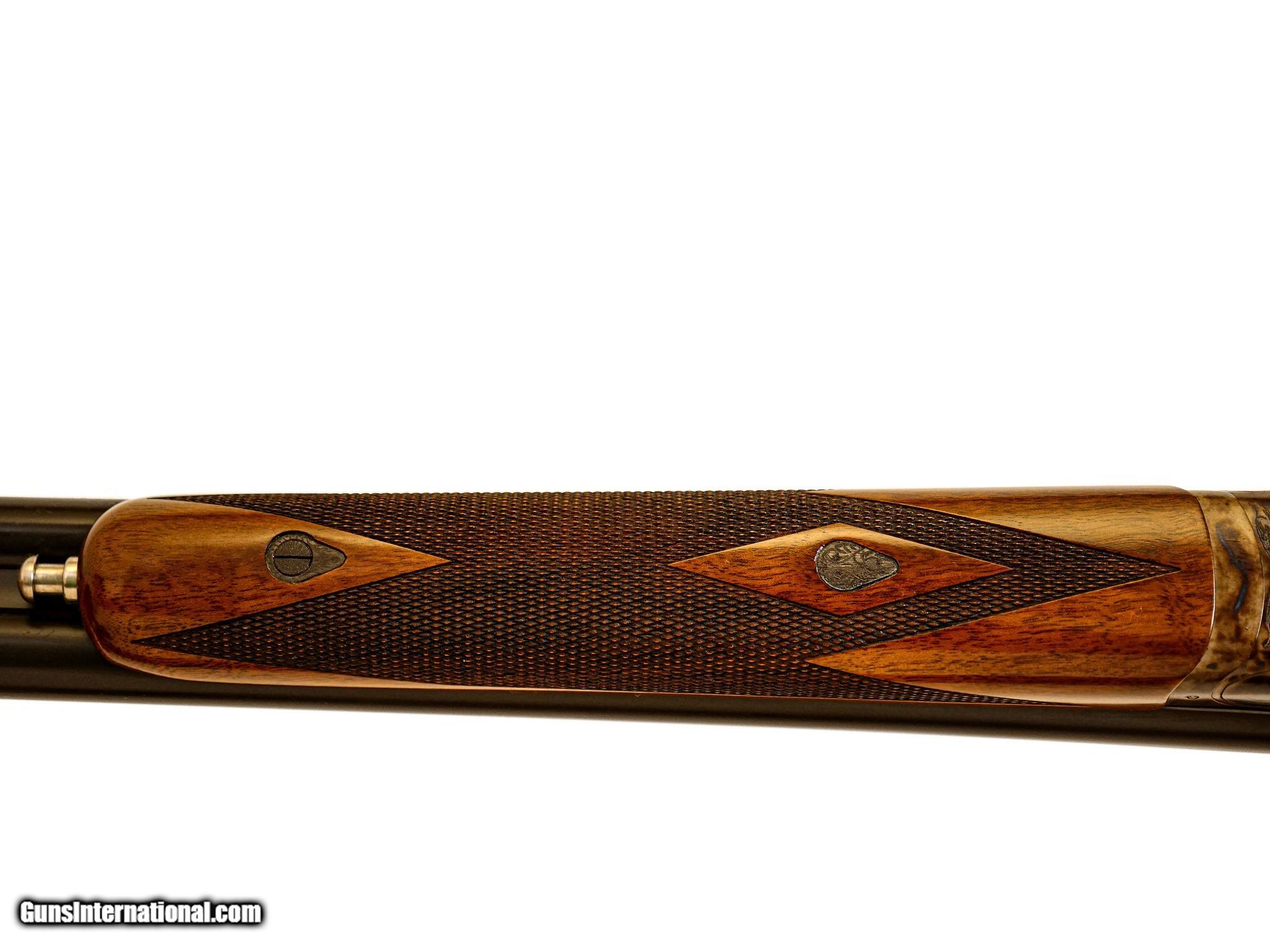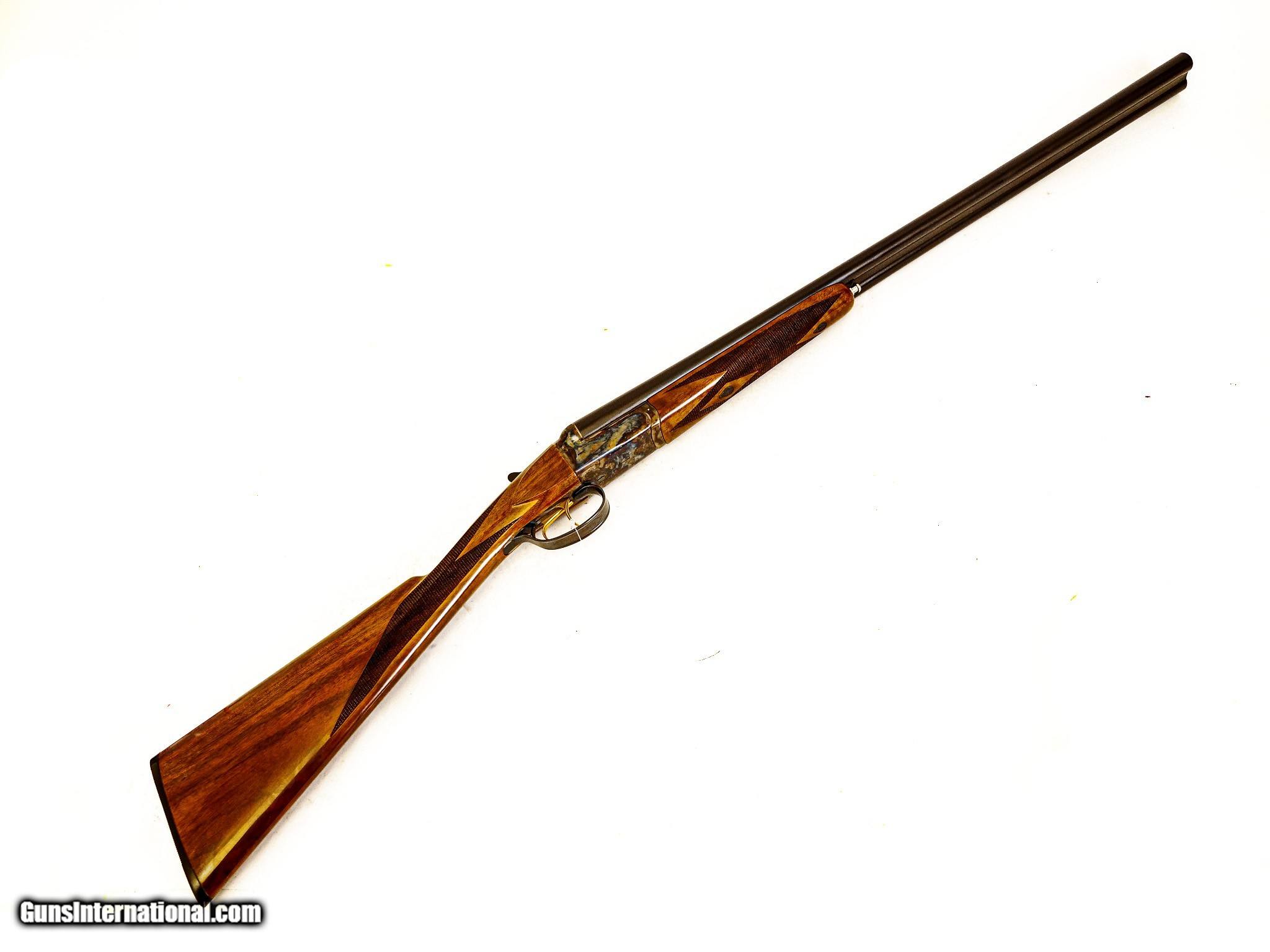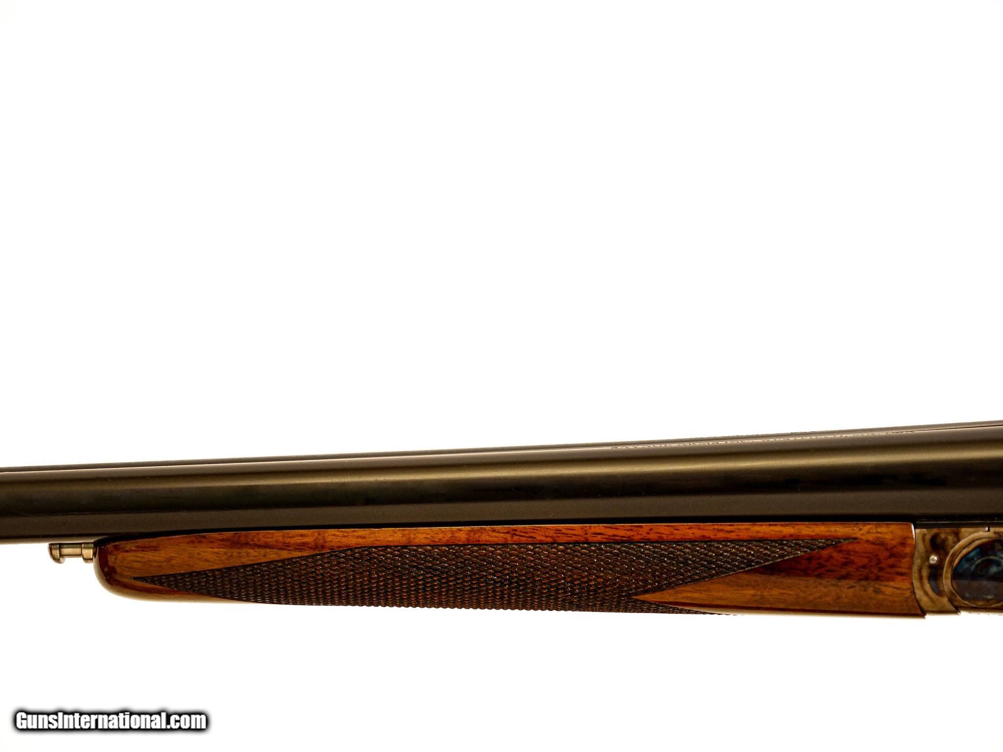 Description: SAVAGE - Fox A Grade, 20ga. 28" Barrels with Factory Screw-in Choke Tubes. Nicely figured walnut straight grip stock, factory butt plate, game rib, gold double triggers, automatic ejectors, A grade engraving over magnificent traditional bone and charcoal case coloring, 2 point checkering, rare opportunity, factory new and unfired, cased, available for immediate delivery. S & H - $50.00. Inv: 52104 5 lbs. 12 oz. 14 3/8” x 1 1/2 ” x 2 3/8” $4,250.00 SOLD |