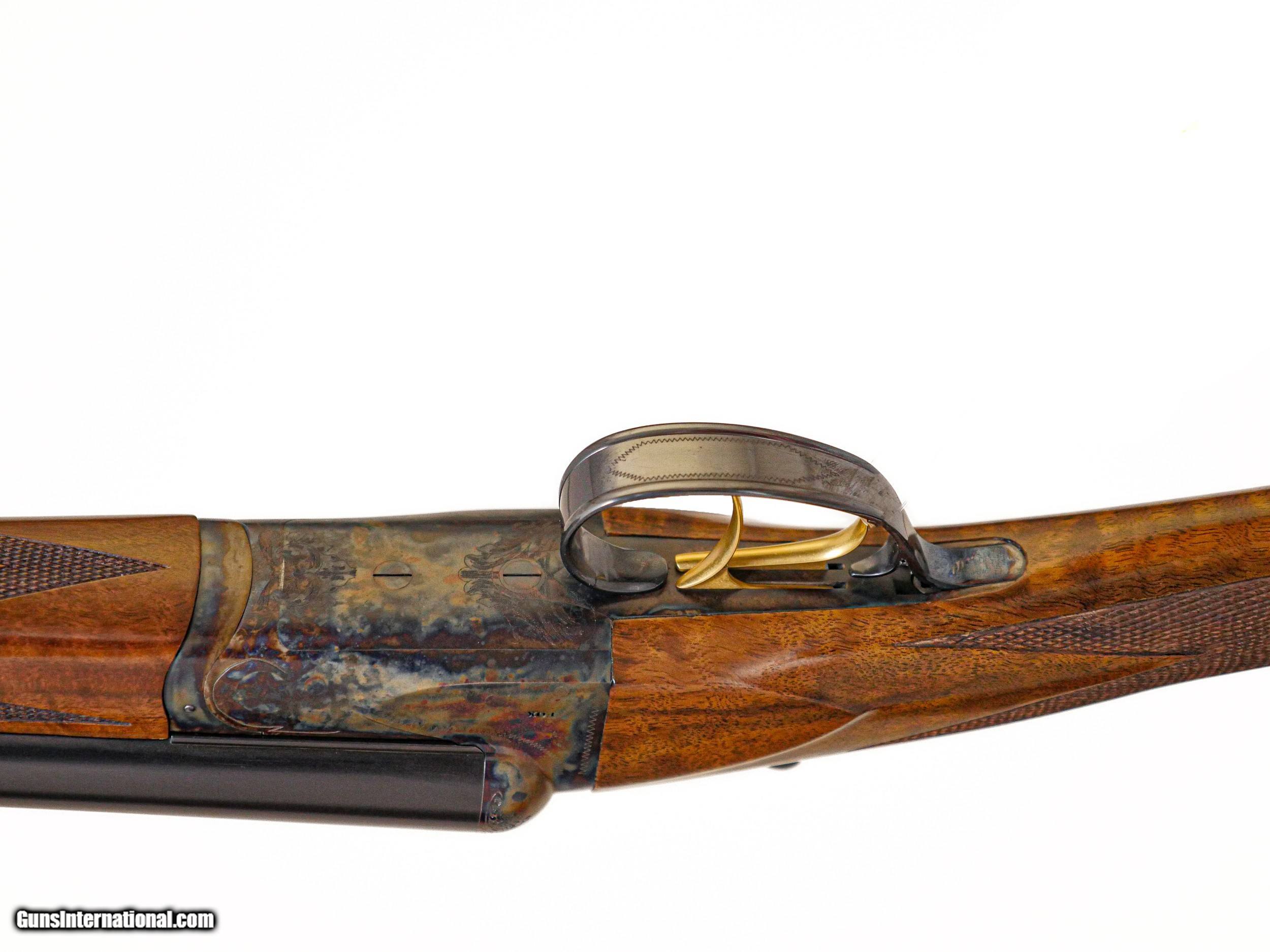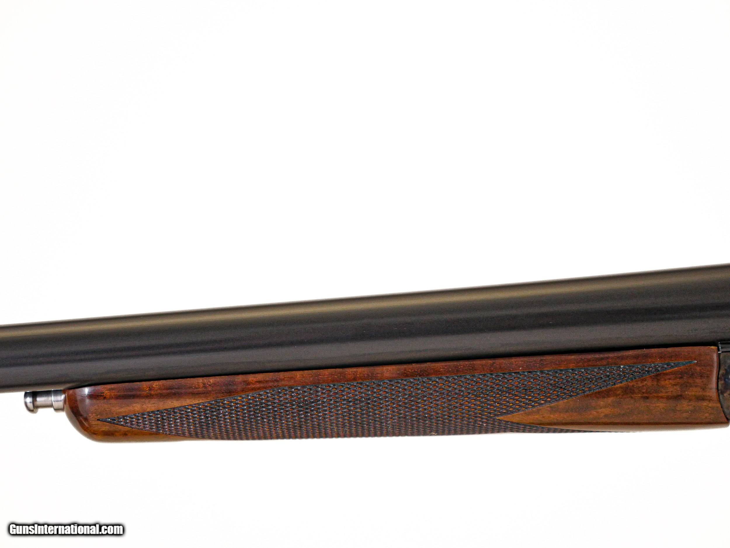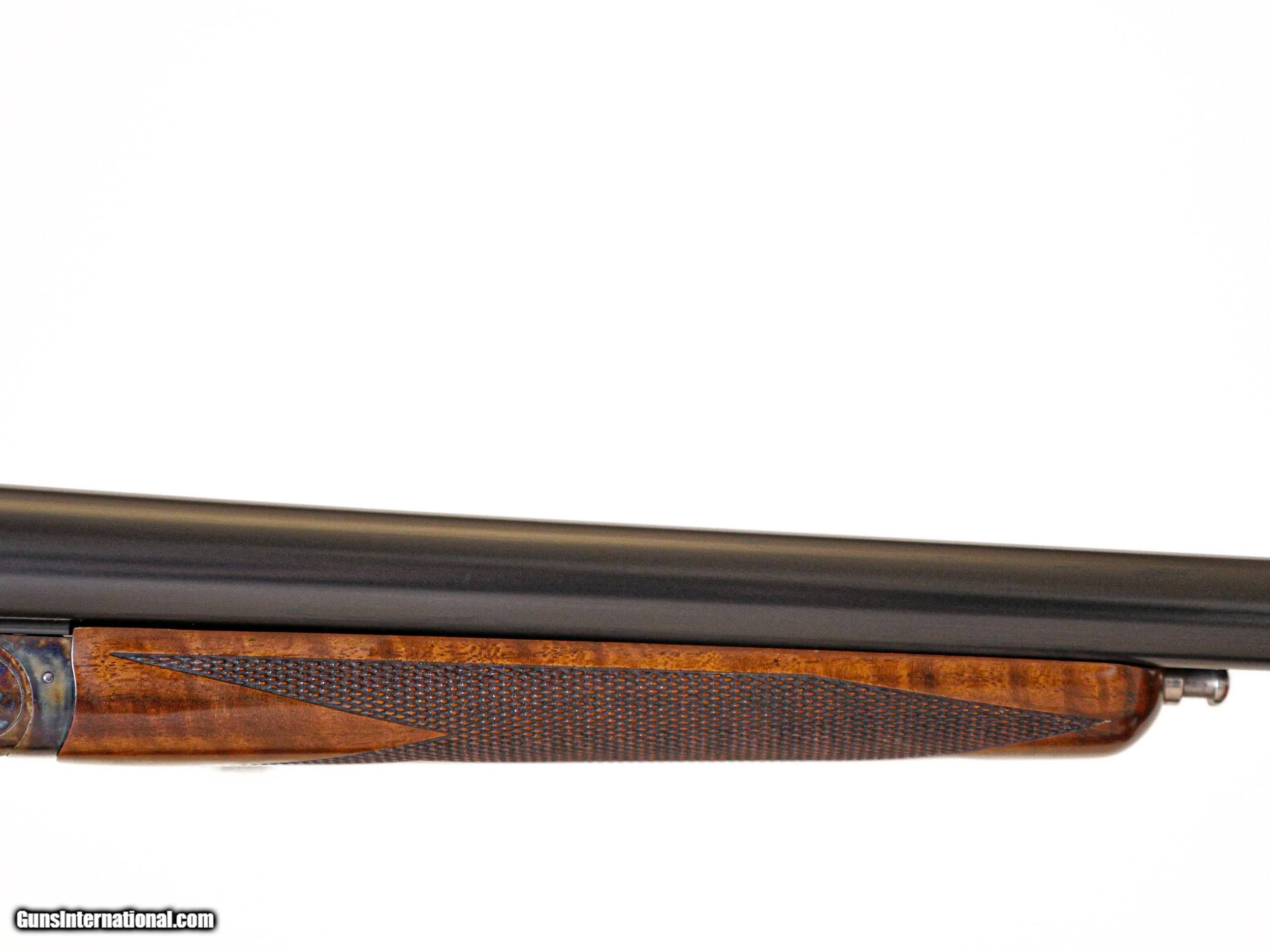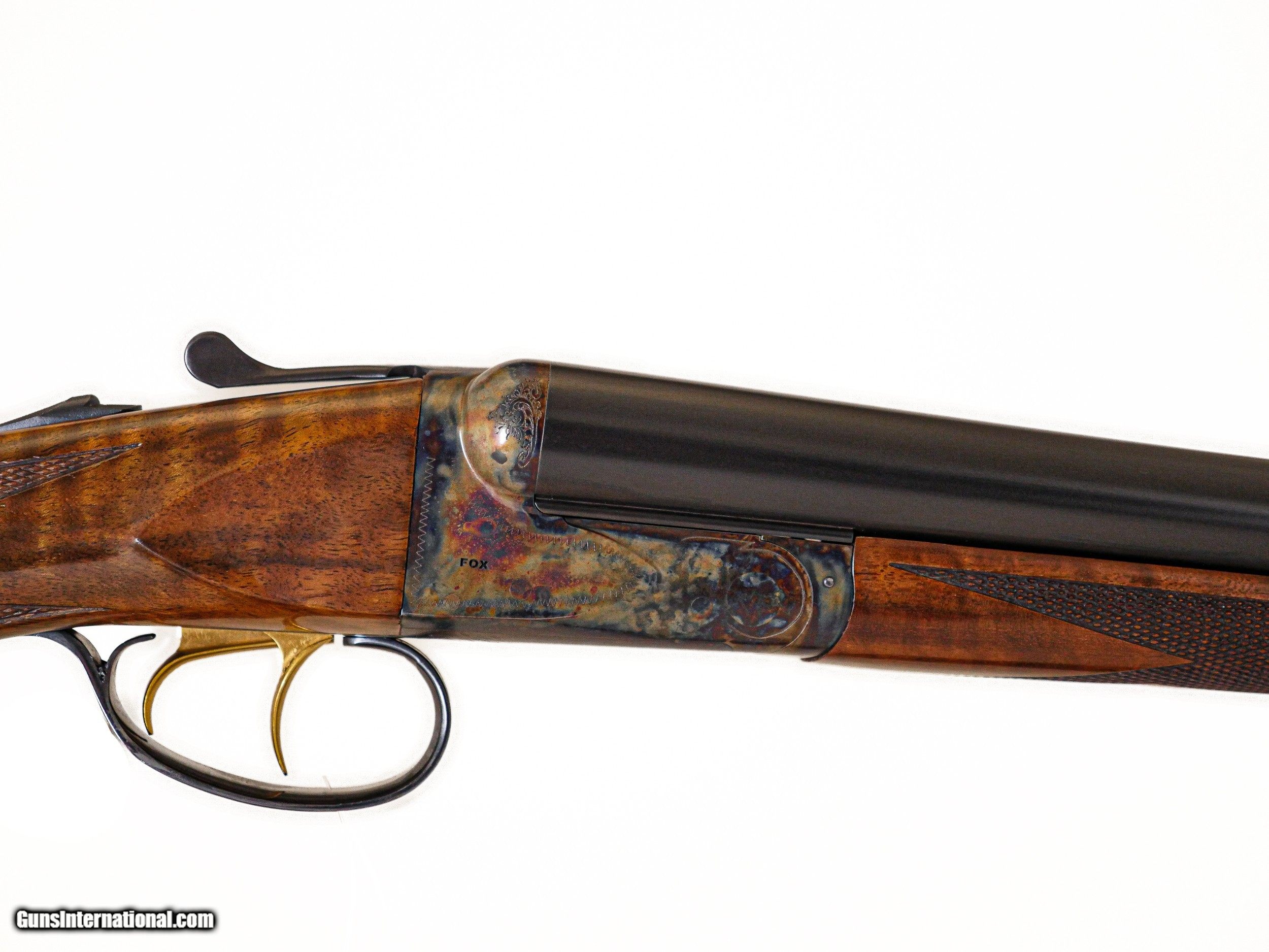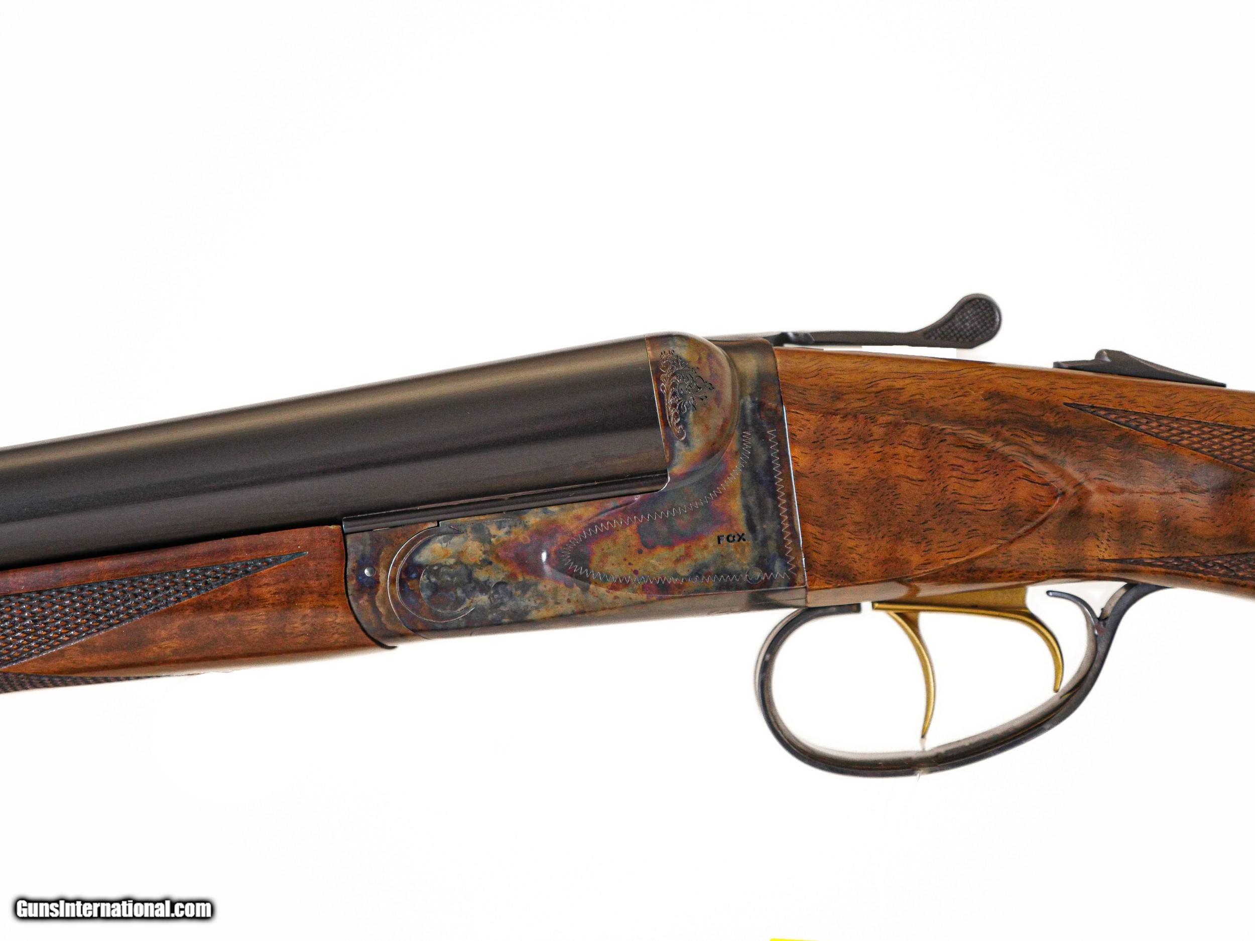 Description: SAVAGE – Fox A Grade, SxS, 20ga. 26” Barrels with Factory Screw-in Choke Tubes. Nicely figured deluxe walnut straight grip stock, factory butt plate, game rib, gold double triggers, automatic ejectors, A grade engraving over magnificent traditional bone and charcoal case coloring, 2 point checkering, rare opportunity, factory new and unfired, cased, available for immediate delivery. S & H - $50.00. Inv: 50983 6 lbs. 14 oz. 14 3/8” x 1 ½” x 2 ¼” $4,250.00 SOLD |