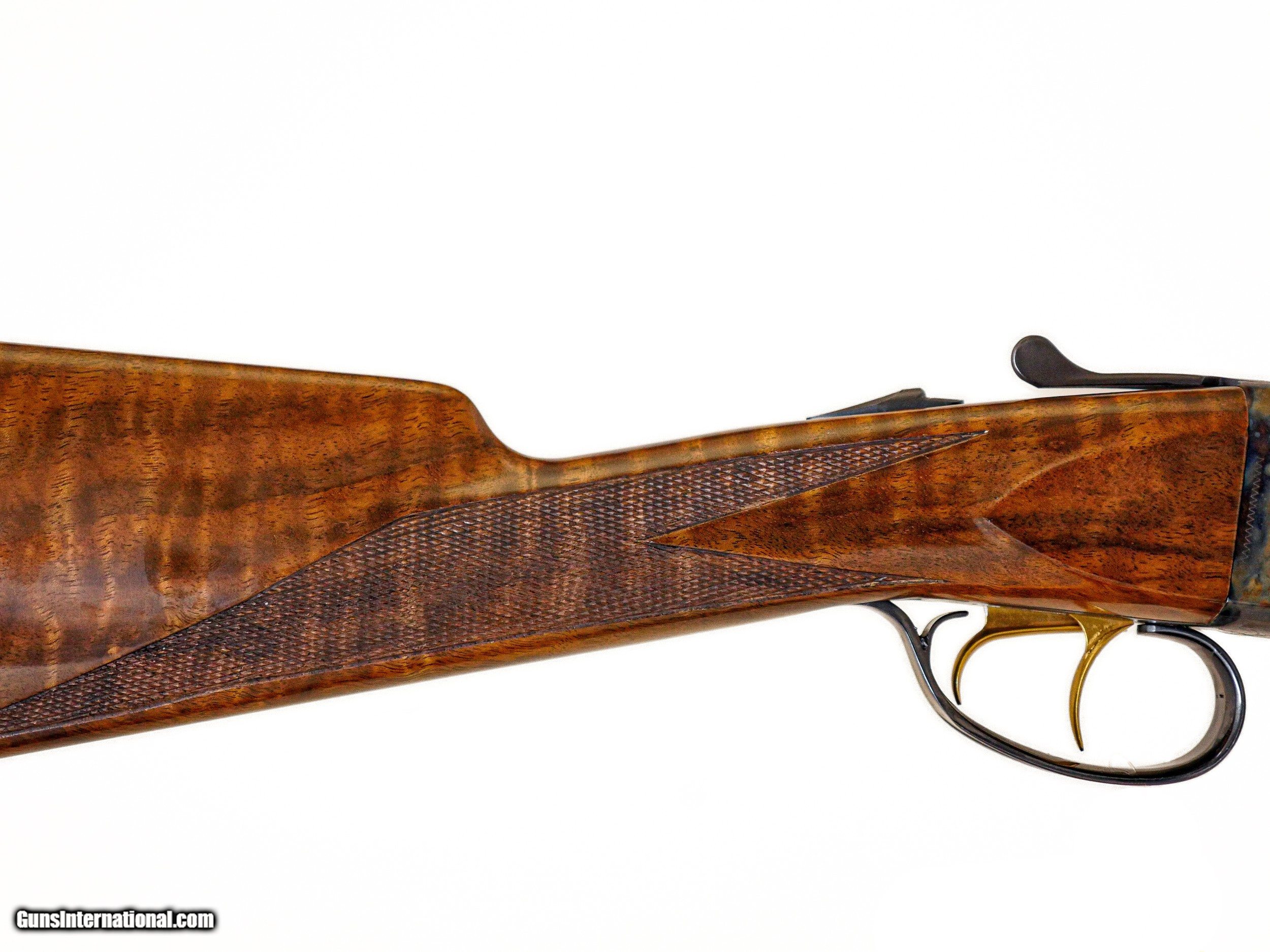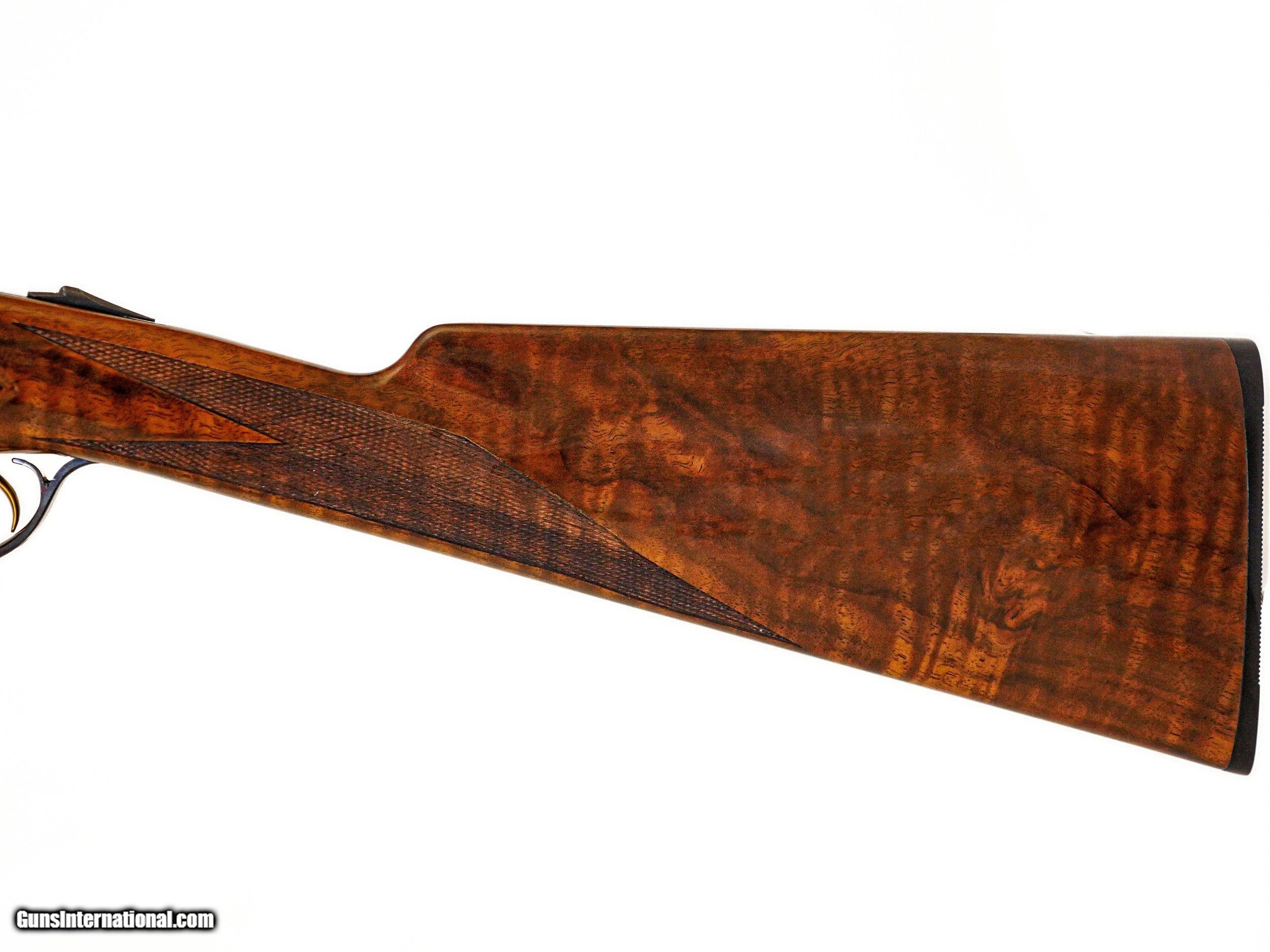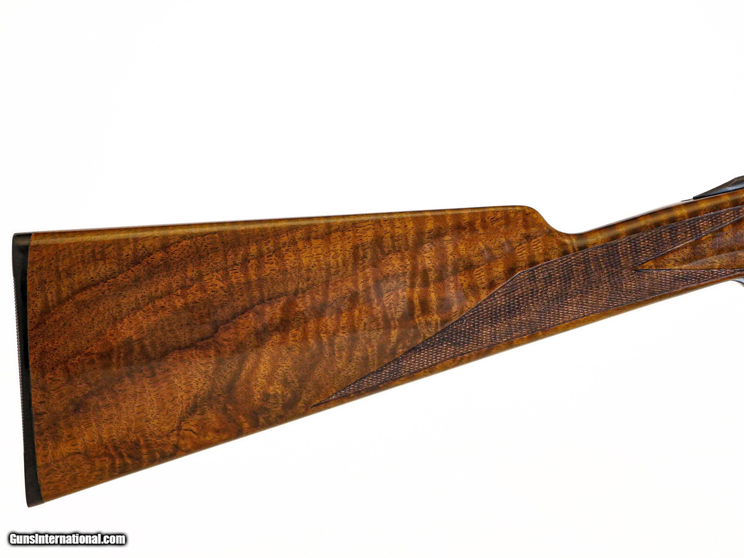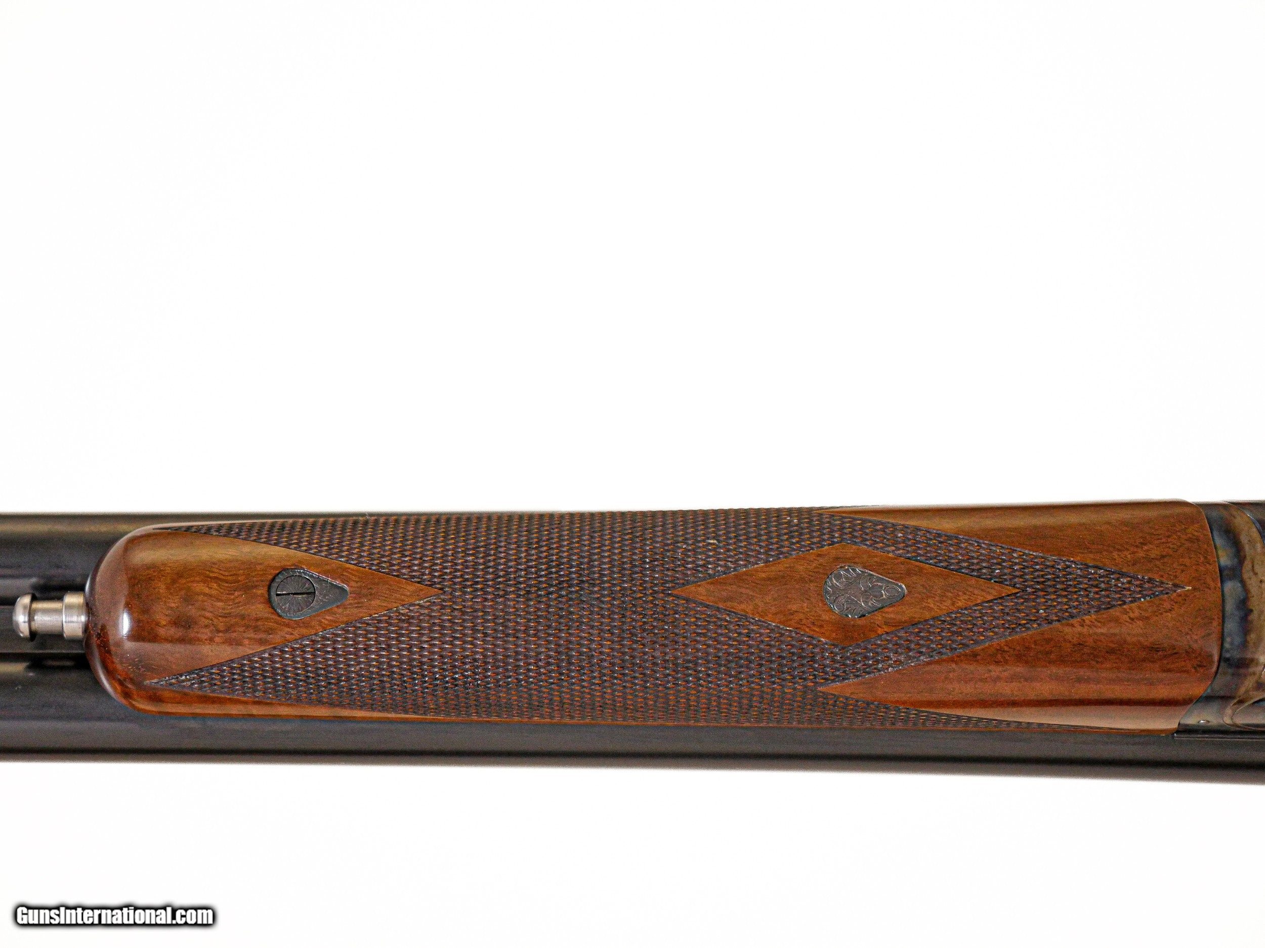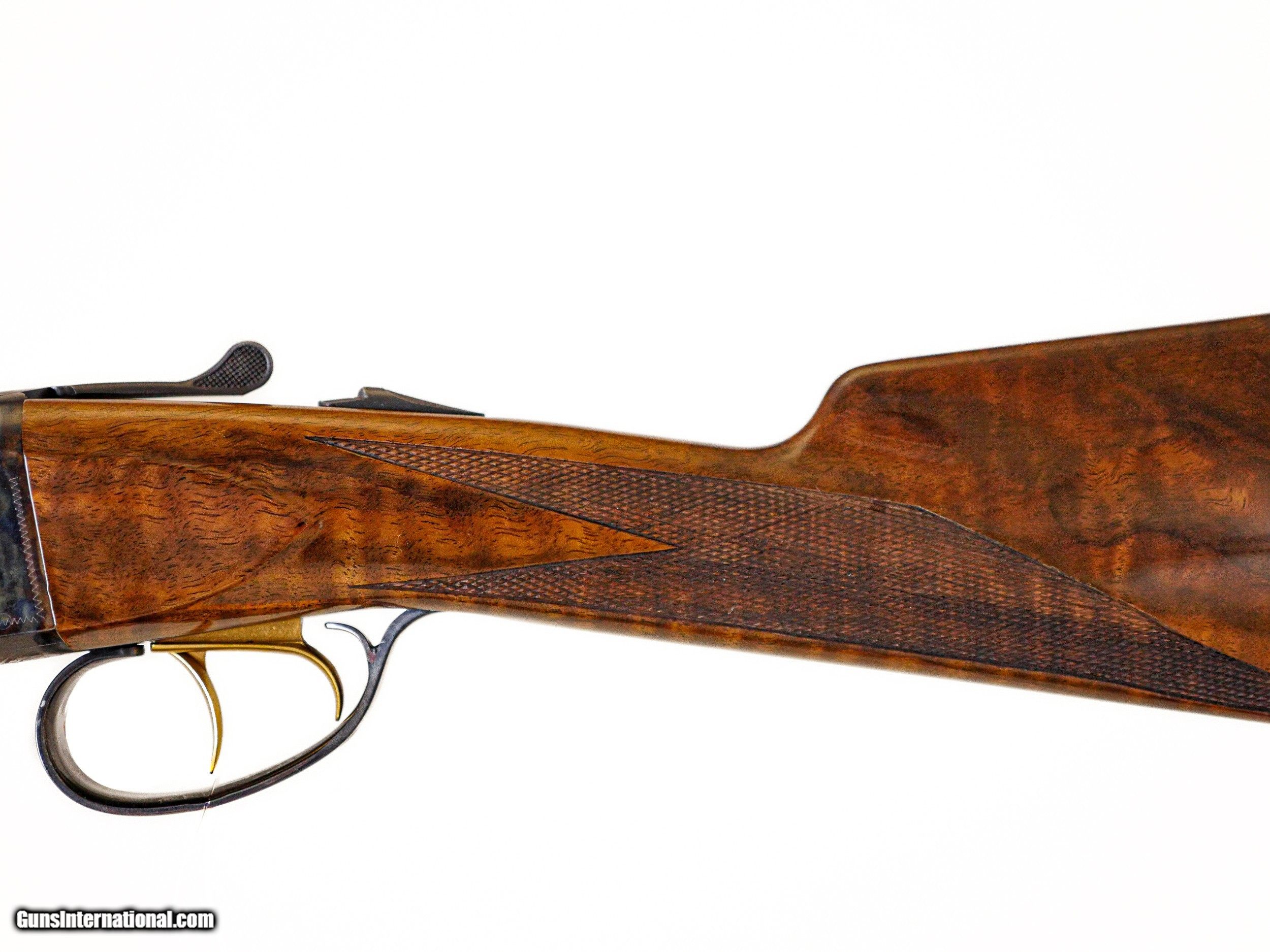 Description: SAVAGE – Fox A Grade, SxS, 20ga. 26” Barrels with Factory Screw-in Choke Tubes. Nicely figured deluxe walnut straight grip stock, factory butt plate, game rib, gold double triggers, automatic ejectors, A grade engraving over magnificent traditional bone and charcoal case coloring, 2 point checkering, rare opportunity, factory new and unfired, cased, available for immediate delivery. S & H - $50.00. Inv: 50983 6 lbs. 14 oz. 14 3/8” x 1 ½” x 2 ¼” $4,250.00 SOLD |