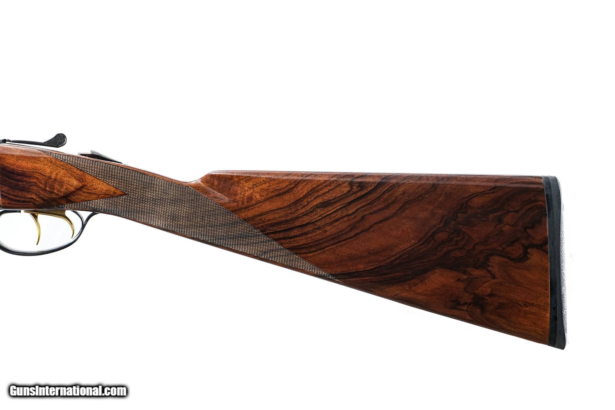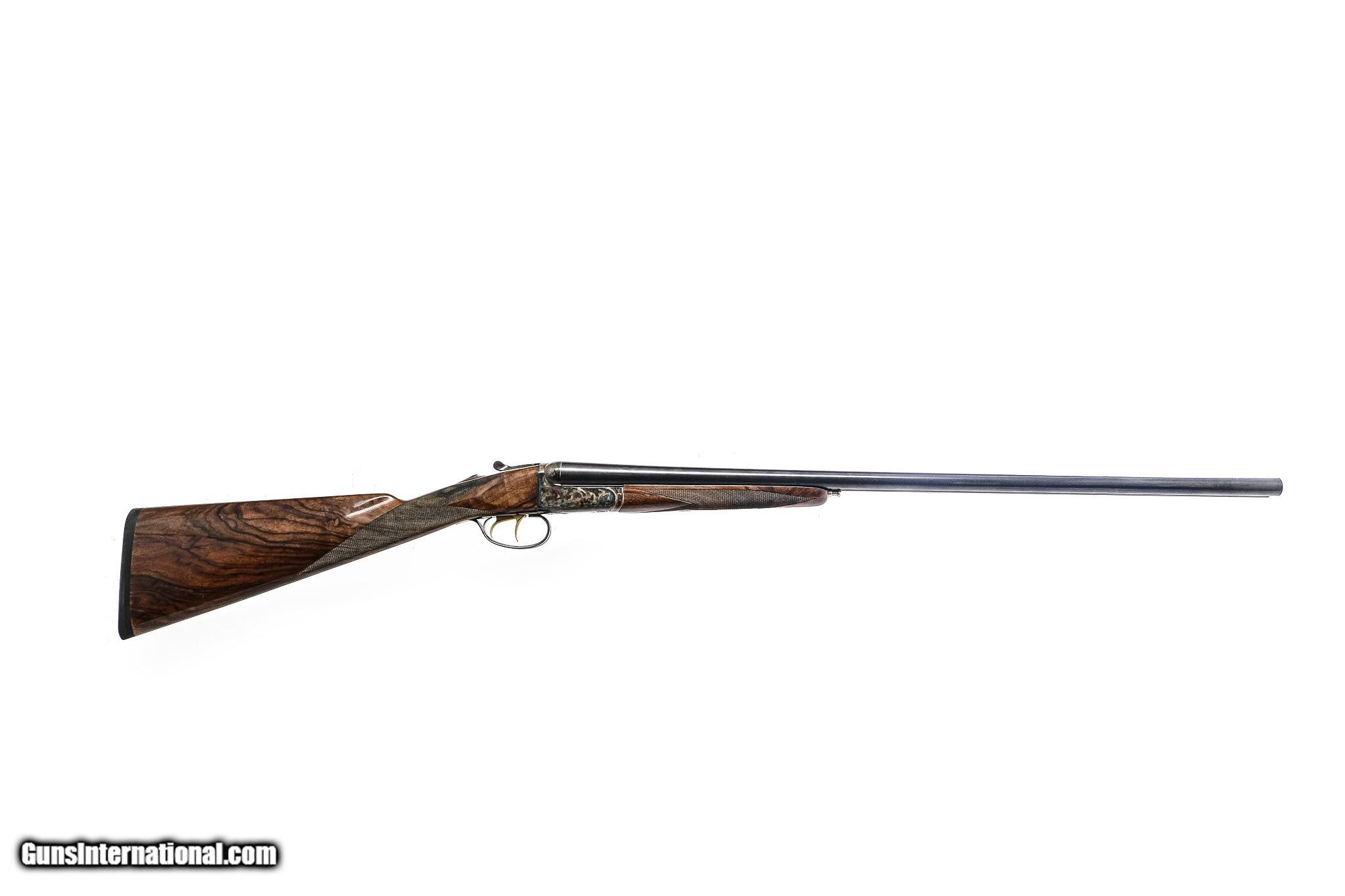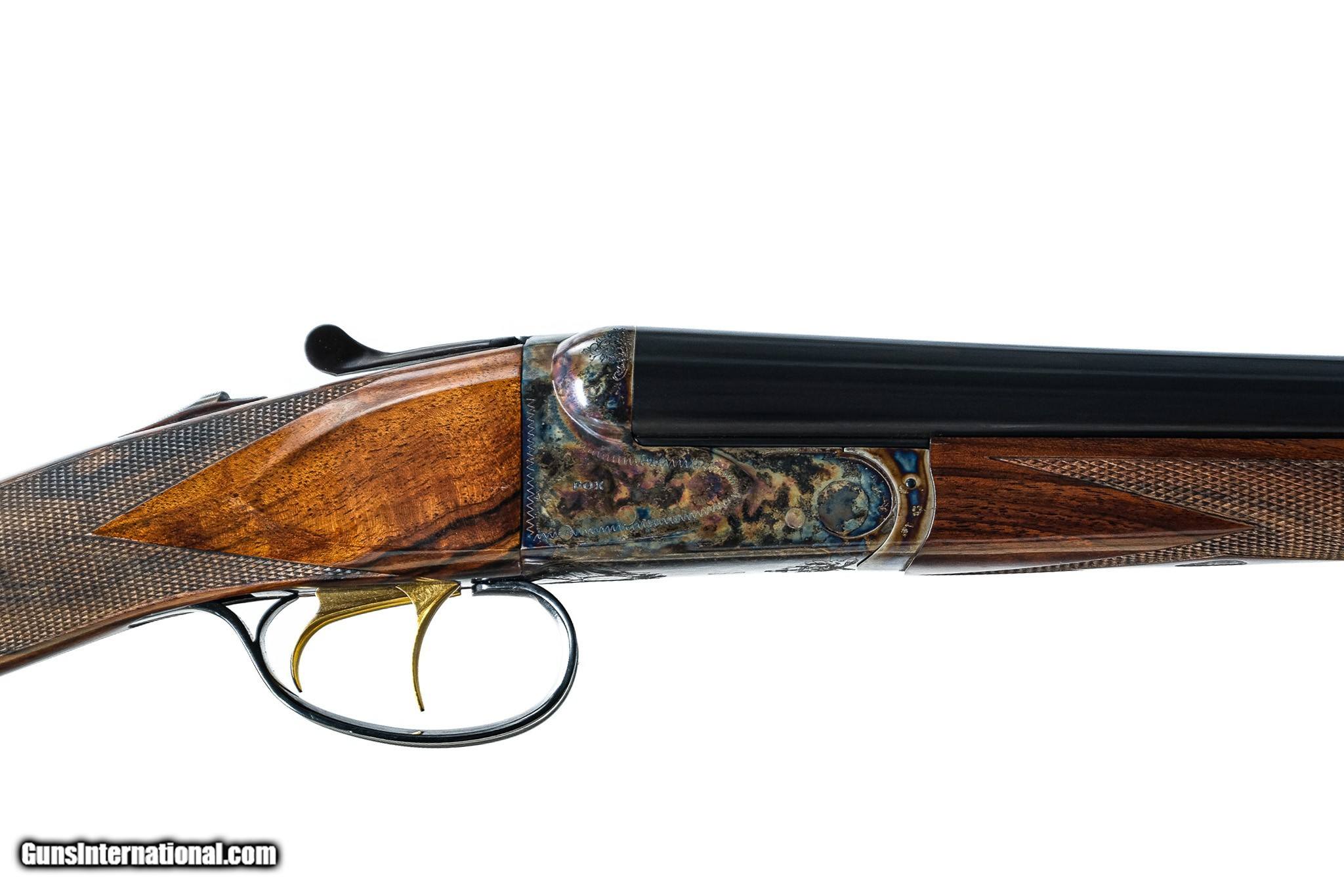 Description: SAVAGE - Fox A. Grade, SxS, 20ga. 28" Barrels with Factory Screw-in Choke Tubes. Stunning Turkish Circassian walnut straight grip stock, thin factory recoil pad, game rib, gold double triggers, automatic ejectors, A grade engraving over magnificent traditional bone and charcoal case coloring, 2 point checkering, rare opportunity, cased, available for immediate delivery. S & H - $50.00. Inv: 39703 6 lbs. 12 oz. 15” x 1 ½” x 2 3/8” $4,250.00 SOLD |