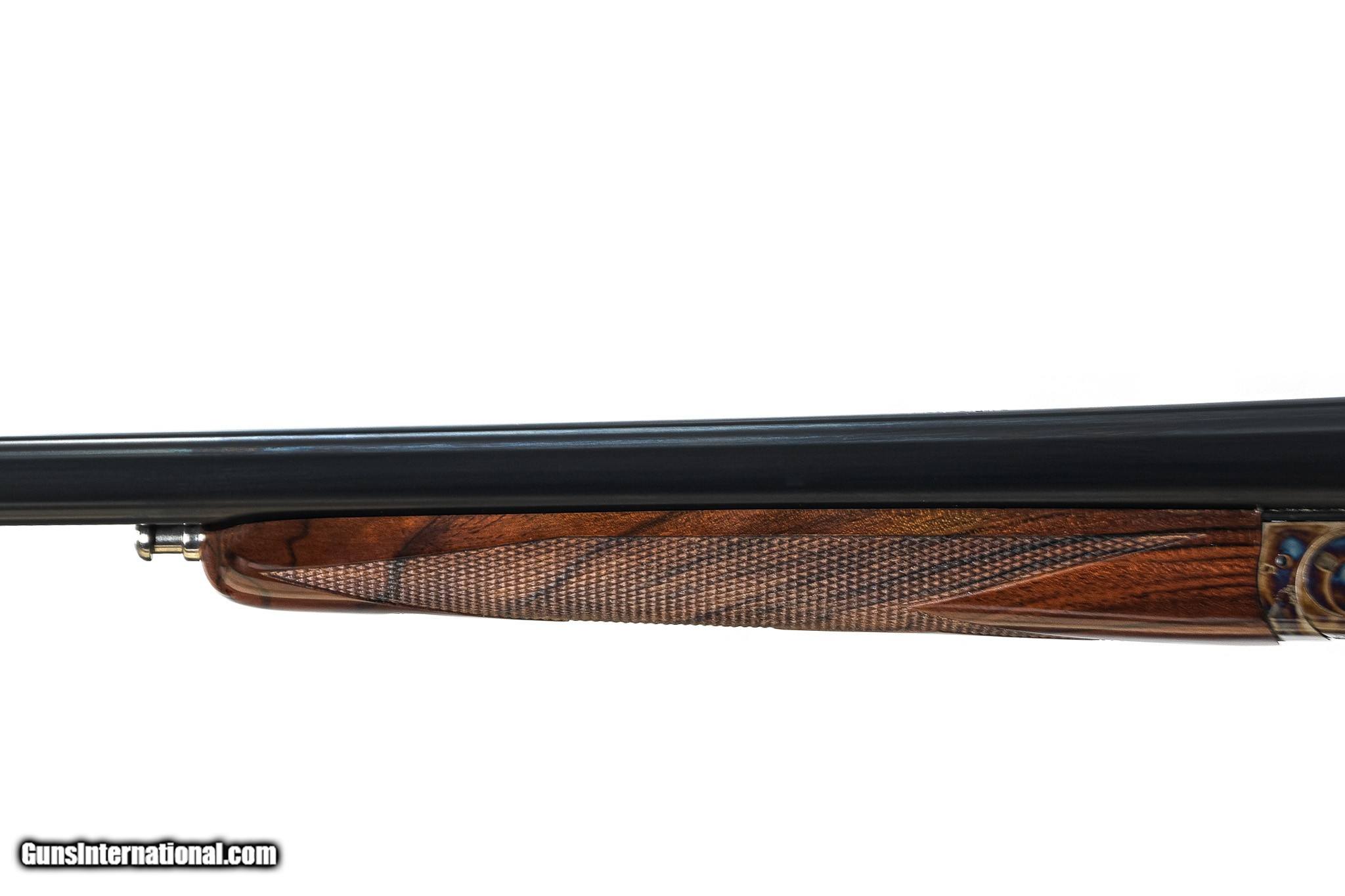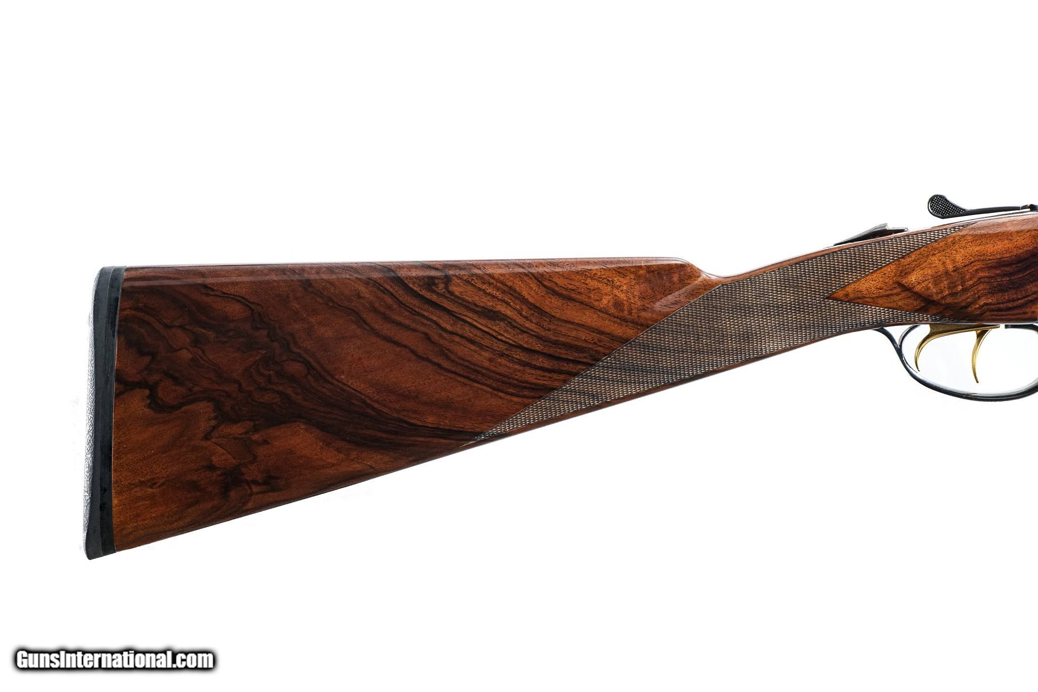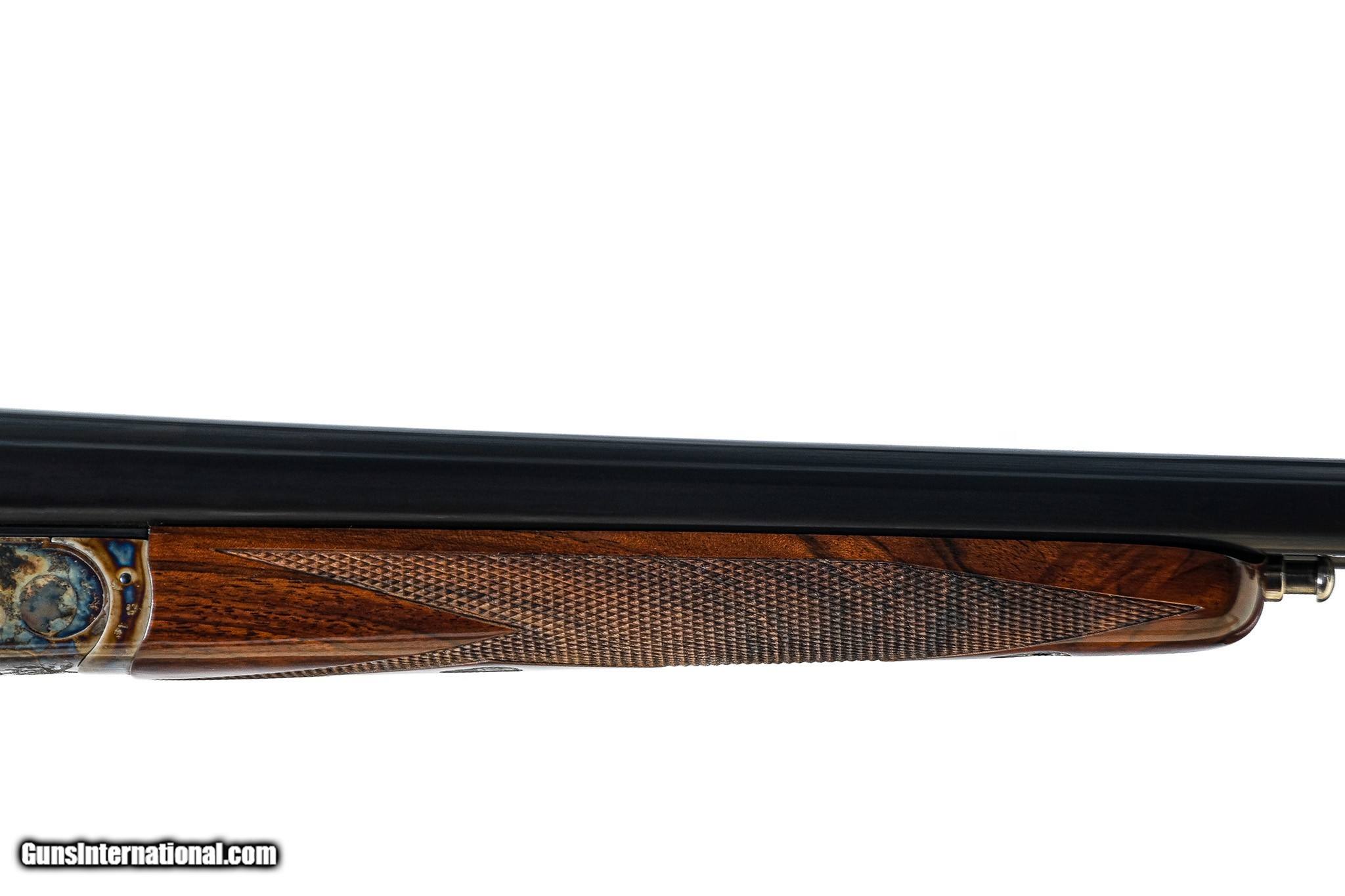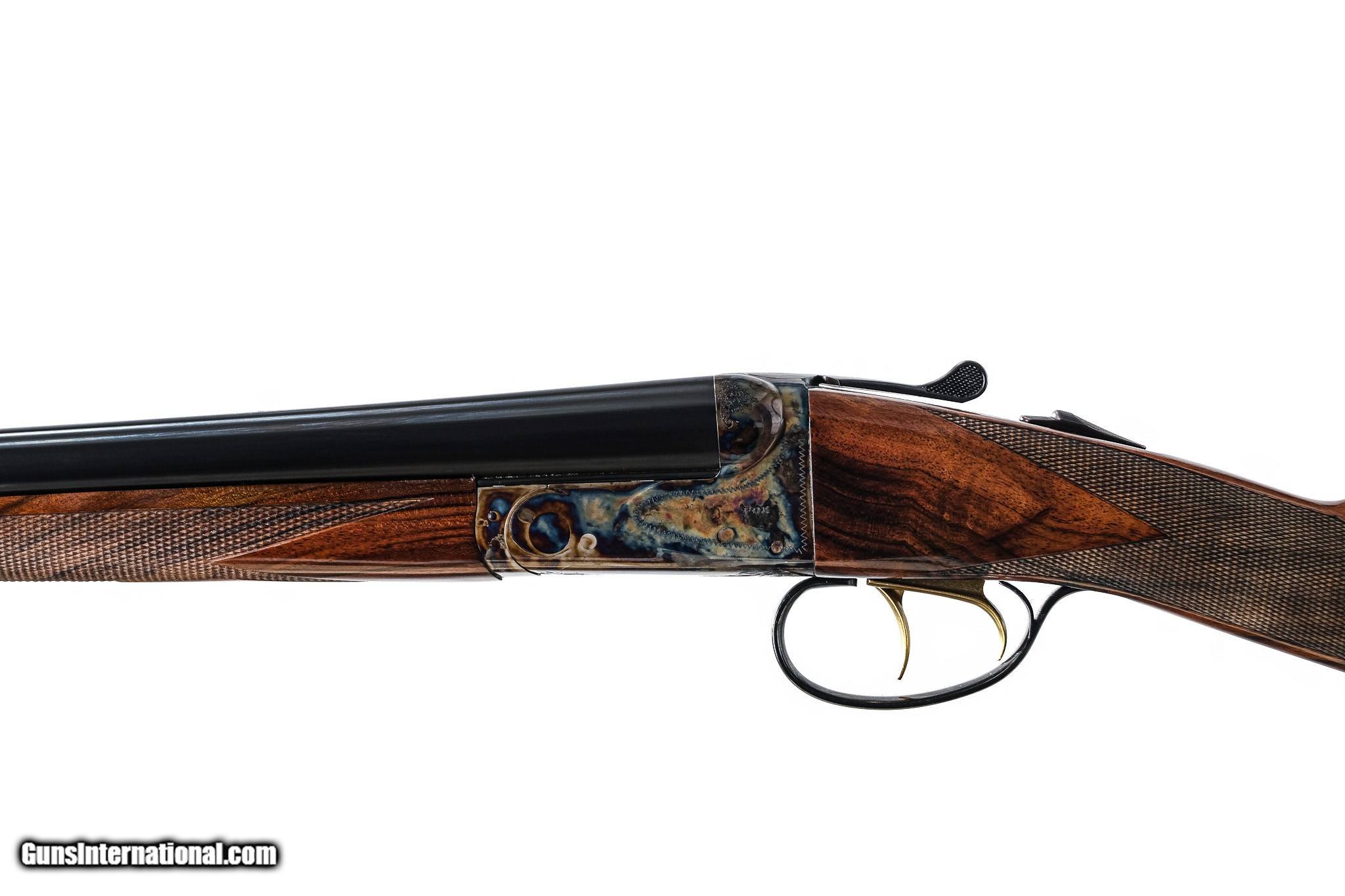 Description: SAVAGE - Fox A. Grade, SxS, 20ga. 28" Barrels with Factory Screw-in Choke Tubes. Stunning Turkish Circassian walnut straight grip stock, thin factory recoil pad, game rib, gold double triggers, automatic ejectors, A grade engraving over magnificent traditional bone and charcoal case coloring, 2 point checkering, rare opportunity, cased, available for immediate delivery. S & H - $50.00. Inv: 39703 6 lbs. 12 oz. 15” x 1 ½” x 2 3/8” $4,250.00 SOLD |