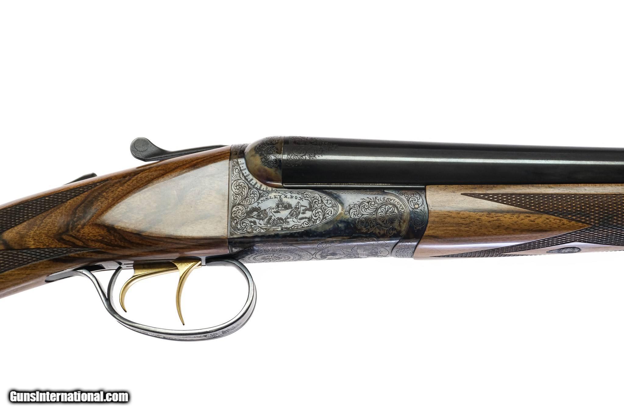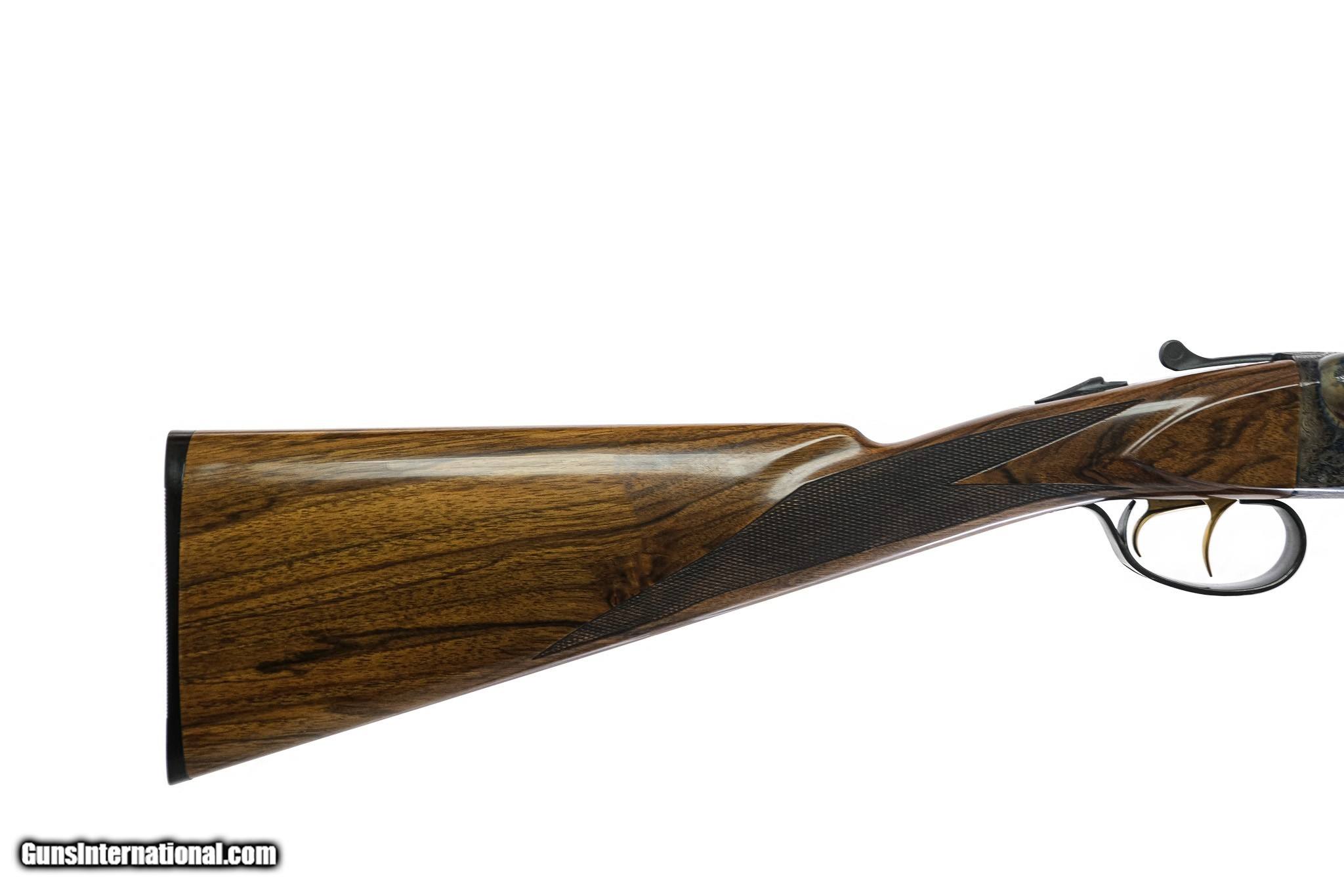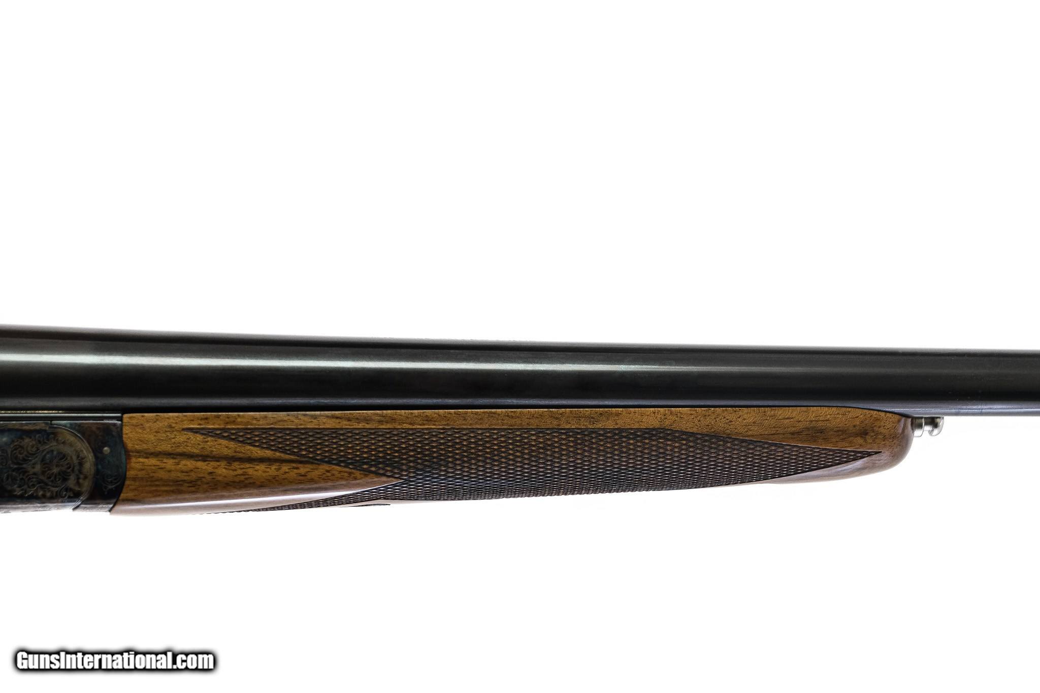 Description: SAVAGE - Fox, A Grade, SxS, Special Order C-Grade Gun, 20ga. 28" Barrels. Special Order executive gun with C grade engraving. Straight grip, hard rubber butt, double trigger, auto ejector, & splinter forend. Beautiful engraving and paneled stock wit nicely figured turkish walnut. Light with black streaks. Neutral cast. 2 ¾ inch chamber. Set of 5 choke tubes. Inv: 62871 6 lbs. 1 oz. 14 ¼" x 1 ½" x 2 3/8" $6,300.00 SOLD |