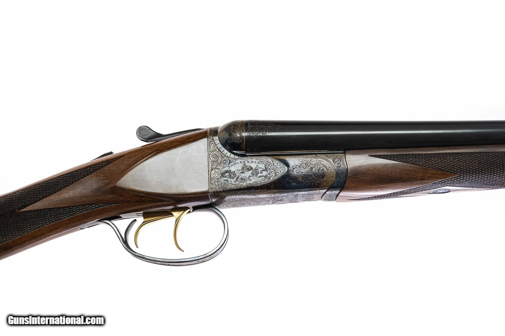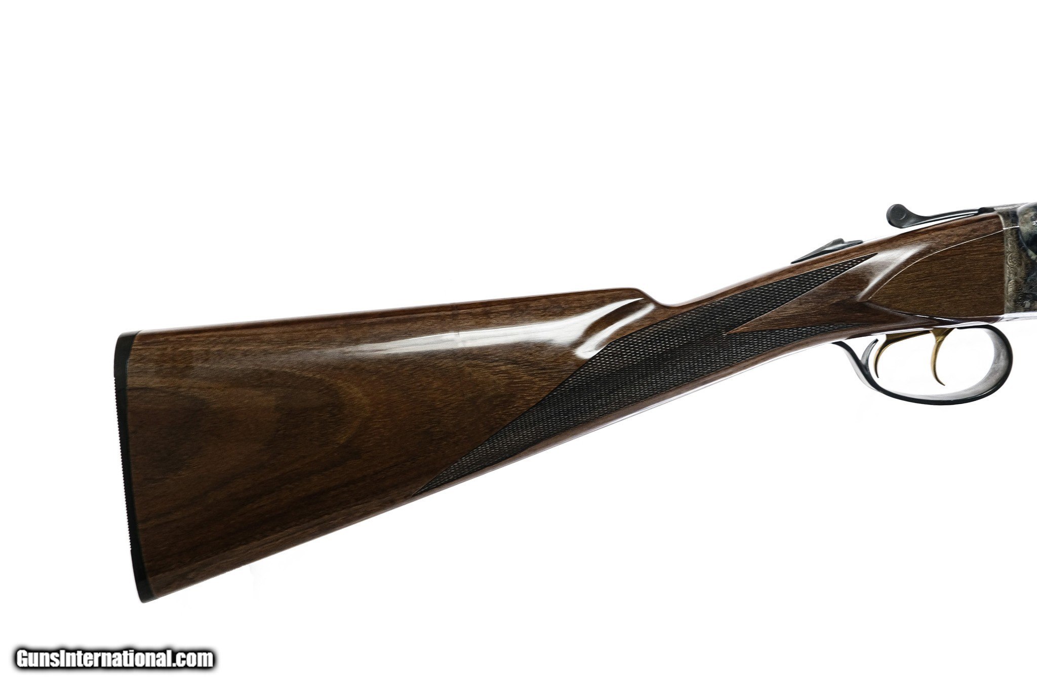 Description: SAVAGE - Fox, CE Grade, SxS, 20ga. 28" Barrels with Factory Screw-in Choke Tubes. Beautiful Turkish Circassian walnut straight grip stock, factory butt plate, game rib, gold double triggers, automatic ejectors, C grade engraving over magnificent traditional bone and charcoal case coloring, Truoil Finish, 2-point checkering, rare opportunity, factory new and unfired, rare and special prototype gun, available for immediate delivery. Base Price - $5,250.00, Options Include: Turkish Exhibition Walnut - $900.00, TruOil Finish - $500.00, S & H - $50.00. Inv: 82564 6 lbs. 2 oz. 14 ¼” x 1 ½” x 2” $6,700.00 SOLD |
