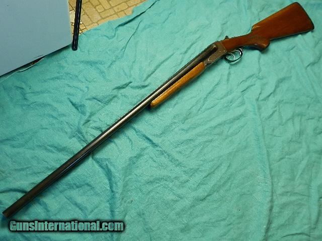 Description: This shotgun was introduced in 1939. it has matte solid rib featuring two silver bead sights with standard markings on the rear of both barrels. Choked FULL and MOD. The receiver and upper tang are casehardened, now faded to brownish color. With the lever and trigger guard blue and two silver triggers. The sides of the receiver are engraved with a floral and scroll pattern, with and the underside has a portrait of a ducks flying off a pond.The walnut Checkered forearm and pistol grip stock is very good, with a couple minor field use marks, nothing serious. Comes with a black hard rubber butt-plate, with a LOP of 14 1/2". The blue is about 50% on the barrels with splotchy color loss.Very clean bores, couple of speckles in the chamber area.This gun locks up tight. We don’t have asite .I prefer money orders or a check. Item ships when funds come in. If you can only pay with a card let me know. I’m sorry I don’t list my phone number, did that for 30 days, never again.. I can’t talk on the phone all day…who will ship the guns? I’m just one person, and it’s very busy here! I do a brisk volume! I hope you like my wide selection of unusual guns, knives and gun parts. Shipping price determined by zip code. I try to keep the prices affordable, which means I make less money than most dealers. You won’t get altitude sickness with my prices! I consistently have the best selection of older guns If you attempt to buy, you must still contact us for details, buying doesn't end the sale, it just sends an email telling us you want to buy this gun. A phone call won’t secure a sale! Not home many times, the first buyer by email buys the gun !Thissite does not close down a sale when you do a BUY IT NOW like Ebay! I can get six buy it nows in an hour, first buyer to email gets the guns, others are in second place! Best to send another email . Sometimes not home to get calls. Some guns are required shipment to a gun dealer near you for a transfer to you when it arrives. With the widest selection of older guns at great prices, We don’t have a store, and sell on the internet only. SOLD |