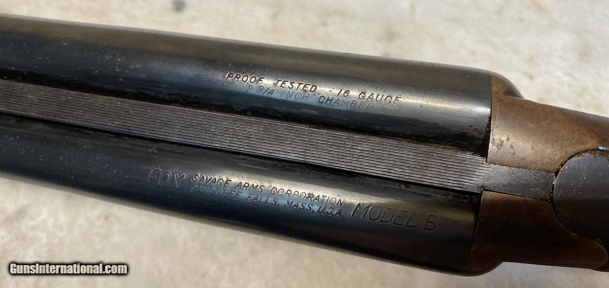 Description: Guns Listing ID: 734102 Up for sale is a Used - Excellent Condition Savage Fox Model B 16 Gauge 28\" SxS 2.75\" Chamber. Shotgun is used, in an estimated 80% condition overall as shown, with light external wear and handling, excellent mechanical function and bores as shown. SOLD Manufacturer: SAVAGE ARMS Model: Fox Model B 2.75" Chamber Condition: Used - Non-Certified Barrels: 2.8 BARREL Gauge Info: 16 GA Finish: BLUED |