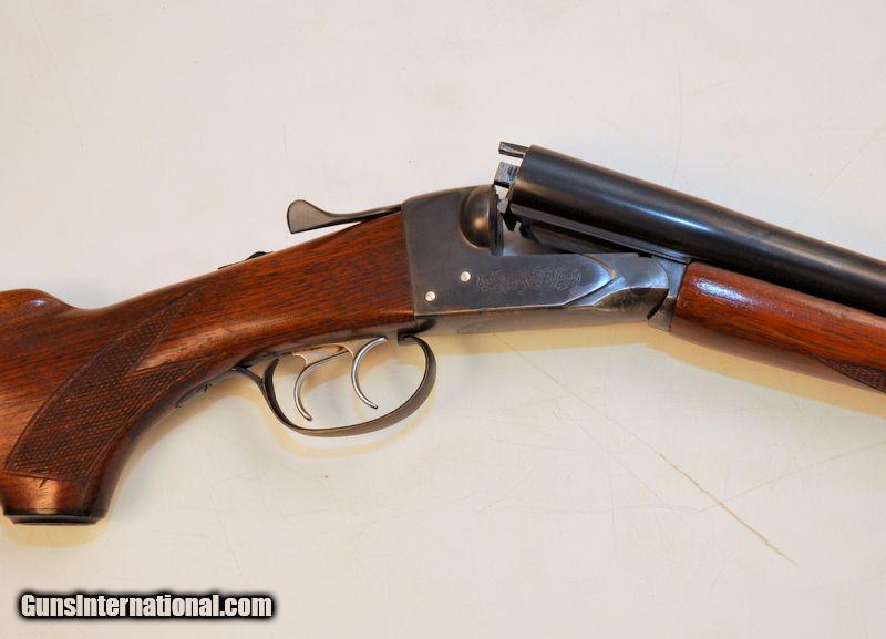 Description: 16 Gauge, 2 3/4". NSN. 28" bbls. Fixed M&F chokes. Aluminum front bead. Nickel finished double triggers. Extractors. Blued action features waterfowl scene on bottom with "FOX" in banners on both sides. Splinter forearm & pistoll grip walnut stock with hand checkering. LOP 14 1/4" over original buttplate. Bbls retain over 95% blue & have clean bright bores. Action has 75% blue showing spots of loss in carry areas. Stocks have good finish showing scratches & marks. Priority mail to FFL or C&R $20. SOLD Curio/Relic: Yes |