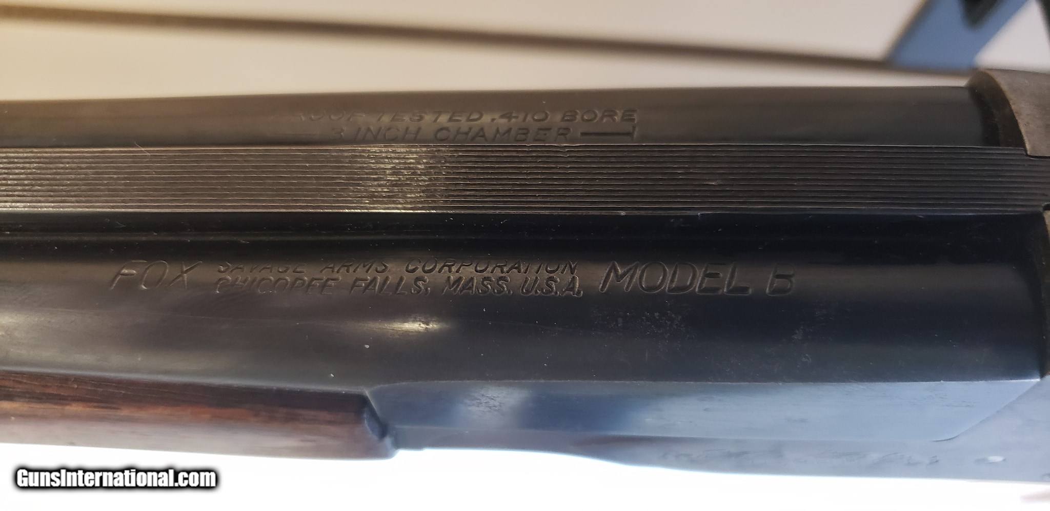Description: Guns Listing ID: 474406 Pre serial number fox model B in 410 3\" chamber with youth stock. Some wear on bluing sxs is in excellent shape for its age SOLD Manufacturer: SAVAGE Model: fox model b Condition: Used - Non-Certified Barrels: 26 BARREL Gauge Info: 410 GA Finish: BLUED |
