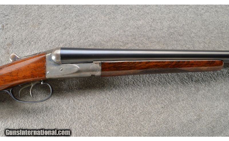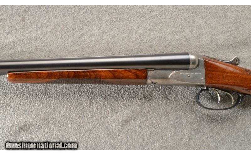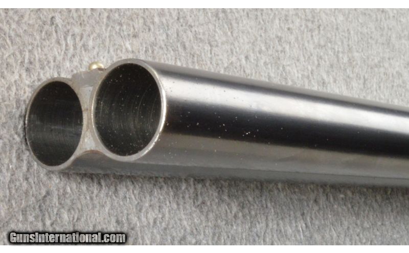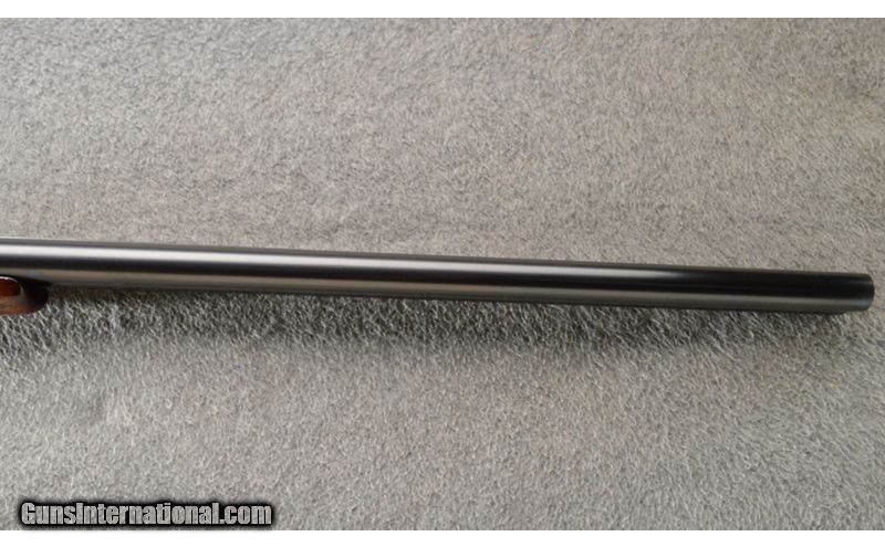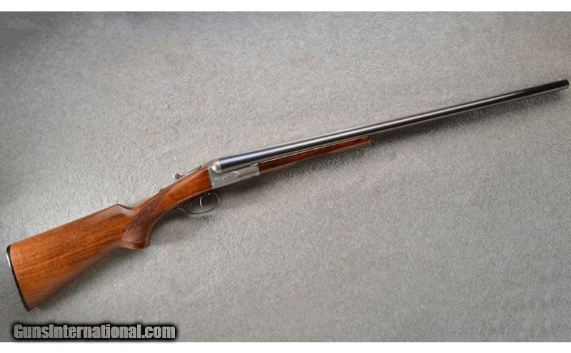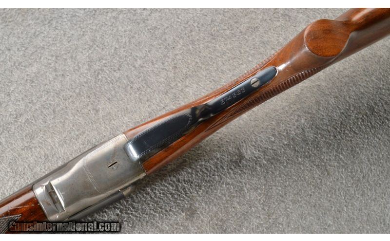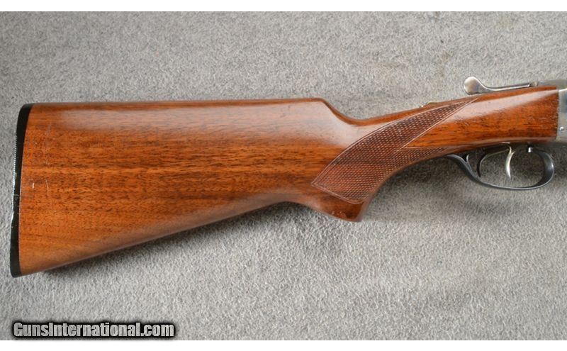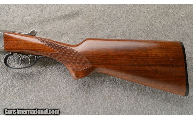 Description: Fox Sterlingworth Boxlock Double Barrel Hammerless Shotgun. Serial no. 374333, 16 gauge, IC and MOD chokes, 28-inch barrels with matted solid rib, brass front bead sight, double triggers, automatic safety, extractors; blued, with case-hardened frame; checkered pistol grip stocks with hard recoil pad. Overall condition is very good, bluing is very good, good bores, trace case-coloring in areas. 16 Gauge SOLD Chambers: 2 3/4 chamber. Metal Condition: "90% blue finish, 10% case color left. Wood Condition: "Minor handling marks, no slits or chips. Bore Condition: Bright bores. Barrels: 26" SxS. Stock Dimensions: LOP 14.25". Fore End: Checkered. Butt Pad: Hard plastic. Weight: 6.25 lbs Sights: Front bead. Chokes: Fixed. Item Location: Owatonna, MN |
