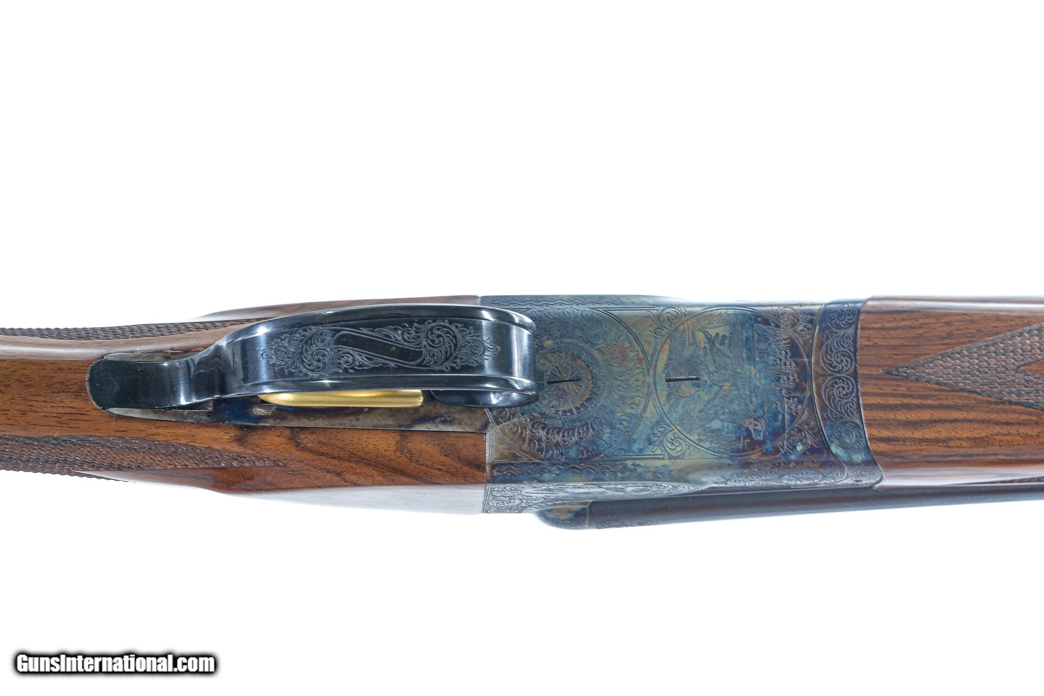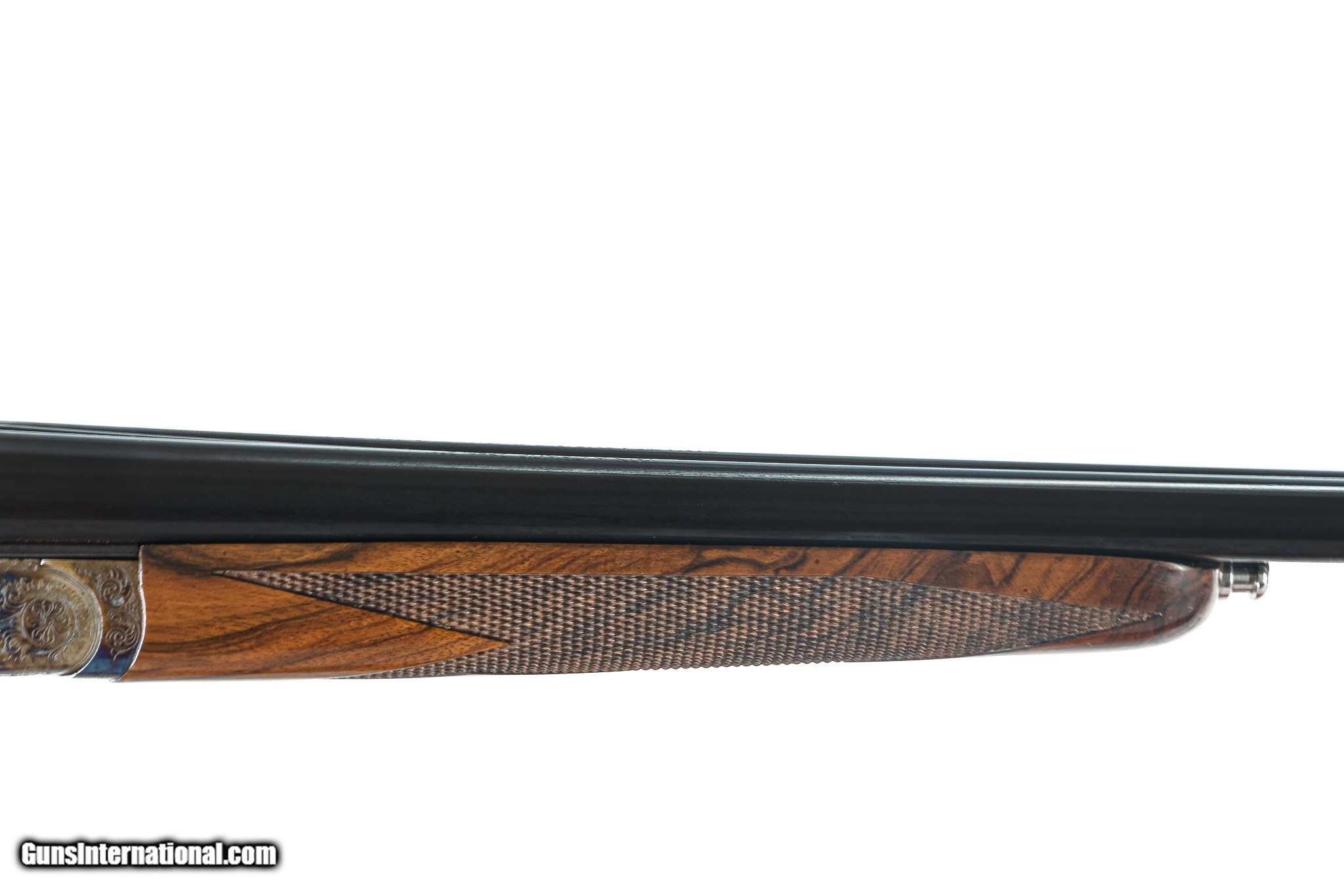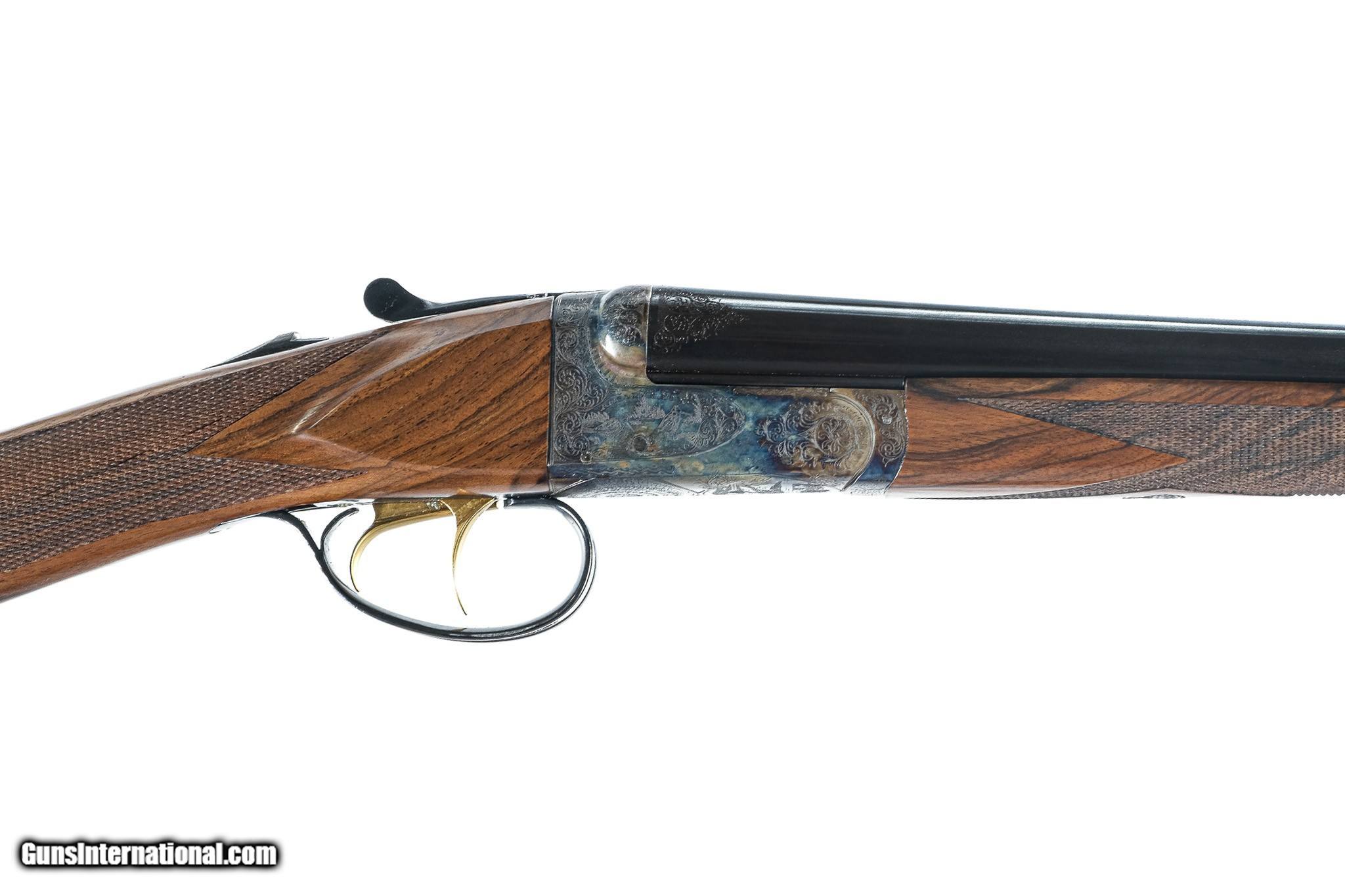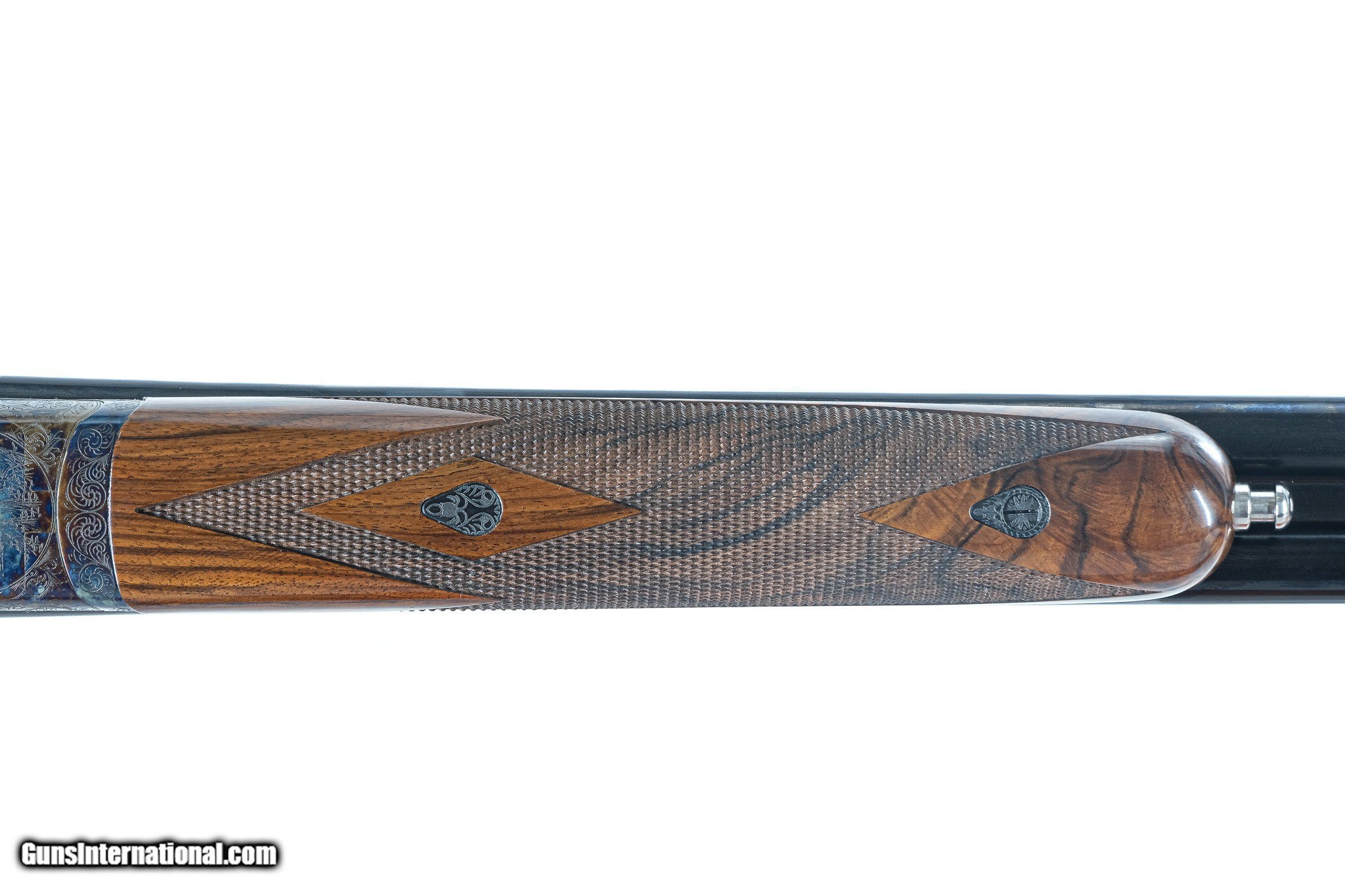 Description: SAVAGE - Fox, SxS, CE Grade, 28ga. 28" Barrels with 5 Screw-in Choke Tubes. Double trigger, straight grip, splinter forend, automatic ejector, 28" with 5 choke tubes, nicely figured Turkish Circassian walnut, hard butt plate, beautiful scroll engraving featuring game scenes of quail, wood cock, and setter. Very few of these guns are available, Warrantied for life by Connecticut Shotgun. Inv: 68021 5 lbs. 8 oz. 14 ¼" x 1 ½" x 2 ¼” $7,200.00 SOLD |