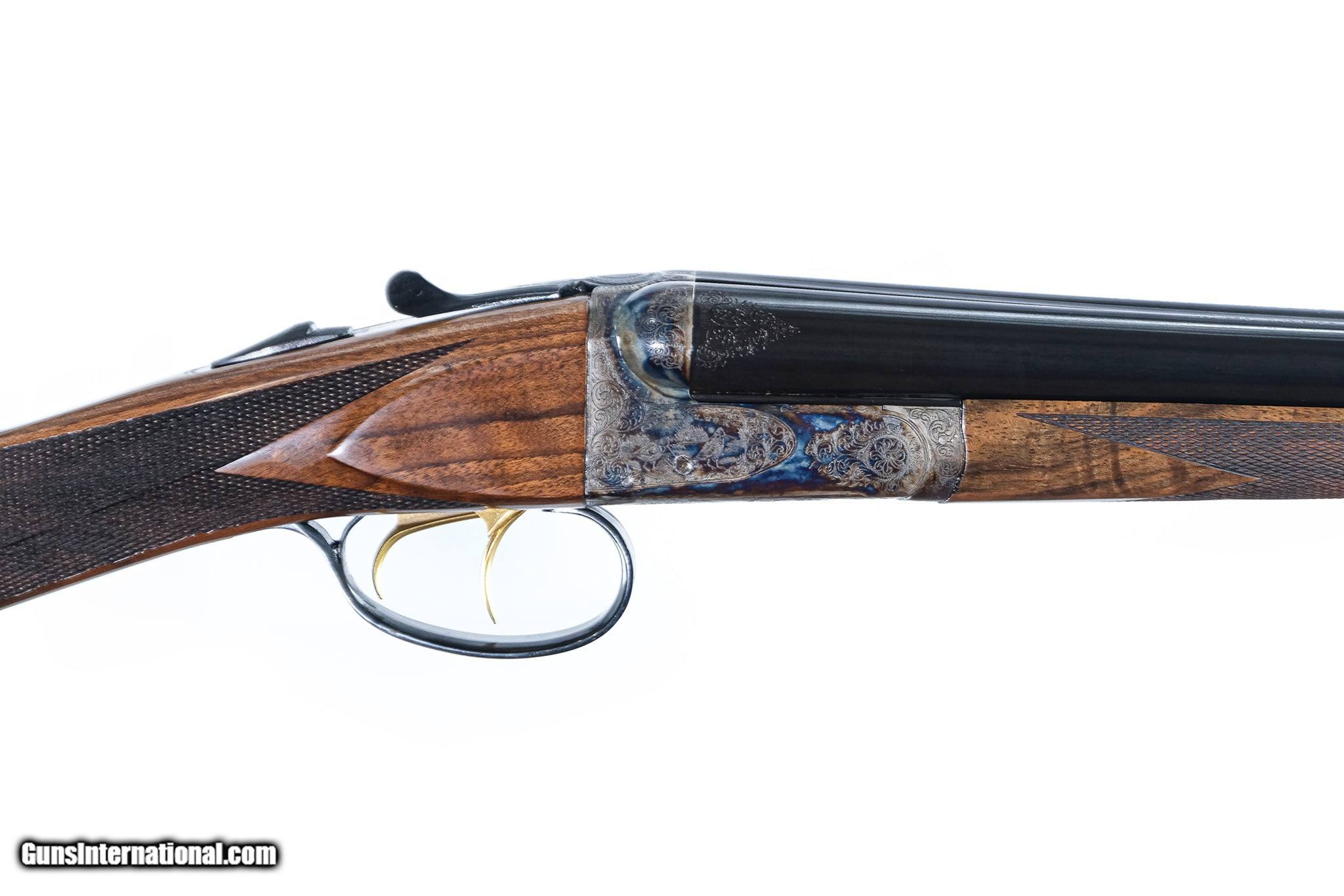 Description: SAVAGE - Fox, SxS, PHENOMENAL Experimental C-Grade Gun, 20ga. 28" Barrels. Straight grip, butt plate, 28" barrels, choke tubes, splinter forend, double trigger, automatic ejector, side panels on stock. Beautifully engraved with C pattern. Look like an old Philadelphia gun. This is a great gun in a perfect combination. Brand new gun, unfired. Warrantied for life to the original owner courtesy of Connecticut Shotgun. Inv: 83347 6 lbs. 3 oz. 14 ¼" x 1 ½" x 2 3/8" $6,495.00 SOLD |