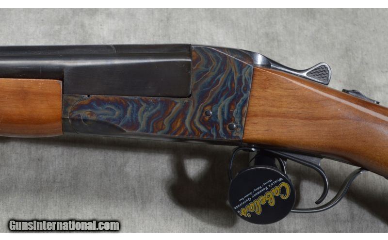 Description: A neat little walk about gun for upland game. Looks really good with just a few handling marks. We don't think it has been used much as the hinge is still stiff. SOLD Caliber Info: .410 bore Chambers: 3 inch. Metal Condition: Excellent - could pass for new, certainly hasn't been shot much if at all. Wood Condition: Very good. There are a few shallow scratches and dents. Bore Condition: Shiny and good. Barrels: 26 inch Triggers: Double triggers Stock: Smooth hardwood Stock Dimensions: 14 inch LOP to front trigger Fore End: Matching hardwood Butt Pad: Black "Ebony" plate Weight: 6 lb. - 6 oz. Sights: Gold bead on a matte rib Chokes: Fixed Full and Full Item Location: Rogers,, MN |