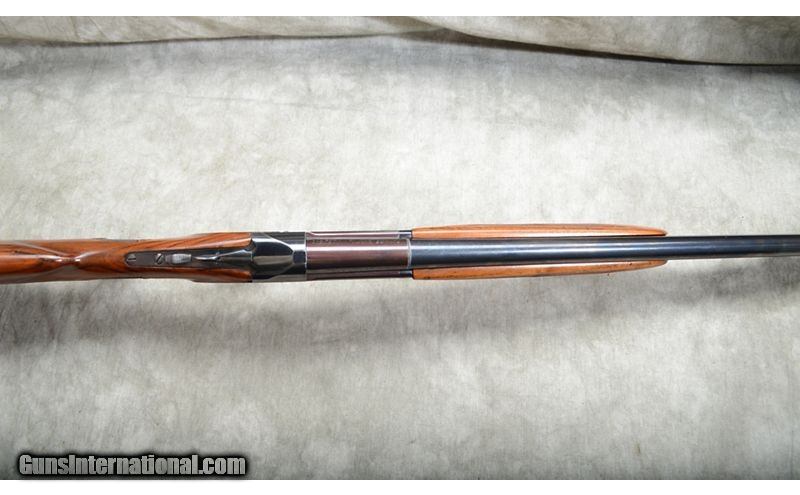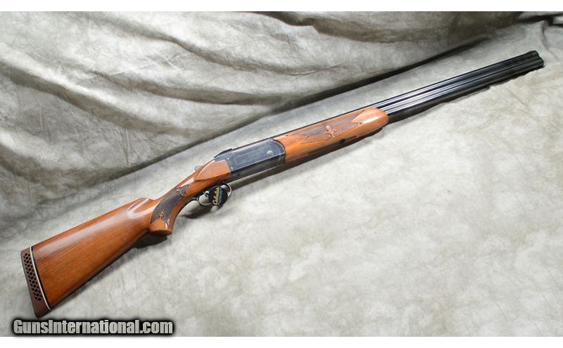 Description: Features of this field gun include nice wood with pleasing grain and nice blue. The recoil pad is soft and "springy." Oversize silver bead. Unique retracting breech cover design reminiscent of the Remington 3200. 12 Gauge SOLD Chambers: "Two, 2-3/4 inch. Metal Condition: Very good. It has a bit of blue wear at the carry point. Wood Condition: Good to Very good. There are a few scratches and dings but nothing real bad. Bore Condition: Shiny and bright. Barrels: 27-1/2 inches. Triggers: "Factory, grooved, single selective trigger. Stock Dimensions: 14-5/8 inch LOP. Fore End: Checkered walnut. Butt Pad: Ventilated Pachmyr soft rubber pad. Weight: 7 lb - 8 oz Sights: Silver grey bead. Chokes: Fixed Modified and Full. Item Location: Rogers |