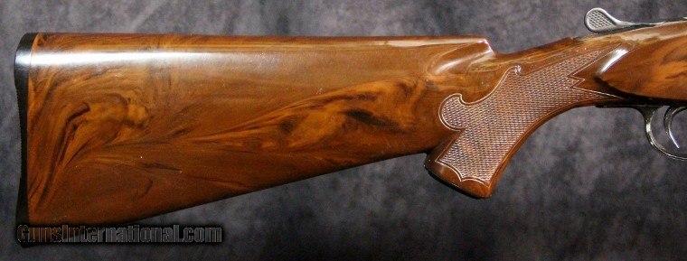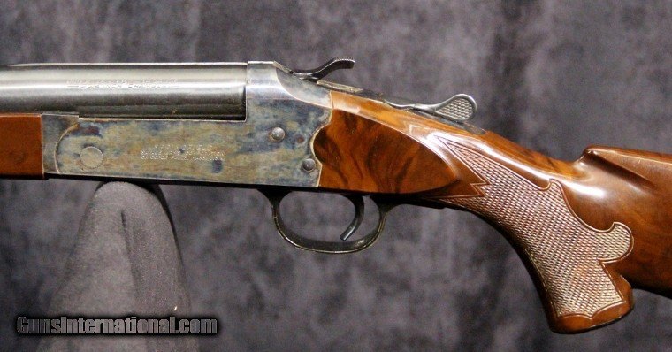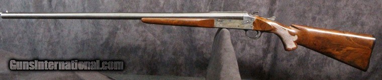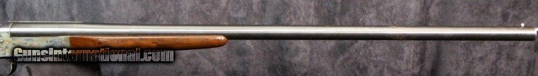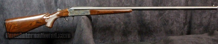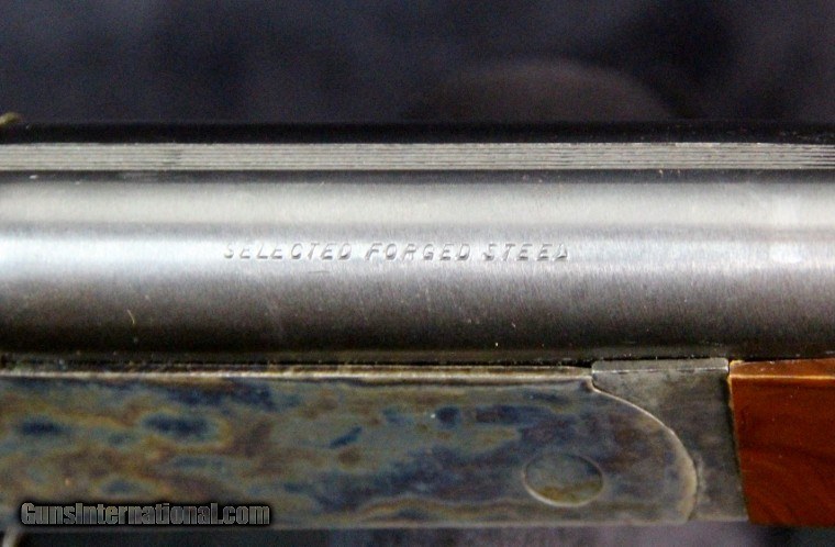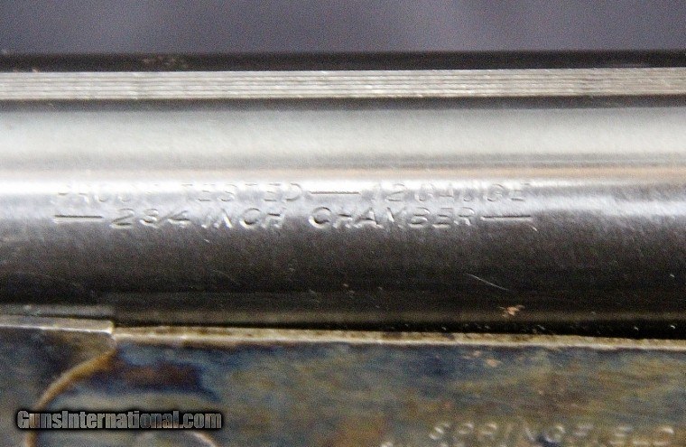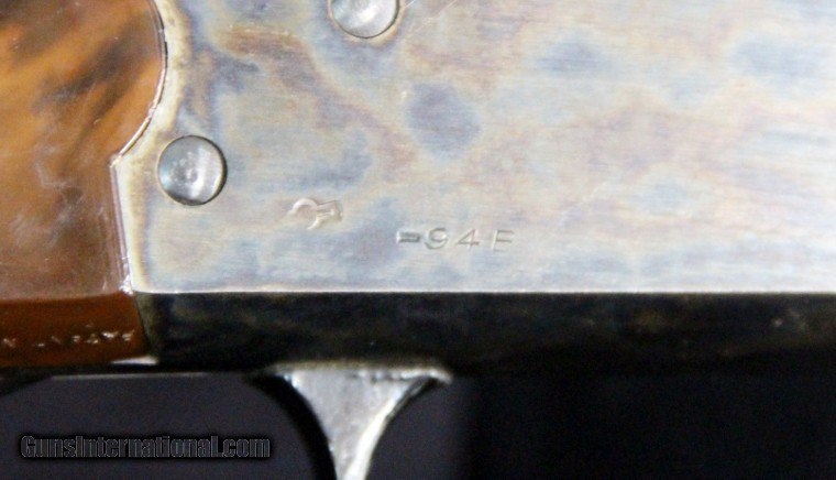 Description: 12ga, NVSN, 30 inch barrel, 2 3/4 inch chamber, full choke, blue and case color finish, Tenite stock and forearm, 1930's. Tenite is a cellulosic thermoplastic developed by Eastman Chemicals in the late 1920's. Hard to find good original pieces as Tenite tends to slowly deform and warp over the decades. Condition: excellent bore, 98% barrel blue, 98% frame case colors, Tenite stock and forearm in excellent condition, excellent mechanically, excellent marks. SOLD Curio/Relic: Yes |