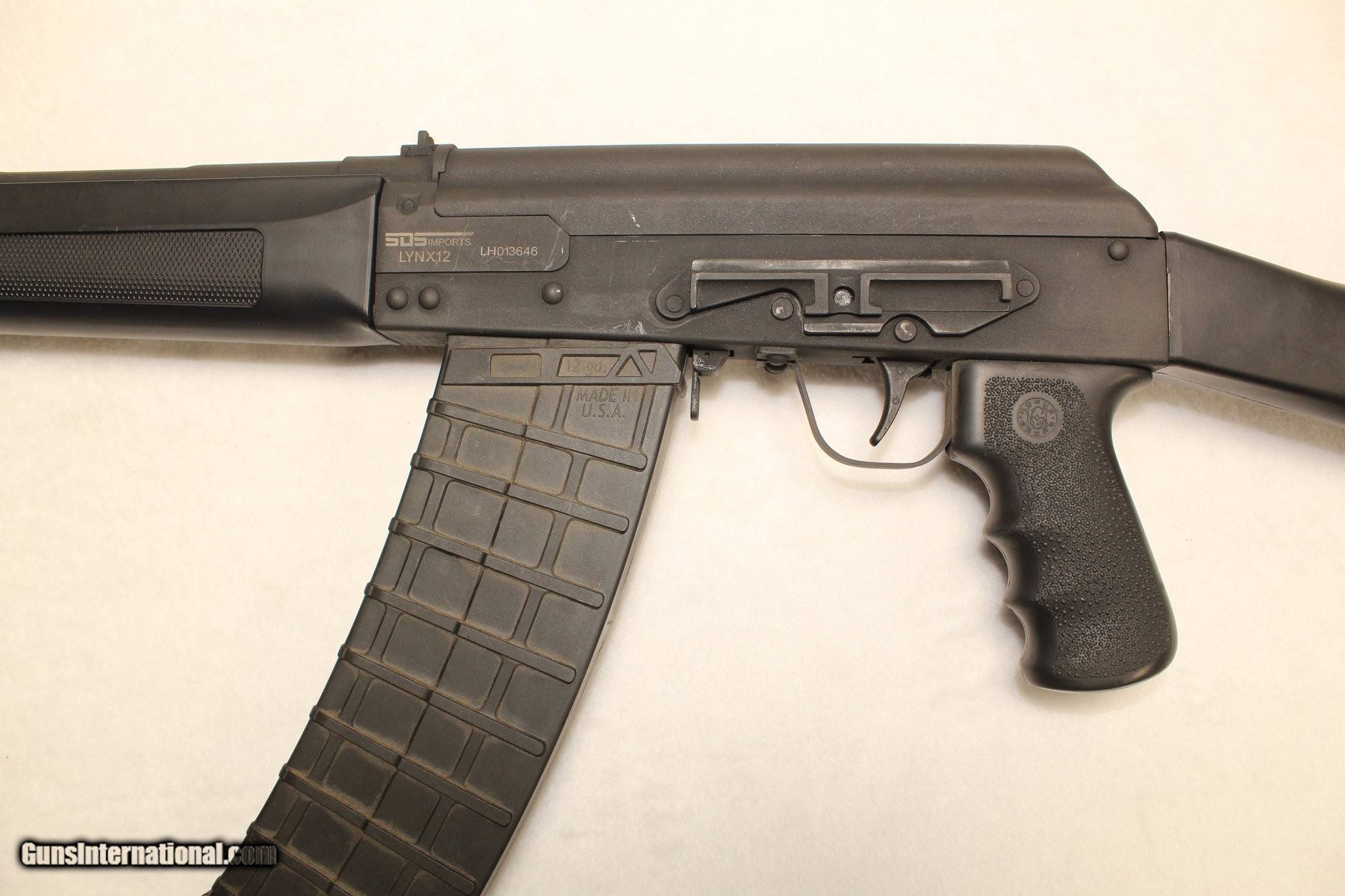 Description: Guns Listing ID: 576582 Description: The Lynx LH12, an outstanding AK pattern shotgun. This one has a well used synthetic stock, and sports an oversized muzzle device. Comes with one 10 rnd magazine. Manufacturer/Importer: Hubei Jianghua/SDS Imports Model: Lynx LH12 Type: Shotgun Caliber: 12 Gauge Action:Semi Auto Capacity: 10rnd Barrel Length: 16in Frame Material: Metal/Polymer Sights: Iron Sights SOLD Manufacturer: SDS IMPORTS Model: LYNX12 Condition: Used - Non-Certified Barrels: 18" BARREL Action: SEMI AUTOMATIC Gauge Info: 12 GA Finish: black |