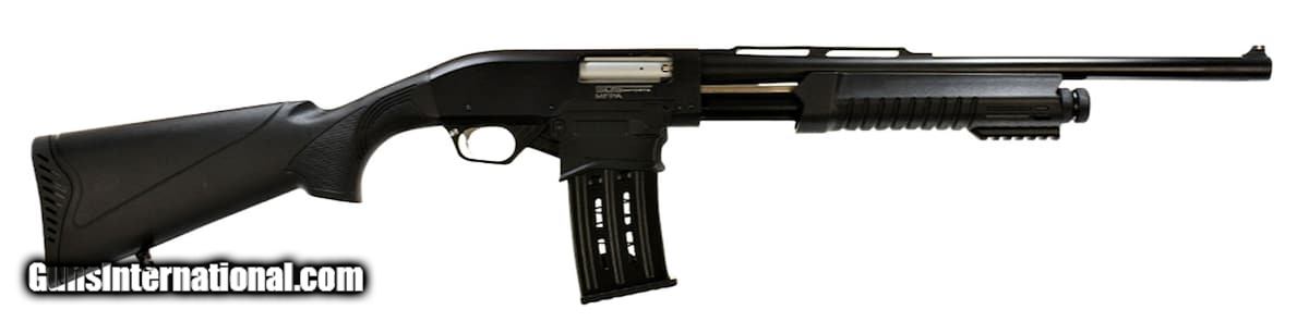 Description: Guns Listing ID: 364191 The MFPA (Mag Fed Pump Action) is an imported pump action magazine fed shotgun made in Turkey exclusively for SDS Imports. It uses Turkish magazines and a 19\" barrel with a 3\" chamber vent rib and fiber optic front sight. It also features an unique spring action for pump assist. The MFPA includes one 5 round magazine. - CHAMBER 12GA 3\ SOLD Manufacturer: SDS IMPORTS Model: MFPA 12 Condition: new Barrels: 19" BARREL Gauge Info: 12 GA. Finish: BLACK PARKERIZED |