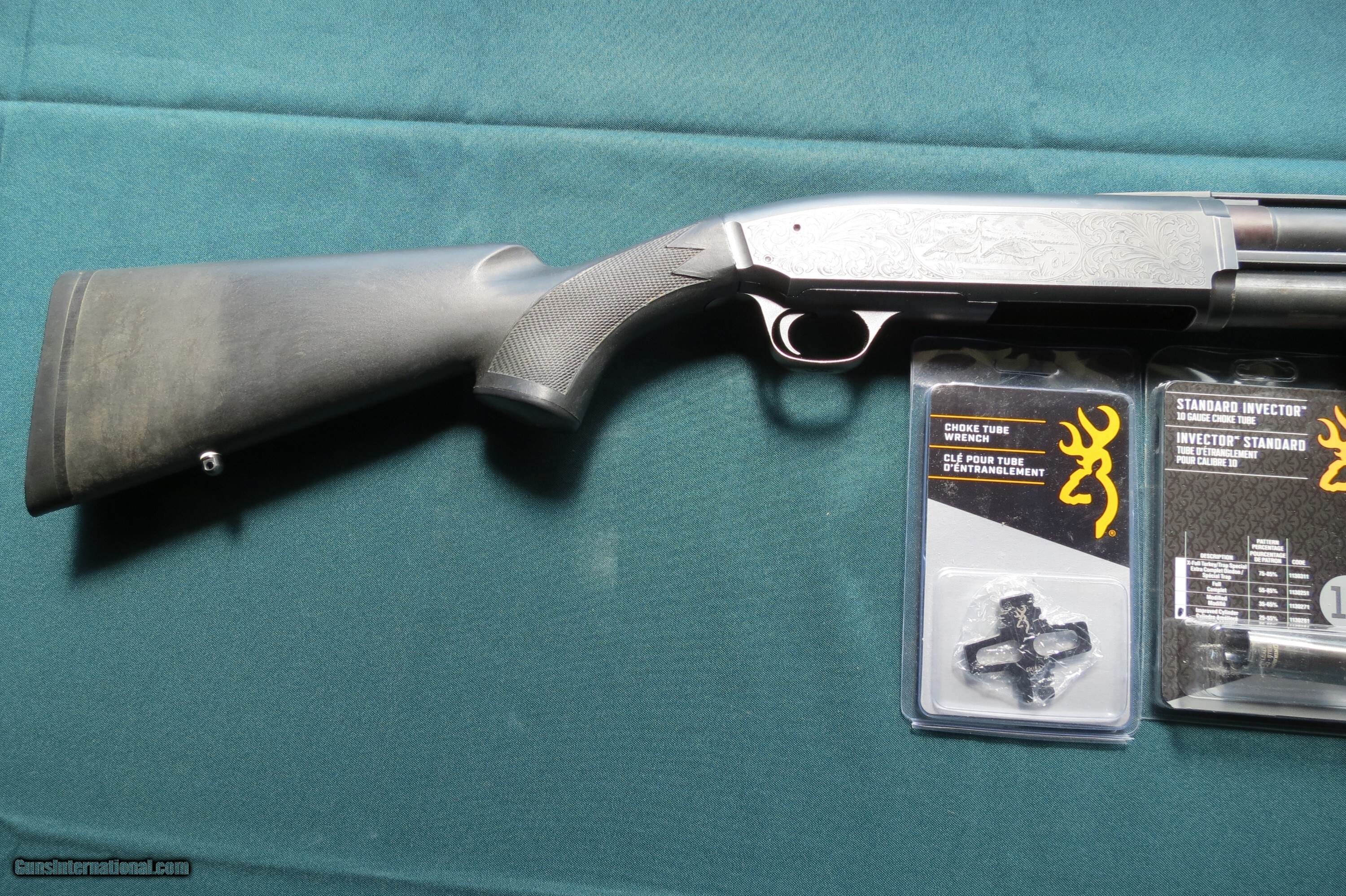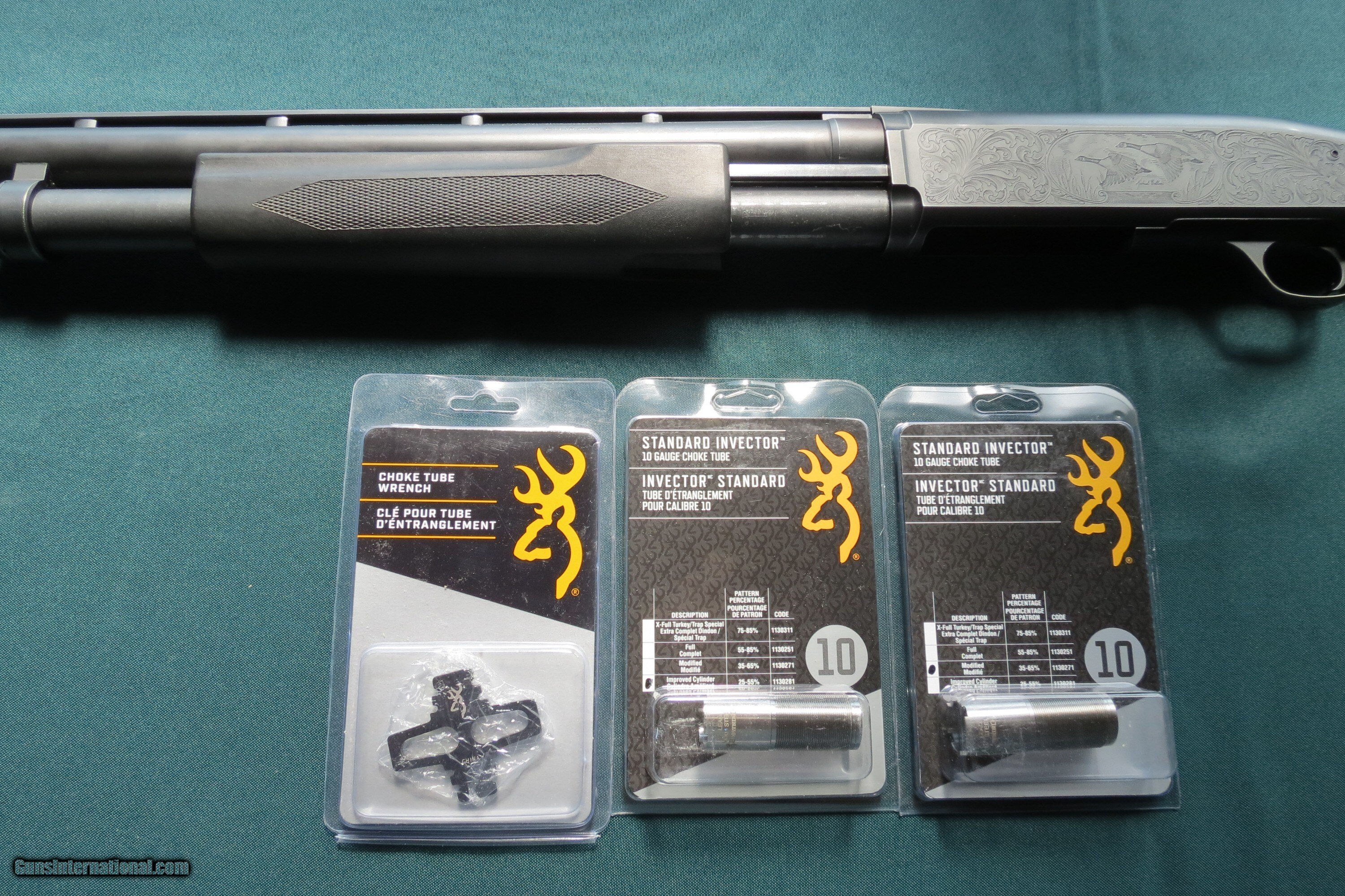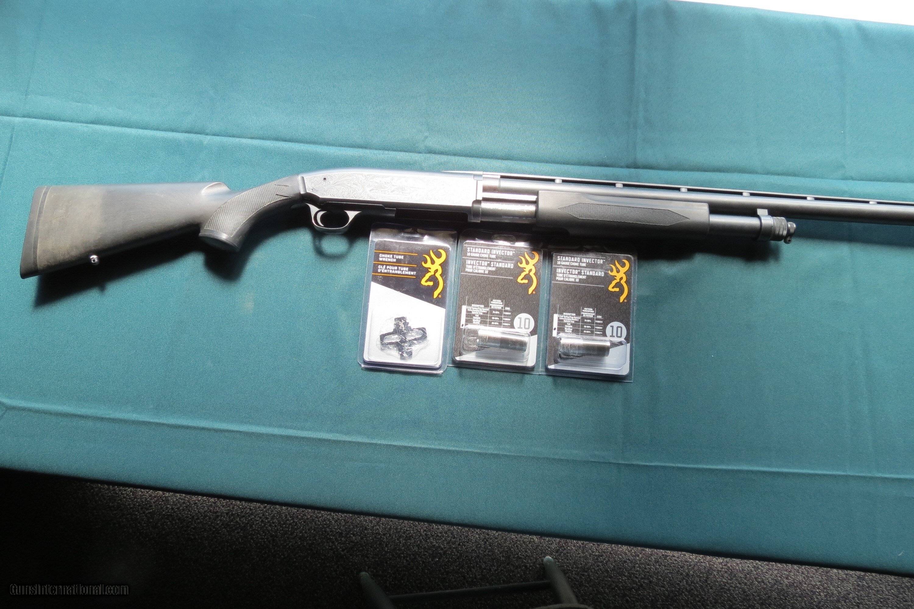 Description: Browning BPS Magnum Stalker in 10 gauge. 3.5" chamber, 28" vent rib barrel w/Full, Modified and Improved Cylinder Invector choke tubes and wrench. Matte black synthetic stock and forearm. Sling swivel studs, Bottom eject, Receiver engraved. Double action bars, Top tang safety, Shotgun shows with some field use. Blueing wear on edges. Shipping $60 Shotgun Gauge: 10 Gauge Manufacturer: Browning Model: BPS Barrel Length: 28 Condition: Very Good Price: $899.00 Contact Seller |