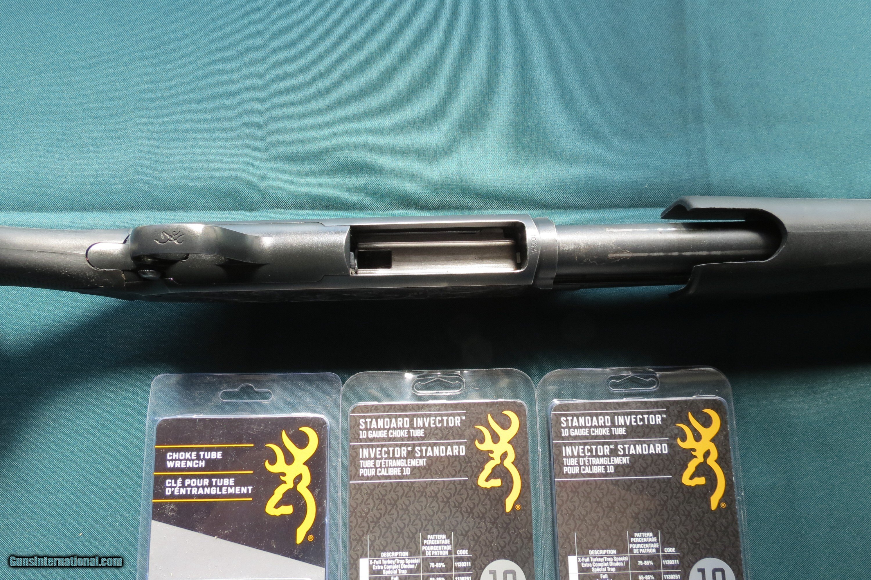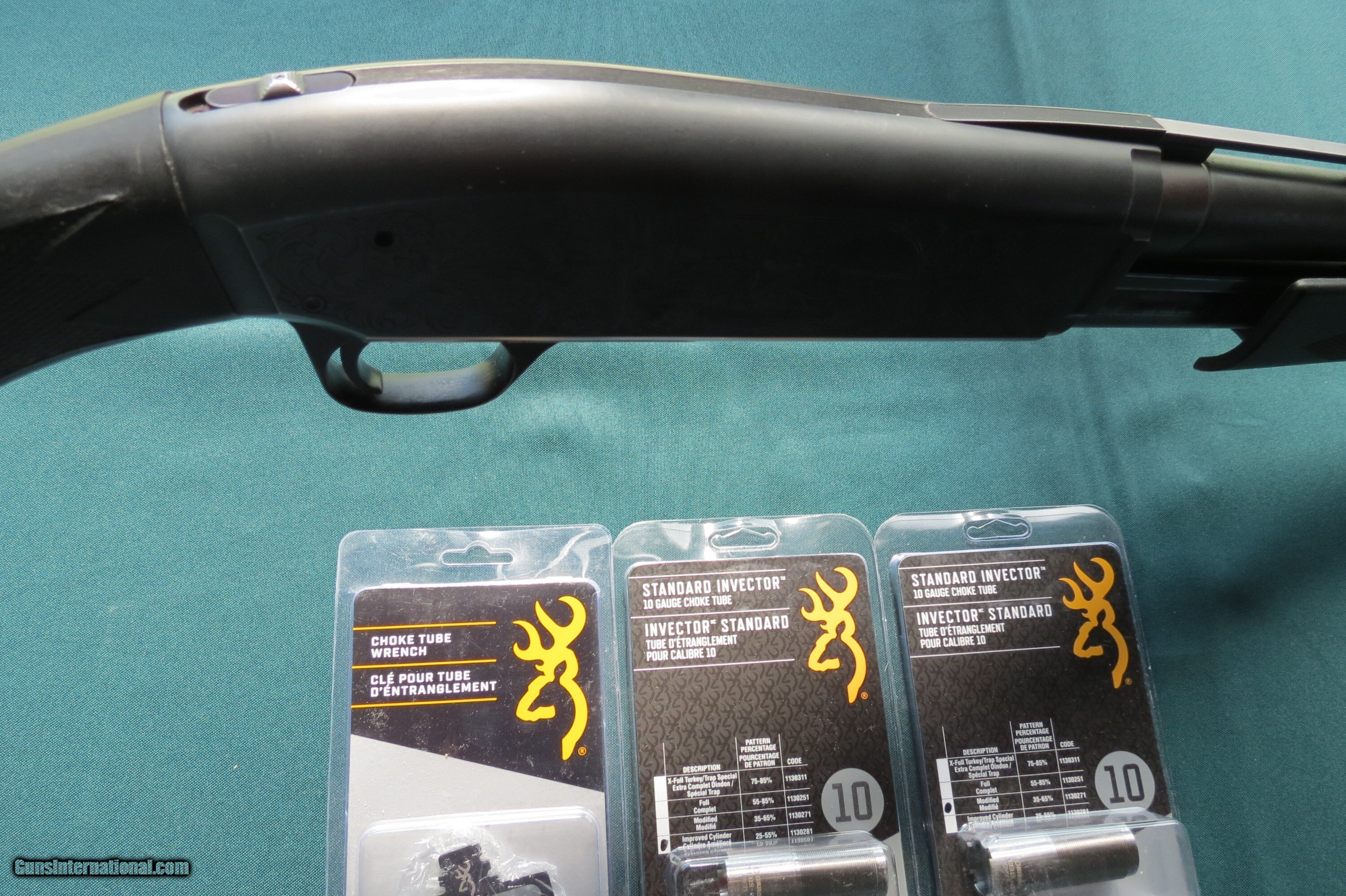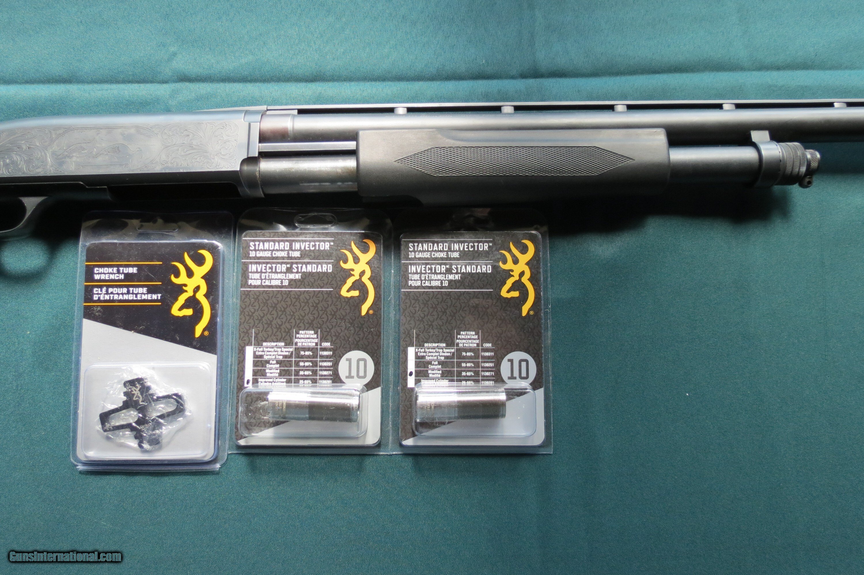 Description: Browning BPS Magnum Stalker in 10 gauge. 3.5" chamber, 28" vent rib barrel w/Full, Modified and Improved Cylinder Invector choke tubes and wrench. Matte black synthetic stock and forearm. Sling swivel studs, Bottom eject, Receiver engraved. Double action bars, Top tang safety, Shotgun shows with some field use. Blueing wear on edges. Shipping $60 Shotgun Gauge: 10 Gauge Manufacturer: Browning Model: BPS Barrel Length: 28 Condition: Very Good Price: $899.00 Contact Seller |