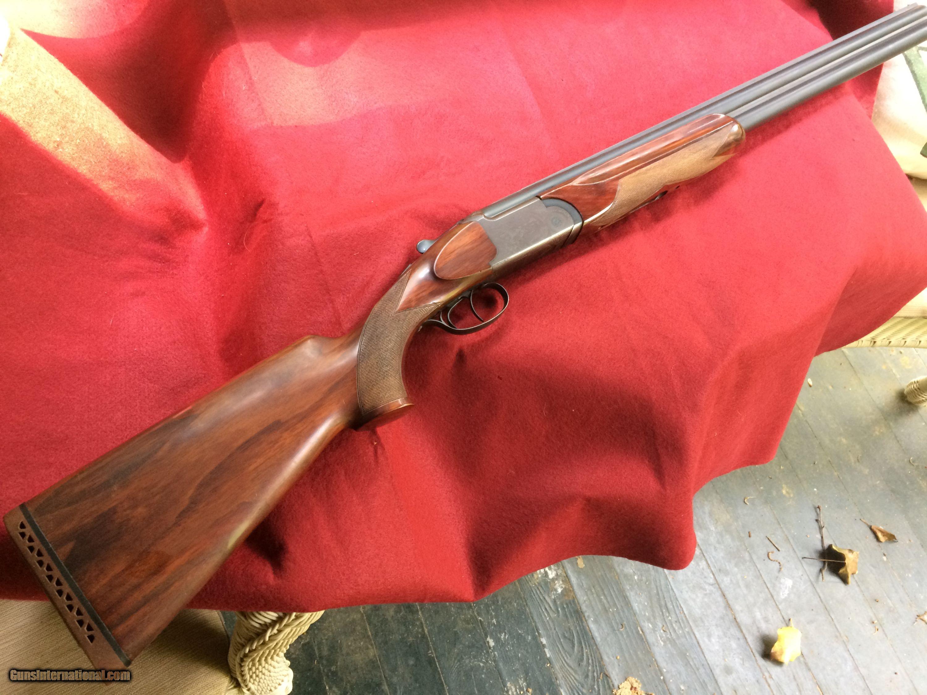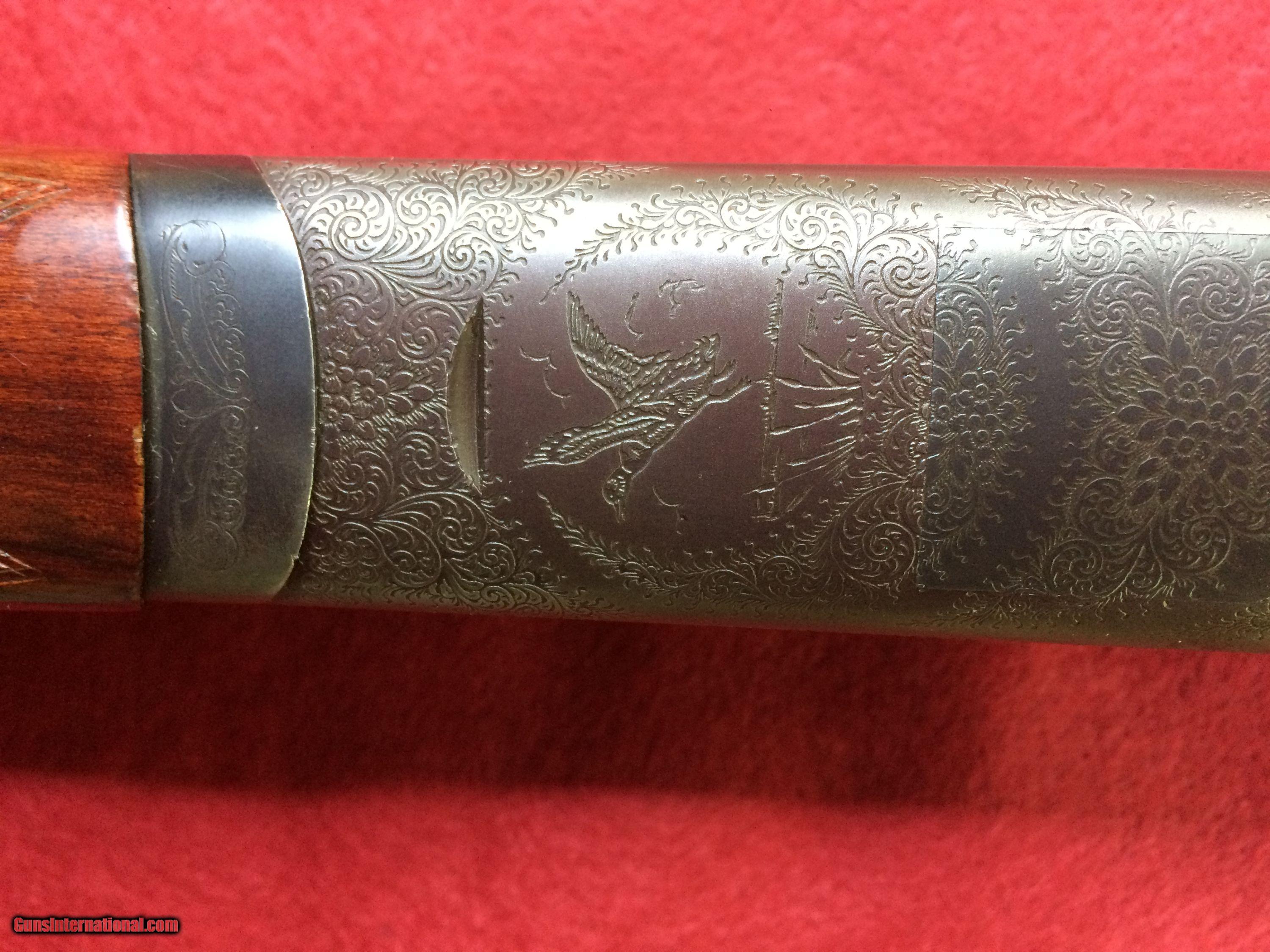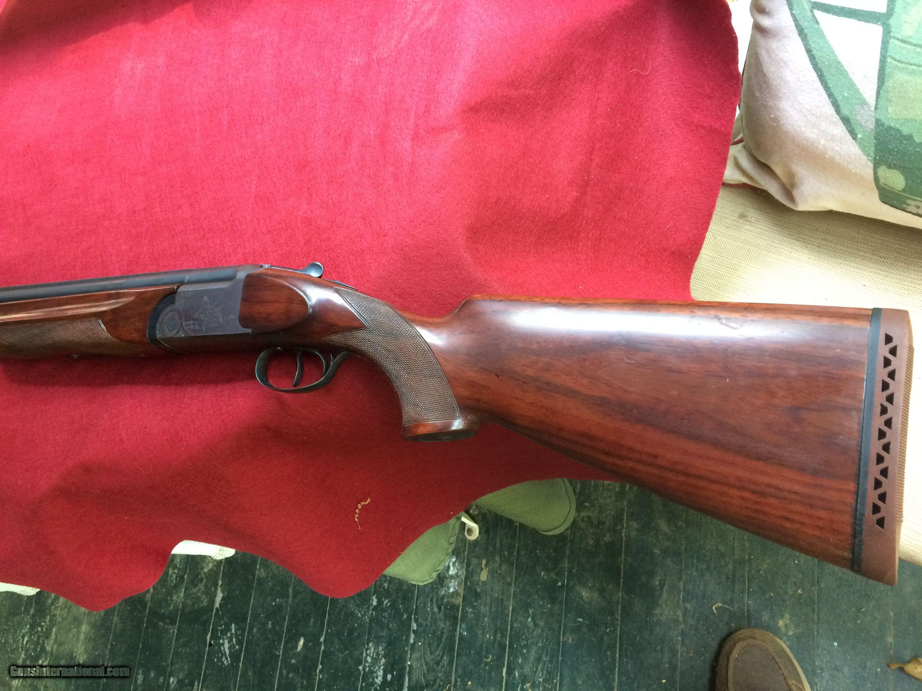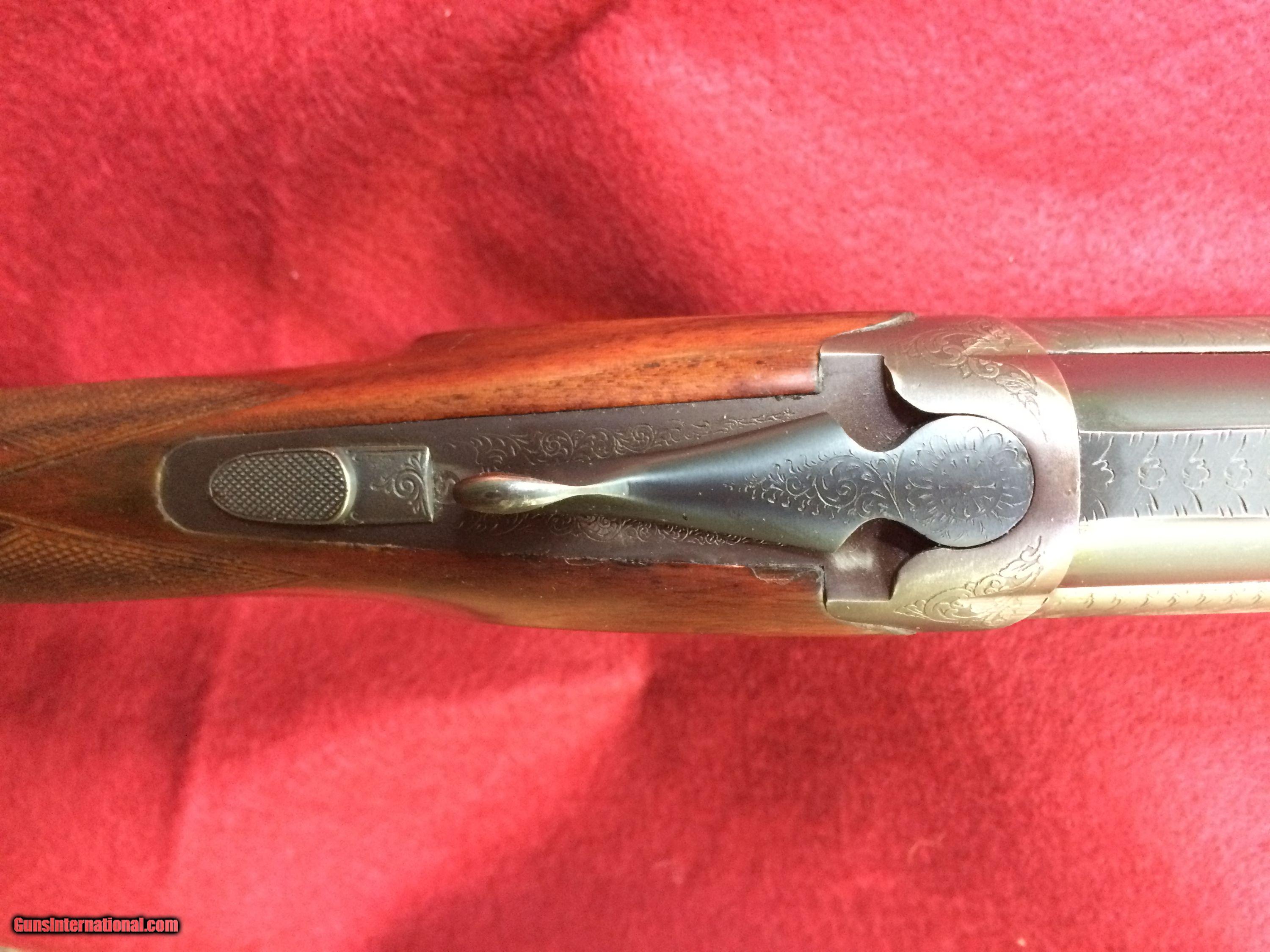 Description: Excellent condition, engraved, figured stock, 28 inch full and full barrels, vent rib, double triggers, recoil pad, 9.2 pounds SOLD |