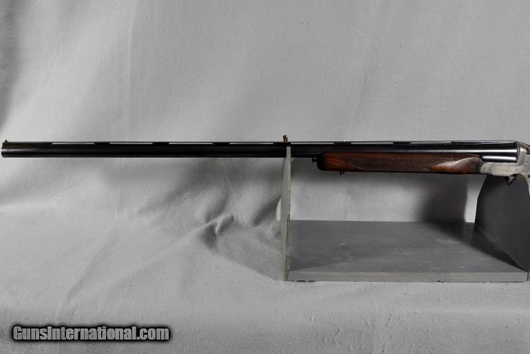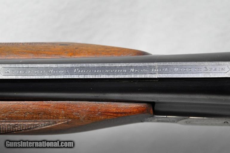 Description: Sarasqueta (Spain), single barel shotgun, CLASSIC ZEPHER HONKER, 10 gauge Magnum (89mm or 3 1/2"), s/n S144891, imported by Stoeger Arms Company in the 1960's, RECEIVER: sidelock, extractor, nickel plated, cocking indicator, receiver exhibits widely scattered light tarnish all over (see photos), BARREL: 32" length, Full choke, Very Good bore exhibiting about 20 very scattered little pit marks just forward of chamber (chamber and balance of barrel exhibit no pitting), raised ventilated rib, Ivory bead mid and front sight, metal on barrel retains all of original blue in 99% condition, STOCK: European Walnut, semi pistol grip, 14 3/8" LOP over ventilated recoil pad, sling swivels, finely checkered, wood retains all of original finish with no handling marks, OWN AN OLD CLASSIC GOOSE GUN AT A FAIR PRICE, Retail value $600.00, Sale priced at $495.00 SOLD Curio/Relic: Yes |