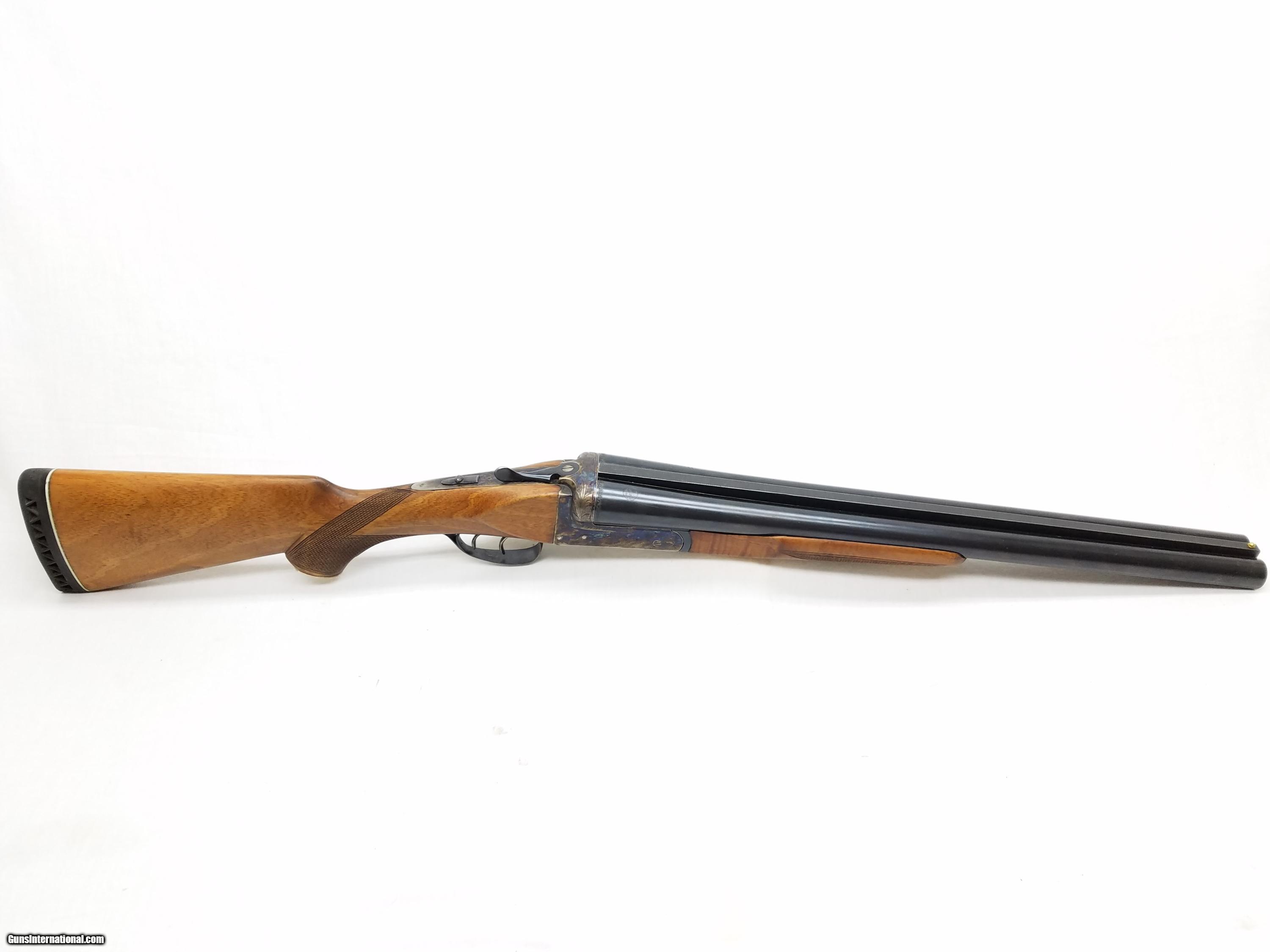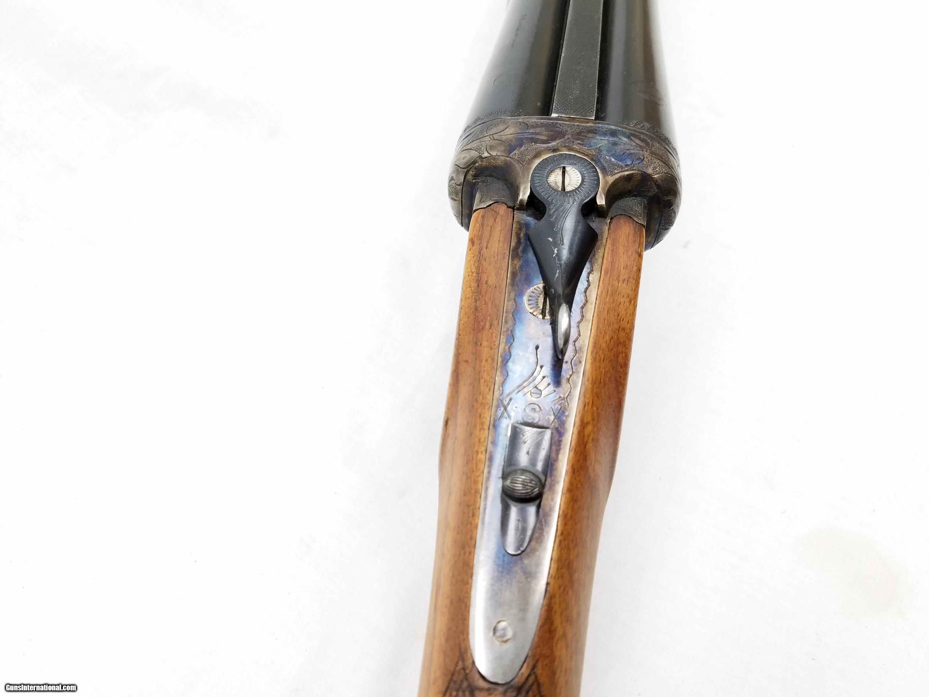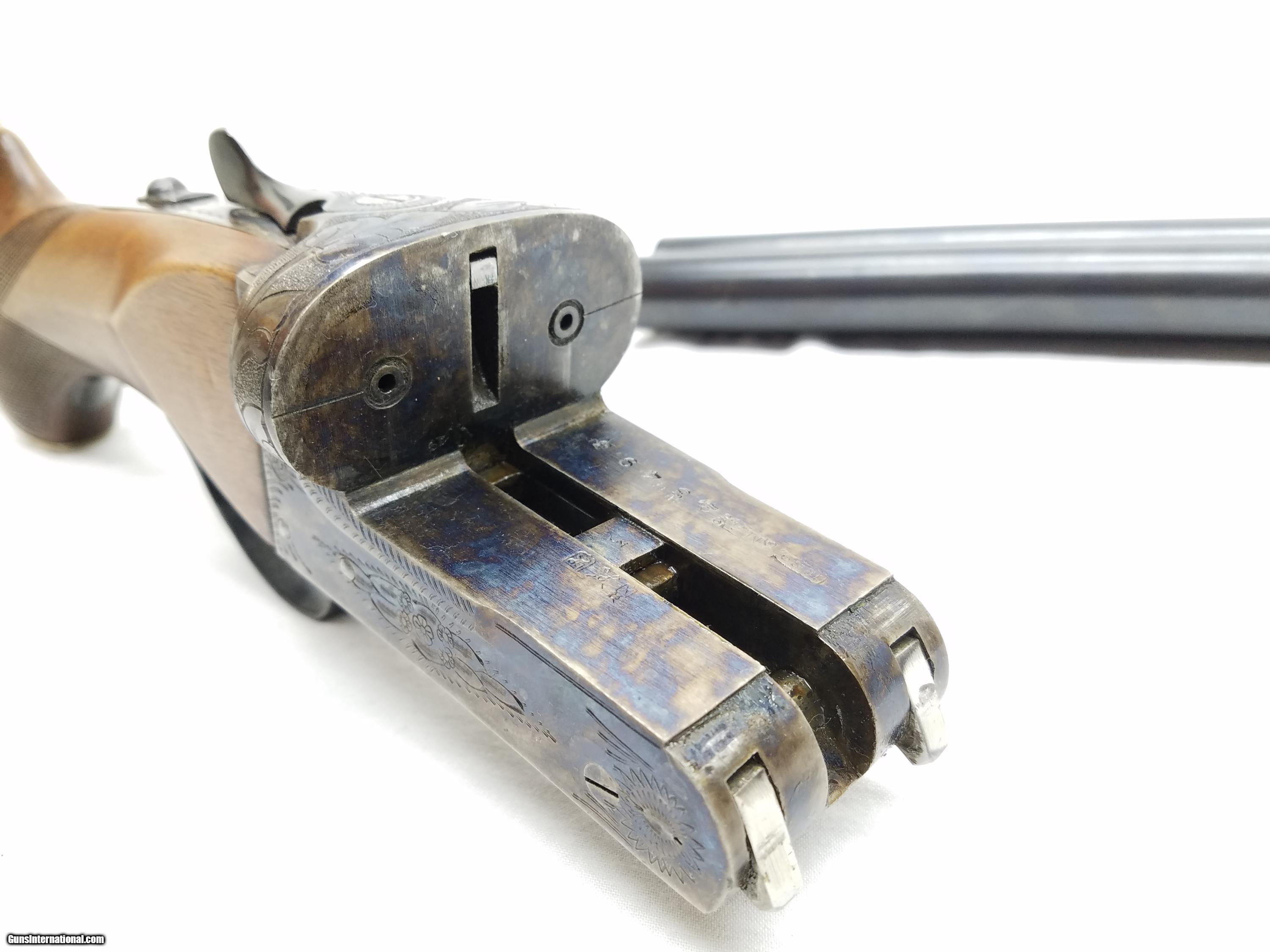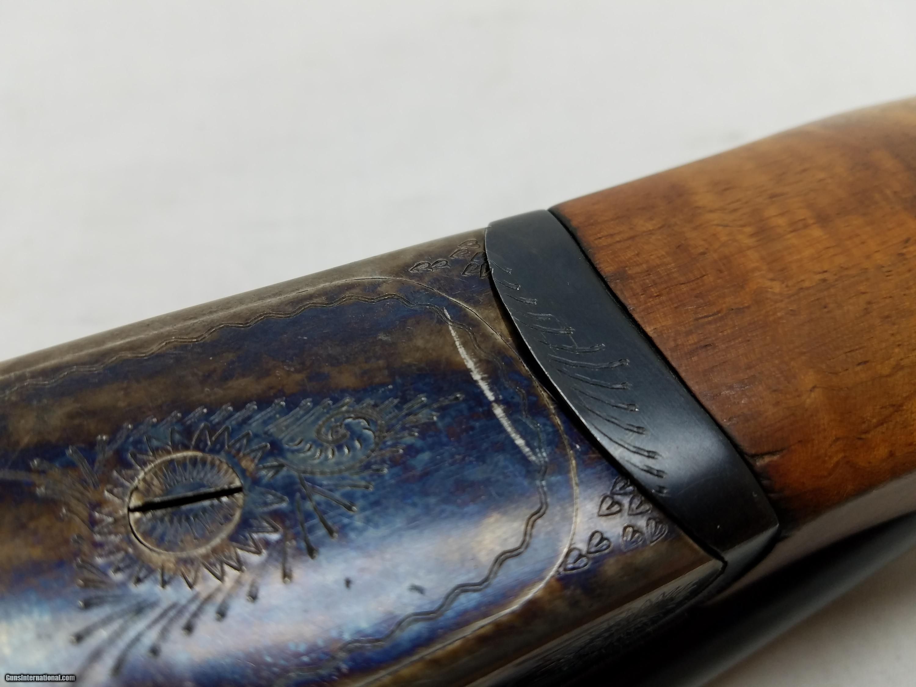 Description: This is a 10 gauge side-by-side shotgun made by Umbe Eiber. The 20” blued barrels are in good condition, having some light finish wear and a few small scratches. The bores are smooth and uncorroded and both barrels are cylinder bore. The barrels have a gold bead sight on a checkered rib. The receiver is color cased and in good condition. There is no corrosion and only one scratch from opening the forend. The receiver is engraved on all sides and on the tang. The trigger guard and locking lever are blued and have some finish wear around the edges. This shotgun has a safety on the tang and double triggers. The walnut forend and buttstock are in good condition. There are a few light dents on the left side of the tang but the wood is otherwise undamaged. There is checkering at the wrist and forend and the forend has a German silver inlay. The buttstock has a 1” rubber recoil pad with white line spacer and a silver dollar grip cap. Length of pull is 14”, overall length is 38-½” and weight is 10.4 lbs. Our stock number is #A402. Willing to ship anywhere in the US to your FFL, buyer pays freight and insurance. SOLD Manufacturer: Umbe Eiber Metal Condition: good Wood Condition: great Bore Condition: great Barrels: 2 Gauge Info: 10 Stock: walnut Fore End: walnut LOP: 14 Finish: blued Weight: 10.4 lbs Chokes: cylinder bore |
