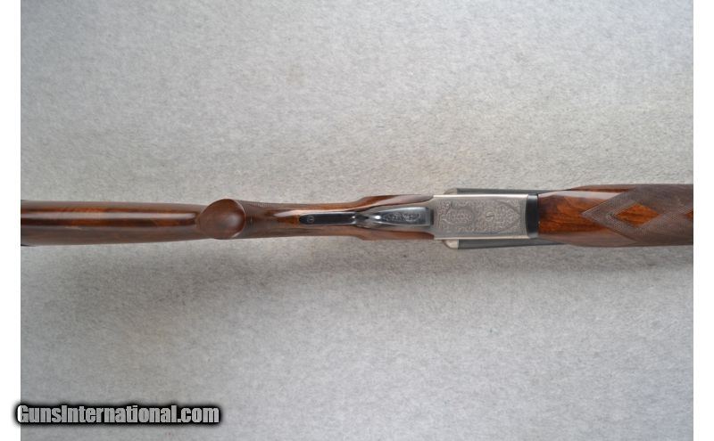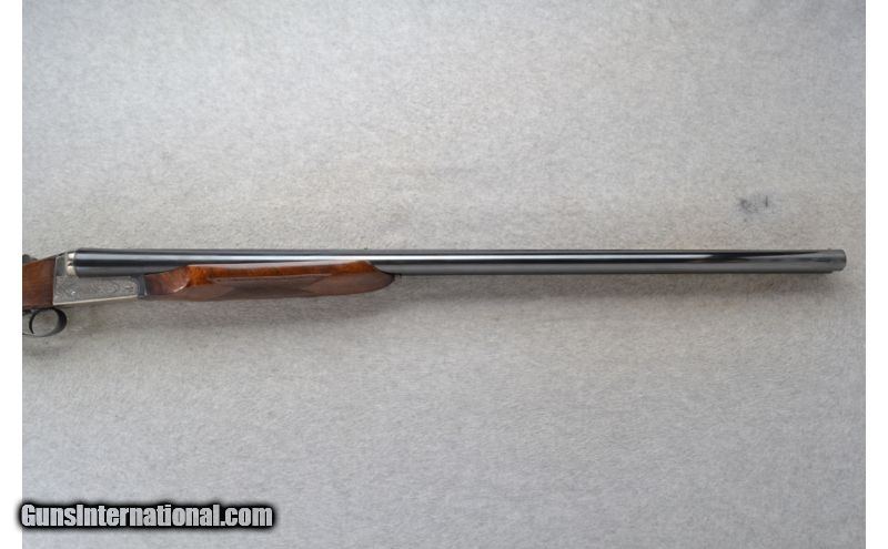 Description: This Zabala Hermanos Model 1032Z is a 10 Ga. Side by Side shotgun. It has 32 inch barrels with extractors, a solid rib and brass bead front and middle sights. It is in 3.5 inch chambers with fixed Full choke both barrels. The stock is a checkered walnut pistol grip and a checkered walnut beavertail forearm. The stainless steel receiver is very nicely engraved. It weighs in at 11 lbs. SOLD Manufacturer: Made in Spain. Caliber Info: 10 Ga. Chambers: 3.5 inch Side x Side with extractors. Metal Condition: Very good. Minor handling marks. Wood Condition: Very good. Minor handling marks. Bore Condition: Clean, bright and shiny. Barrels: 32 inches with a solid rib. Triggers: Double Stock: Checkered walnut pistol grip. Stock Dimensions: LOP 14 3/8 inches. Fore End: Checkered grip walnut beavertail. Butt Pad: Basket weave black rubber. Weight: 11 lbs. 0 oz. Sights: Brass front and middle beads. Chokes: Fixed Full both barrels. Item Location: Richfield, WI |