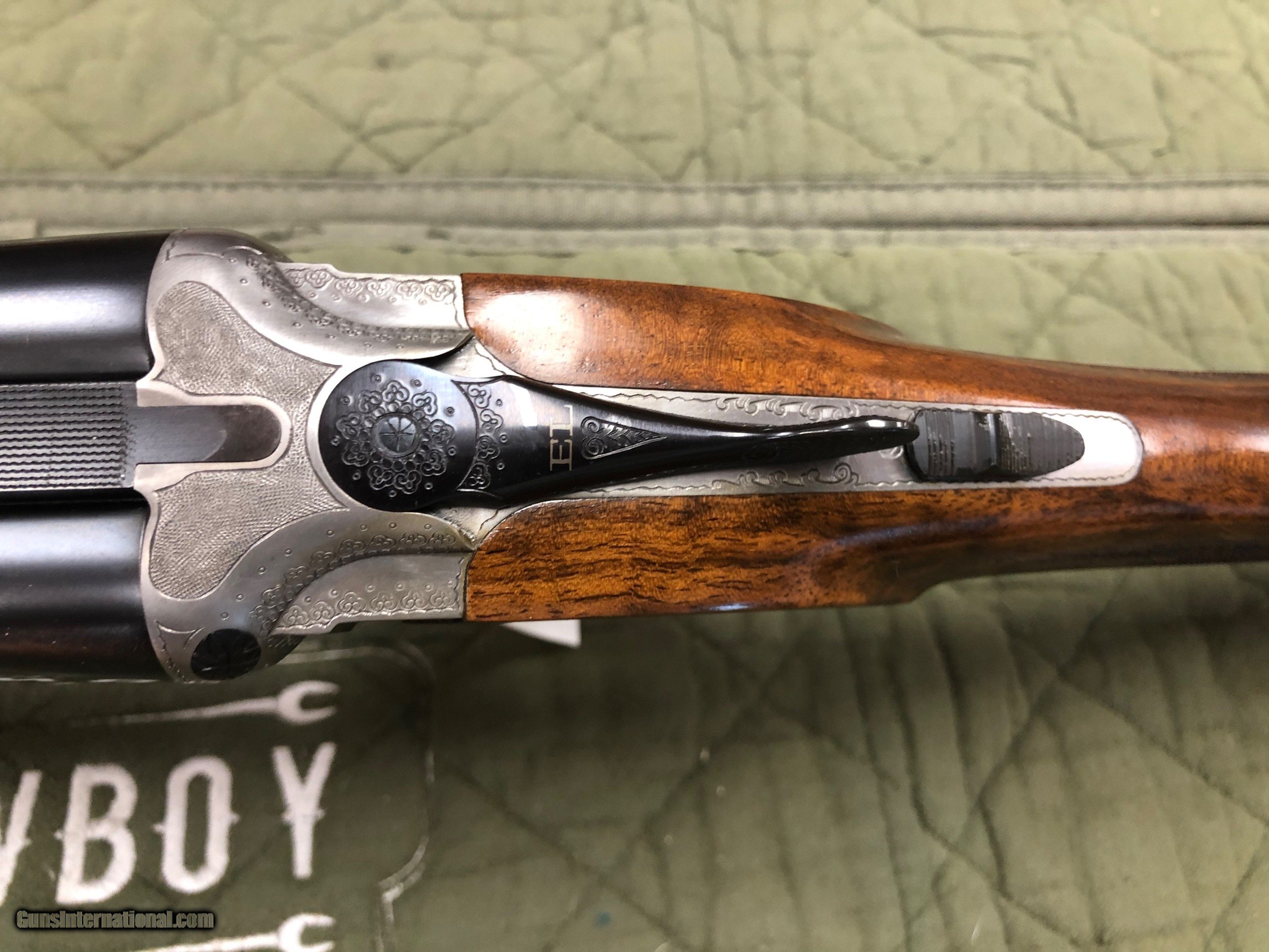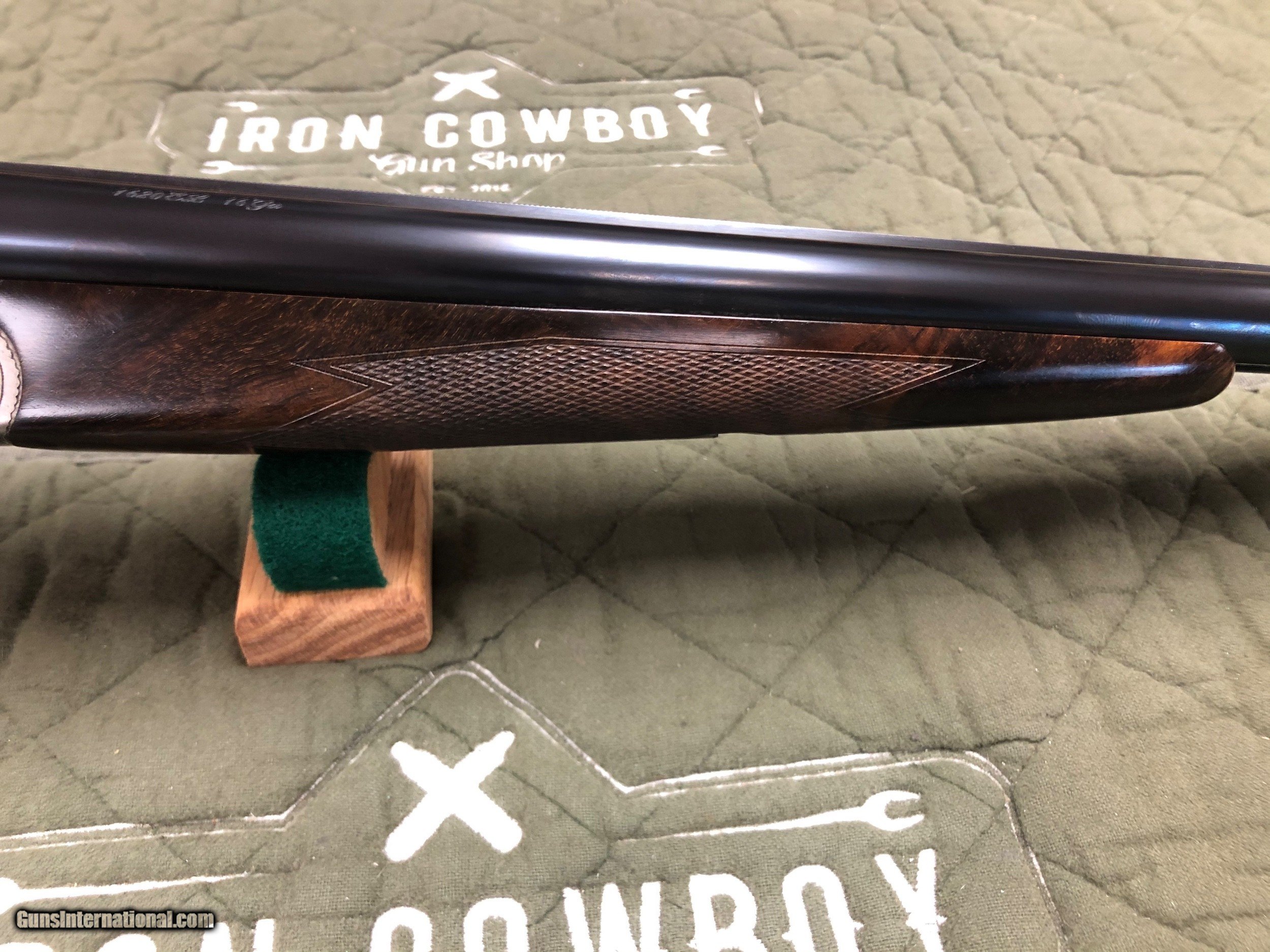 Description: Up for sale is a new Merkel 1620 EL. This fine game gun is chambered in 16 ga with 28-inch fixed choke barrels. The chokes are fixed IC/Mod. The chambers are 2 3/4. The trigger is single selectable. The drop Comb 1.5. The drop heel is 2.5. The LOP is 14.5. There is slight cast off. These double tips the scale at 6 pounds 4 ounces and balances very nicely on the hinge pin. The game seen engraving is done by hand and is beautiful. The wood is grade 6 and is hand checkered. Below is a description from Merkel’ssite. I stock a vast array of Caesar Guerini, Fabarm, Syren, Blaser, Merkel, Nighthawk Custom, Cabot Gun and many more. It is impossible for me to list everything I will special order you anything your heart desire. Thanks for looking. WHY IRON COWBOY? Buying a fine gun is not shopping cart transaction. Buying from Iron Cowboy means buying a gun from me. It means buying from someone as passionate as you about fine guns. I want you to get the right gun both for you and your application, and my advice reflects what I feel is in your best interests. No clerks, no ‘other’ salesman – just me. Odds are we will have a discussion on my shooting experience with the gun you are after, and every transaction gets my personal best. Thank you, as always, for looking. GROWTH THROUGH SERVICE Everyone is a customer at some point. I’ve taken the good from my experiences and apply it to my transactions. I’ve taken the bad and sworn to never pass that same experience on to my customers. I strive to act the way I would respect someone else for acting. In this way, Iron Cowboy differentiates itself with growth through service and repeat business. It’s my commitment to you, my customer. Iron Cowboy Gunshop, LLC Edward Kondraski III (570) 733-2042 Meisterstück side-by-side shotguns are light and wonderfully elegant hunting guns; fine representatives of the good old days. The side-by-side arrangement of the barrels is a classical design principle of hunting guns - this principle has been applied in Suhl since the early days. Even if the Merkel brothers were more committed to the over-and-under gun at the start, the Merkel philosophy was soon devolved to the traditional side-by-side gun. An example of this is the aesthetic line of the slim soldered barrels - a trademark of Merkel Meisterstücks. Whether with Anson & Deeley locks or sidelocks, the Suhl shotguns soon developed their own style and cleverly improvised on the existing systems and solutions. Besides the classical barrel hook, Suhl soon adopted the cross bolt developed by William Greener - which represented gunmaking at its finest. Merkel maintains the elegance and optical lightness of these shotguns by consistent adherence to traditions. The individually adapted receivers also play a role. Three different receivers are manufactured for the three calibres on offer - calibre-adapted. This keeps the receivers slim and the guns light and responsive. With the shotguns too, steel is interlocked against steel and the Merkel top-down principle is applied. Thus the receiver of a side-by-side shotgun is constructed in such a way that it can withstand the same gas pressure as a Safari rifle. SOLD |