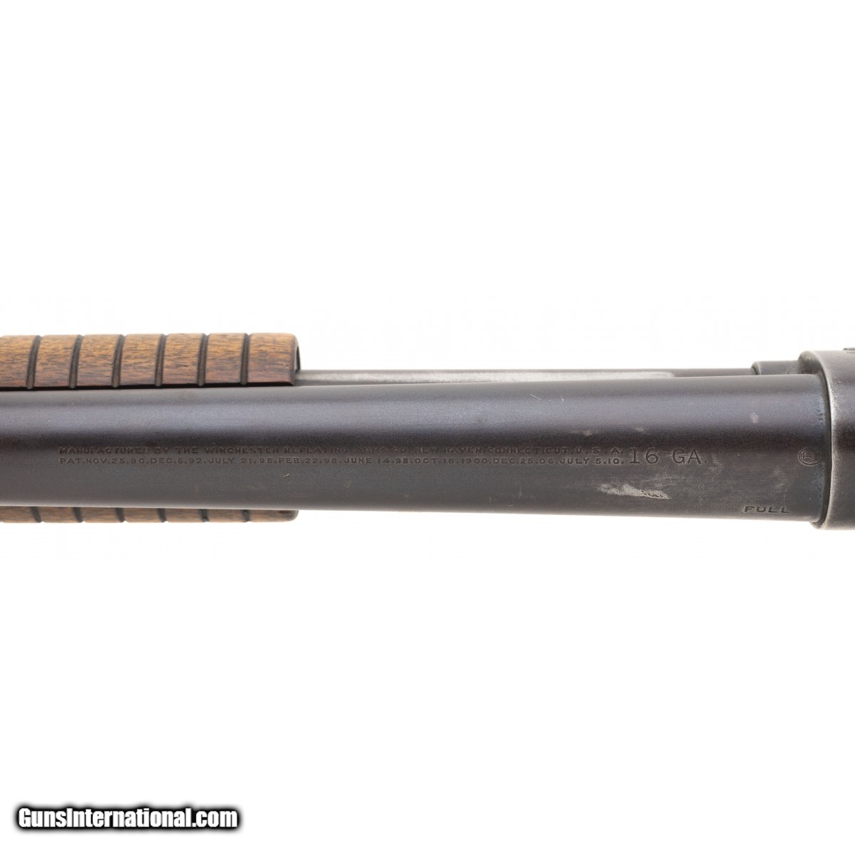 SN: 515007. Made in 1912. 16 Gauge with a 28"" full choke barrel. Bore is bright and in very good condition. Winchester pump action field gun. Shotgun has brown patina throughout with traces of factory blue in protected areas. Stock is in good condition with handling wear noted throughout. Action functions properly. Overall very good condition.