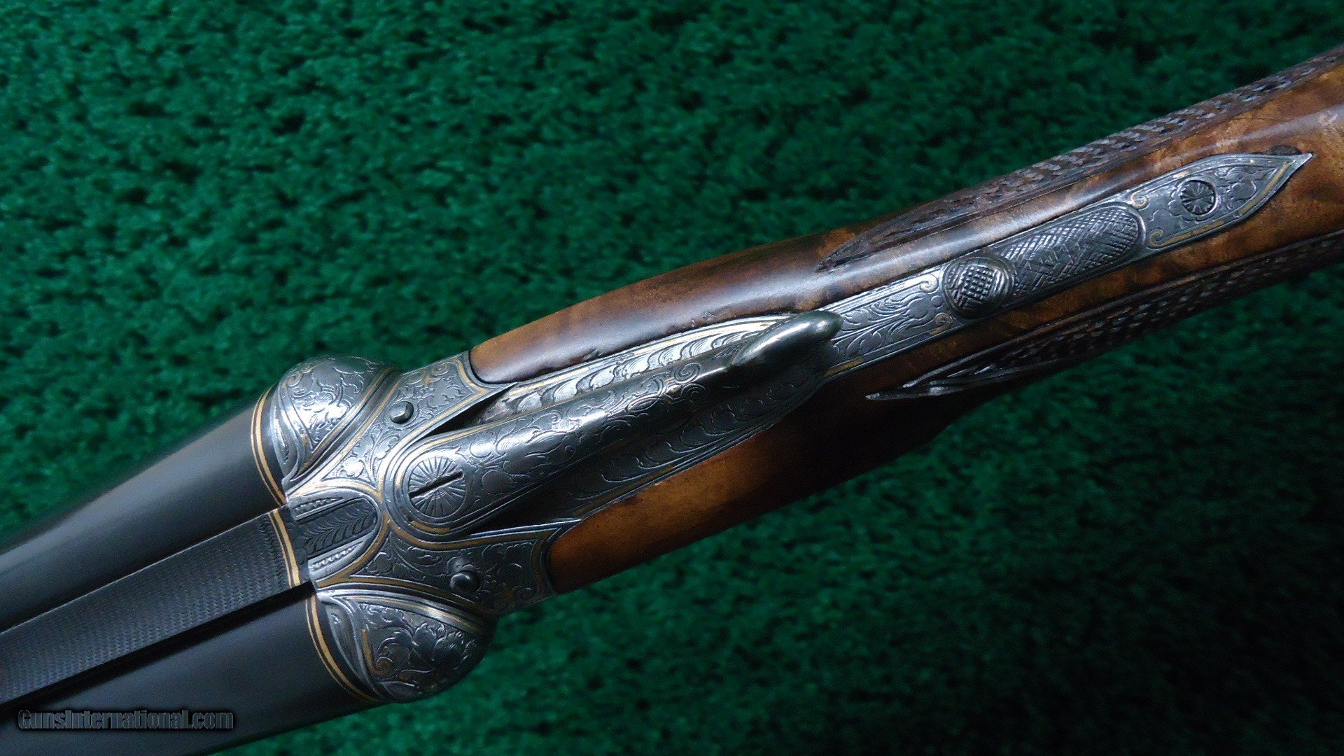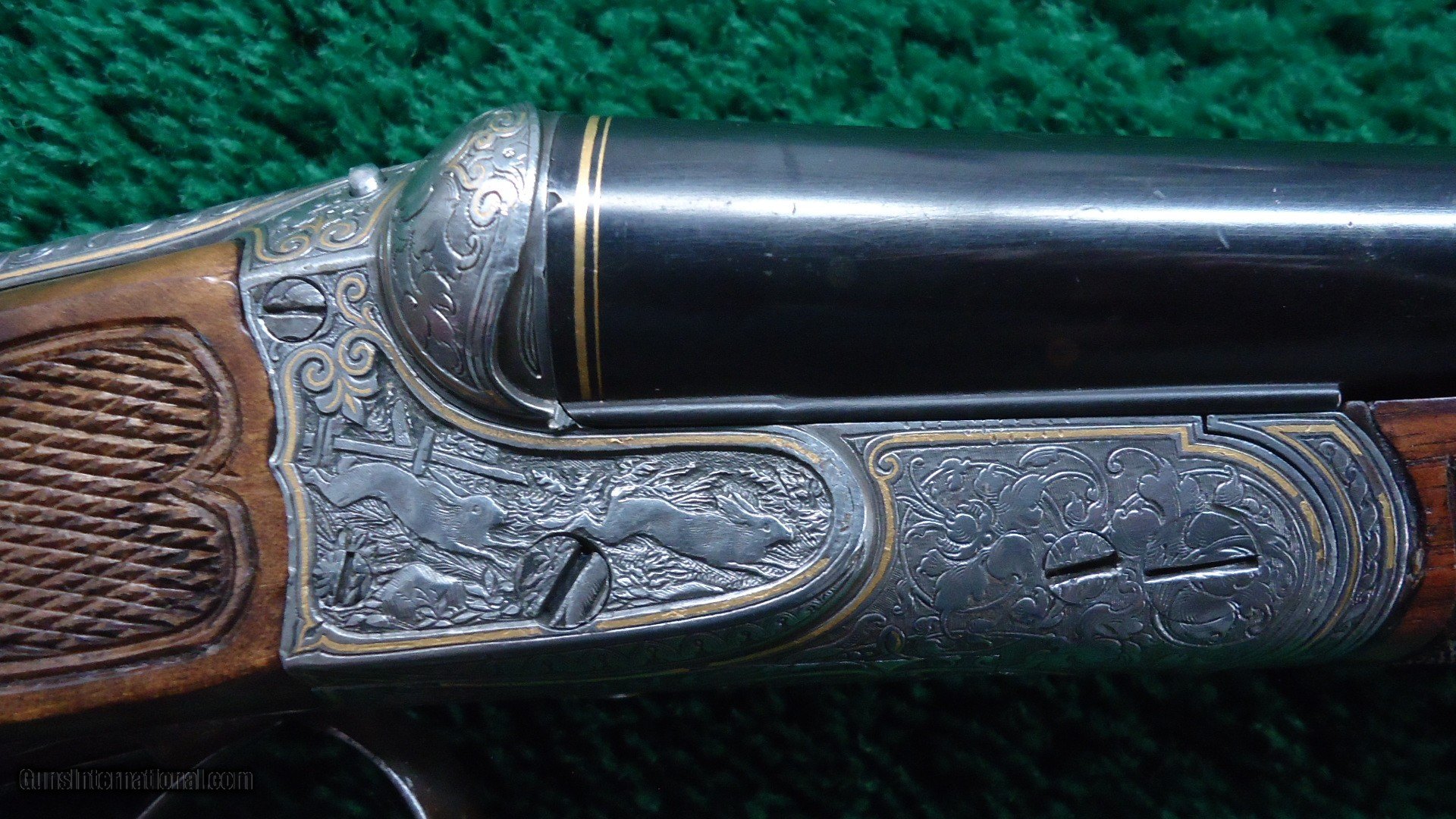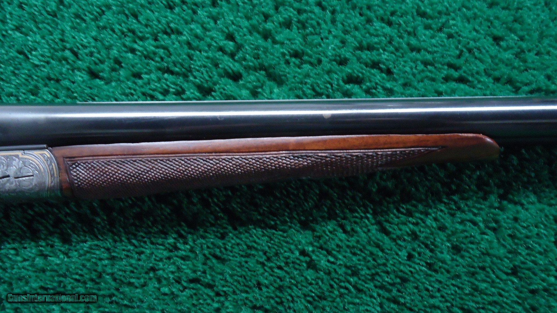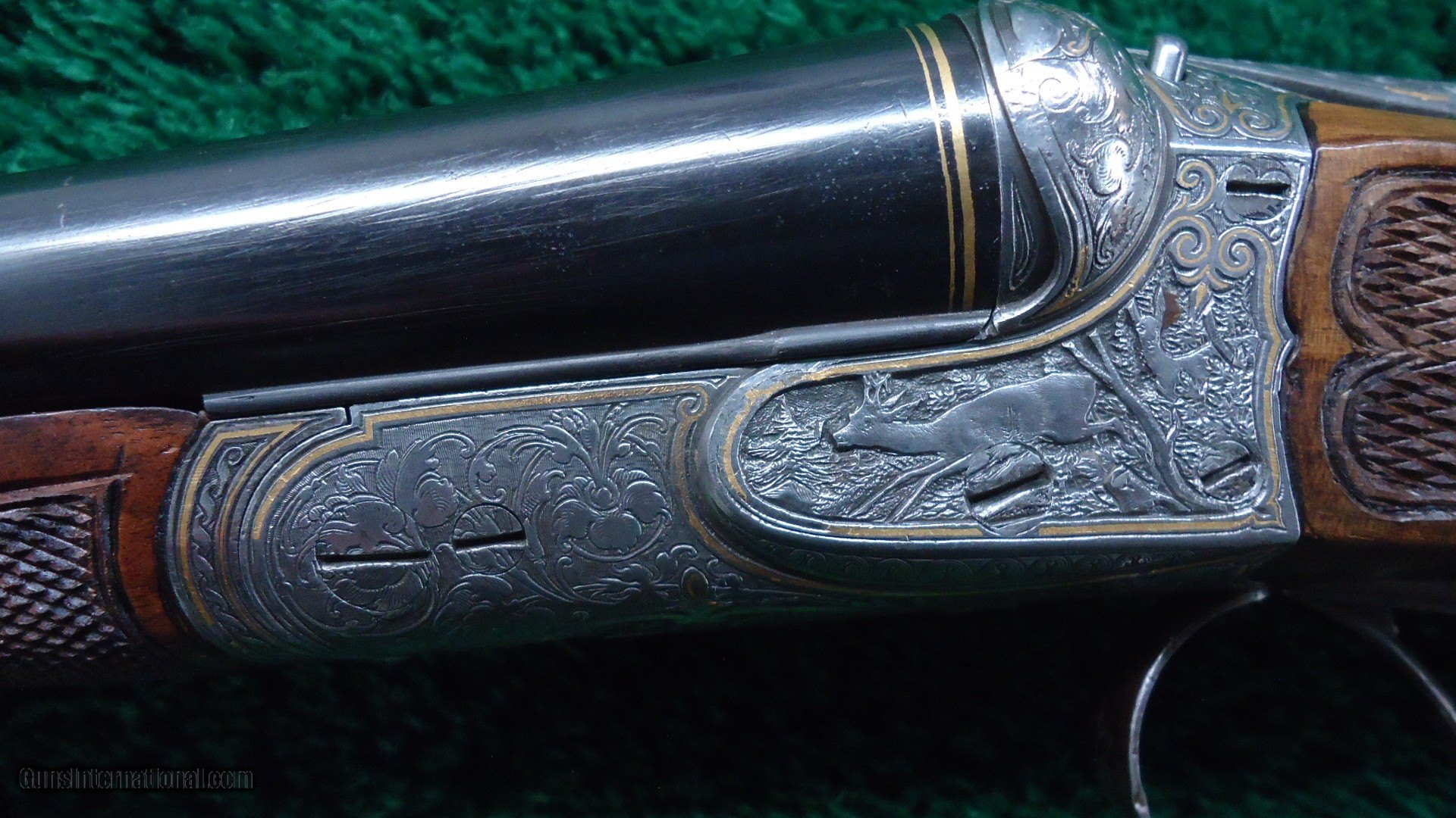Description: 29-7/8 inch solid rib barrels retain a good amount of thinning blue with some wear and pitting at the muzzle. Single brass bead front sight. Chambers measure 2 3/4 inches. Choked Modified and Improved Modified. The nicely figured wood stocks compliment the beautiful game scene engraving. Sharp checkering and a hard rubber buttplate. 14 3/8" LOP. Gun weighs 6 pounds 10.8 ounces. Does not have ejectors. A beautiful J. Zeller double barrel shot gun made in Paderborn which is in Central Germany. Leroy Merz Antique Firearms specializes in antique and vintage Winchesters and other fine American firearms. Since 1965 Mr. Merz has taken part in the world of firearms and has been a contributor to many well known reference books. We have hundreds of additional guns in every price range at our home online. Search for Merz Antiques in google. SOLD Curio/Relic: Yes Shotgun Gauge: 16 Gauge |