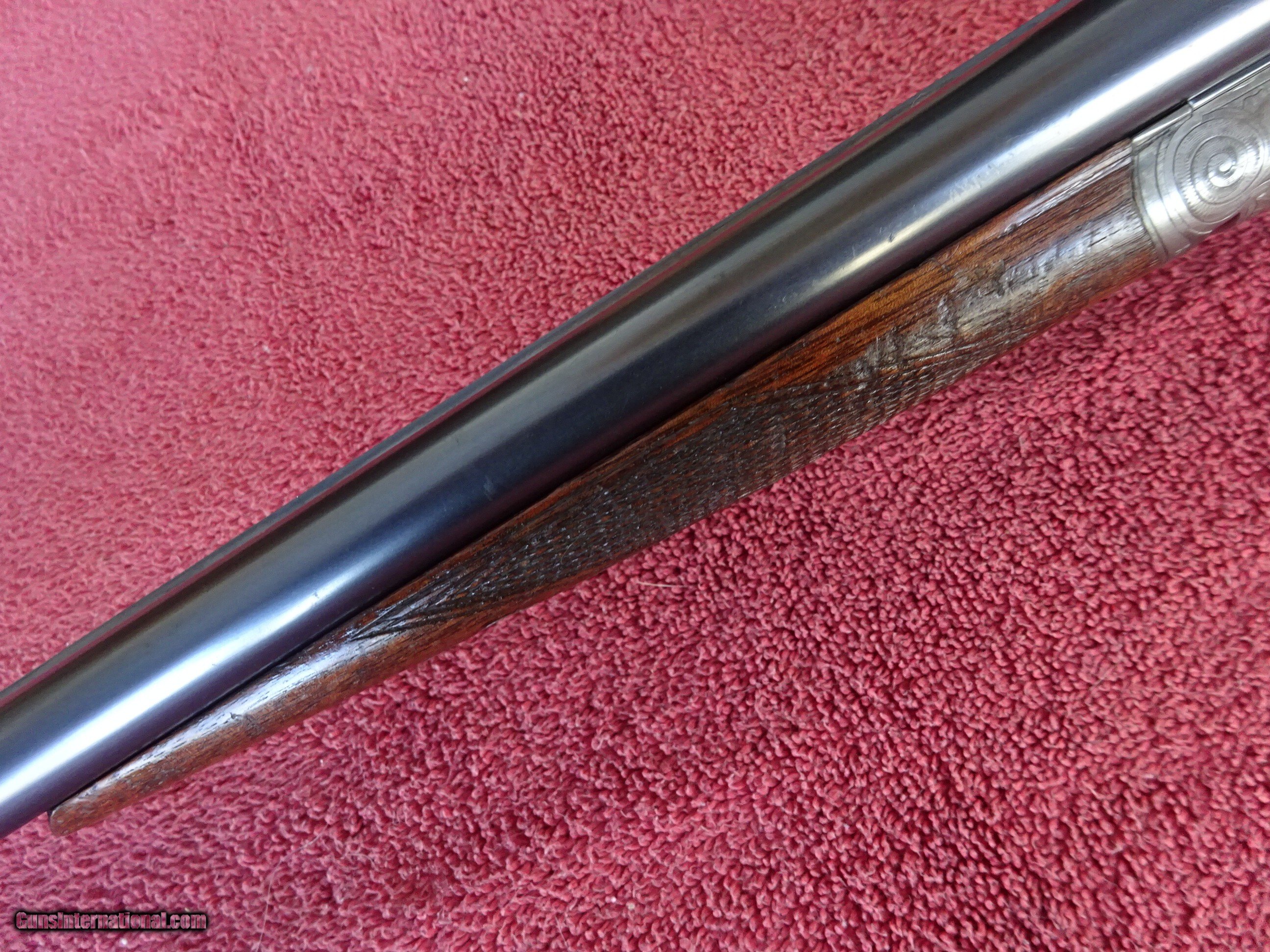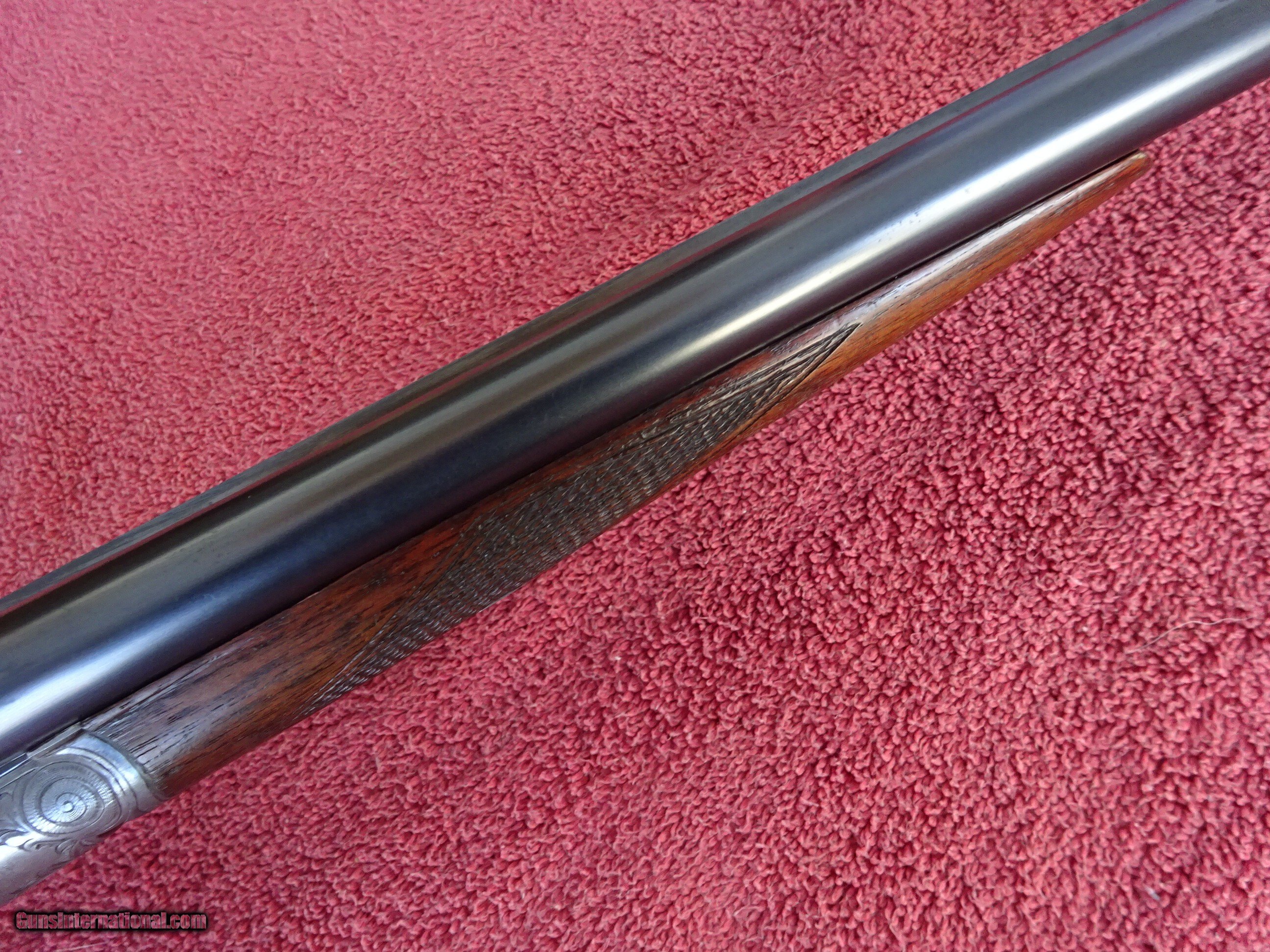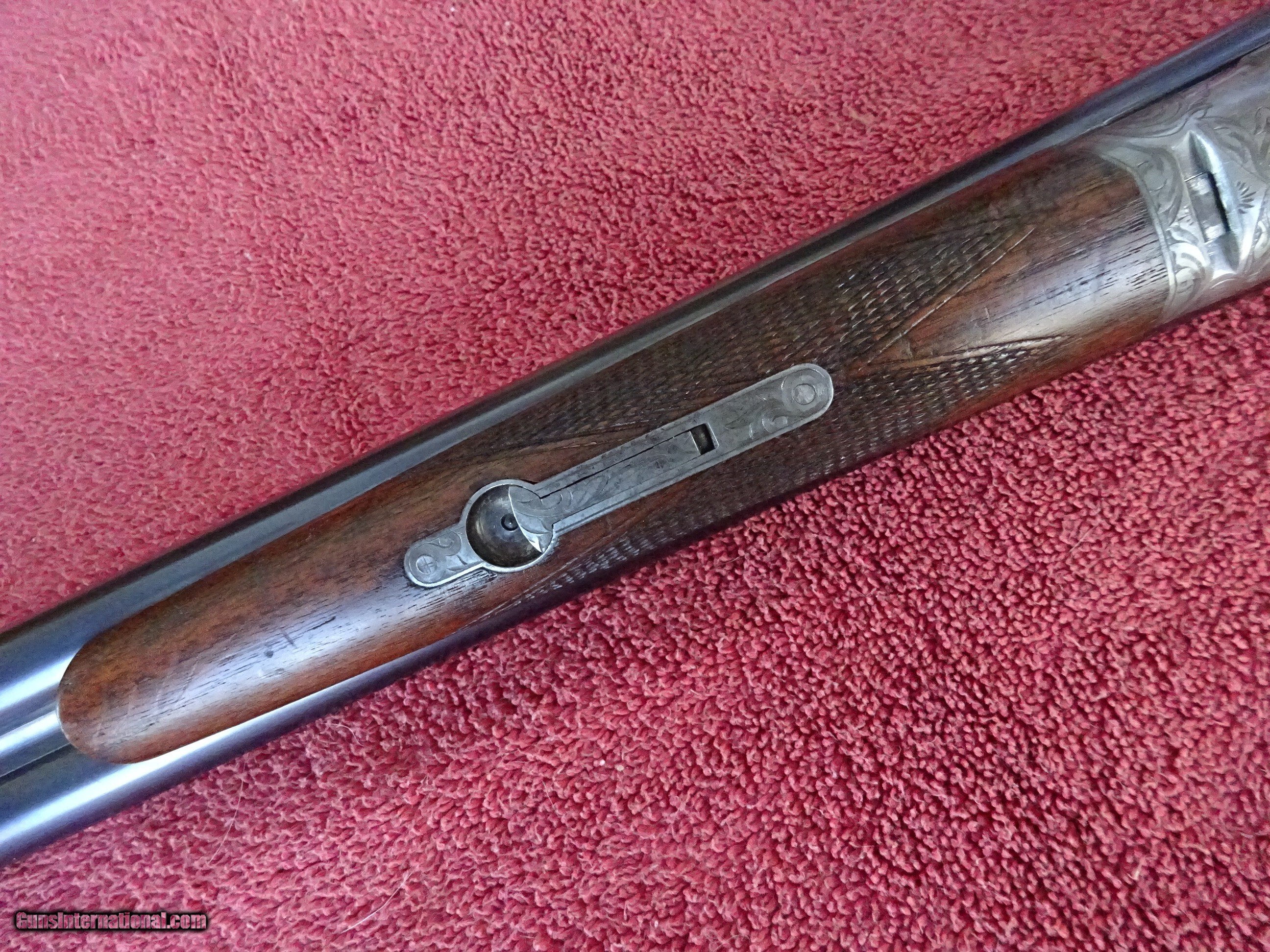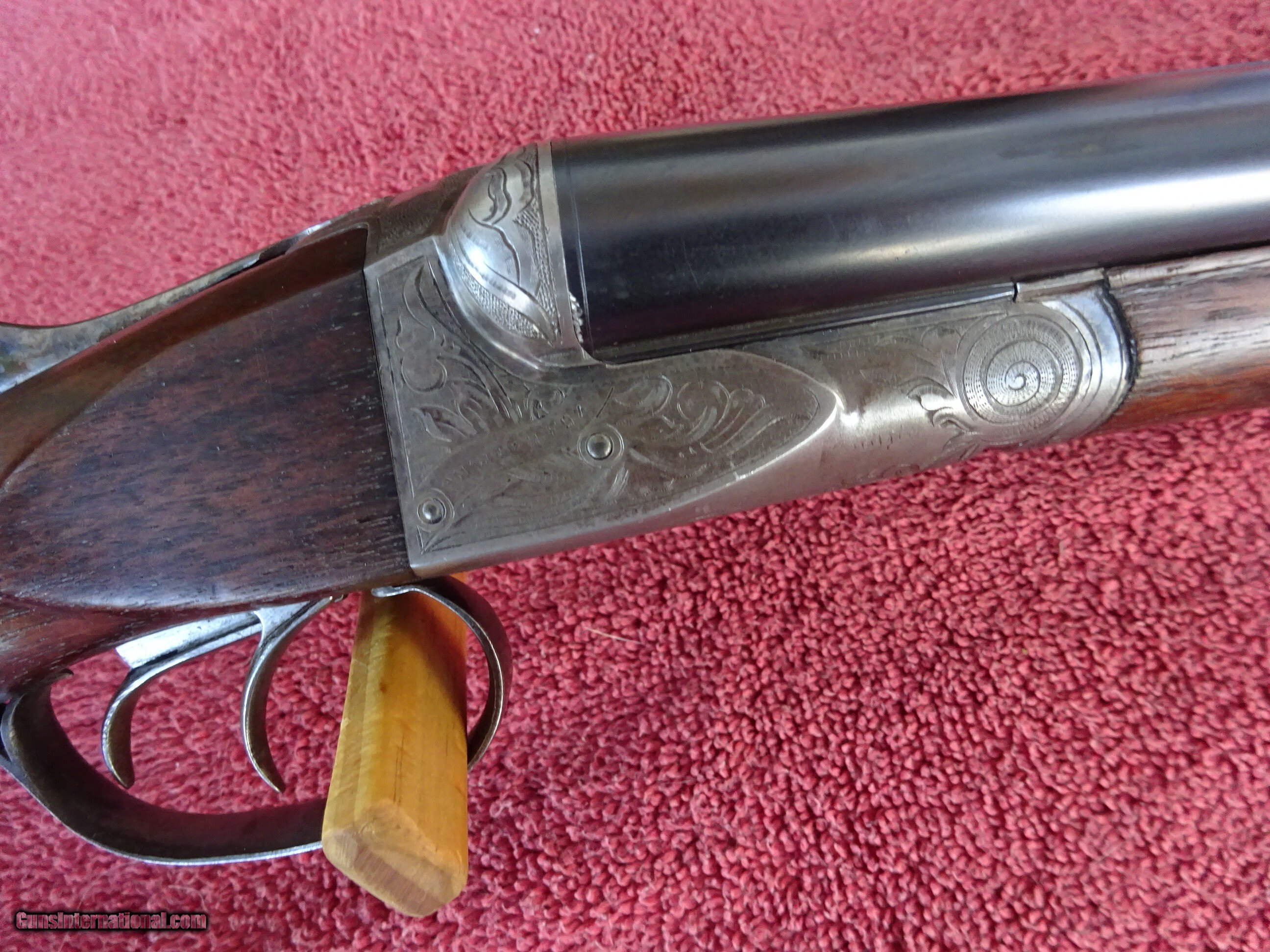 Description: A H FOX, UTICA NY., A GRADE 16 GAUGE. SIDE BY SIDE 28" CHROMOX FLUID COMPRESSED STEEL BARRELS, CLEARLY STAMPED NO 3 WEIGHT, 99% BRIGHT ORIGINAL BLUE, MIRROR PERFECT BORES, SINGLE BEAD SIGHT. REVERSE CHOKES - RIGHT BARREL MODIFIED, LEFT BARRL CYLINDER, 2 3/4" CHAMBERS, EXTRACTORS. AUT0 SAFETY, BOXLOCK FRAME WITH DEEP CUT SCROLL AND LEAF PATTERN WITH STIPPLED BACKGROUND, FINE LINE BORDERS AND ENGRAVED SCREWS. VIVID CASE COLOR IN THE PROTECTED AREAS. PISTOL GRIP STOCK, SPLINTER FOREARM, DARK GRAINED AMERICAN WALNUT WITH ATTRACTIVE FIGURE. VERY GOOD WOOD AND CHECKERING, 1 1/2" X 2 1/2" X 13 3/4", 6 POUNDS 4 OUNCES. SOLID NOSHOC PAD. INCLUDES A FOX HISTORIAN LETTER DATED 2012 VERIFYING THE SPECS ALSO STATING THE GUN WAS ORDERED WITH A 13" LENGTH OF PULL IT IS NOW 13 3/4" WITH THE PAD. NICE LITTLE CLOSE COVER UPLAND BIRD GUN MADE IN 1935. $3750.00 + $70.00 Insured shipping to an FFL address. Layaway is available. See all Pats gun listings on this site! We also have hundreds of ORIGINAL gun company advertising & memorabilia pieces available for sale on our site SPORTINGCOLLECTIBLES. We have no reprints or reproductions. Email for more information. If you need to call, morning or evening is best, and please note the Seller's Inventory number. Curio/Relic: Yes Price: $3,750.00 Shipping: $70.00 Contact Seller |