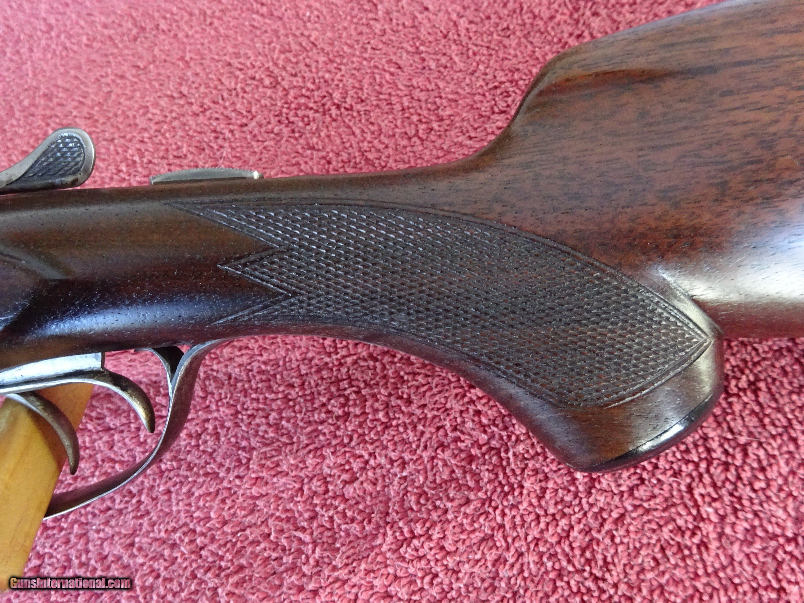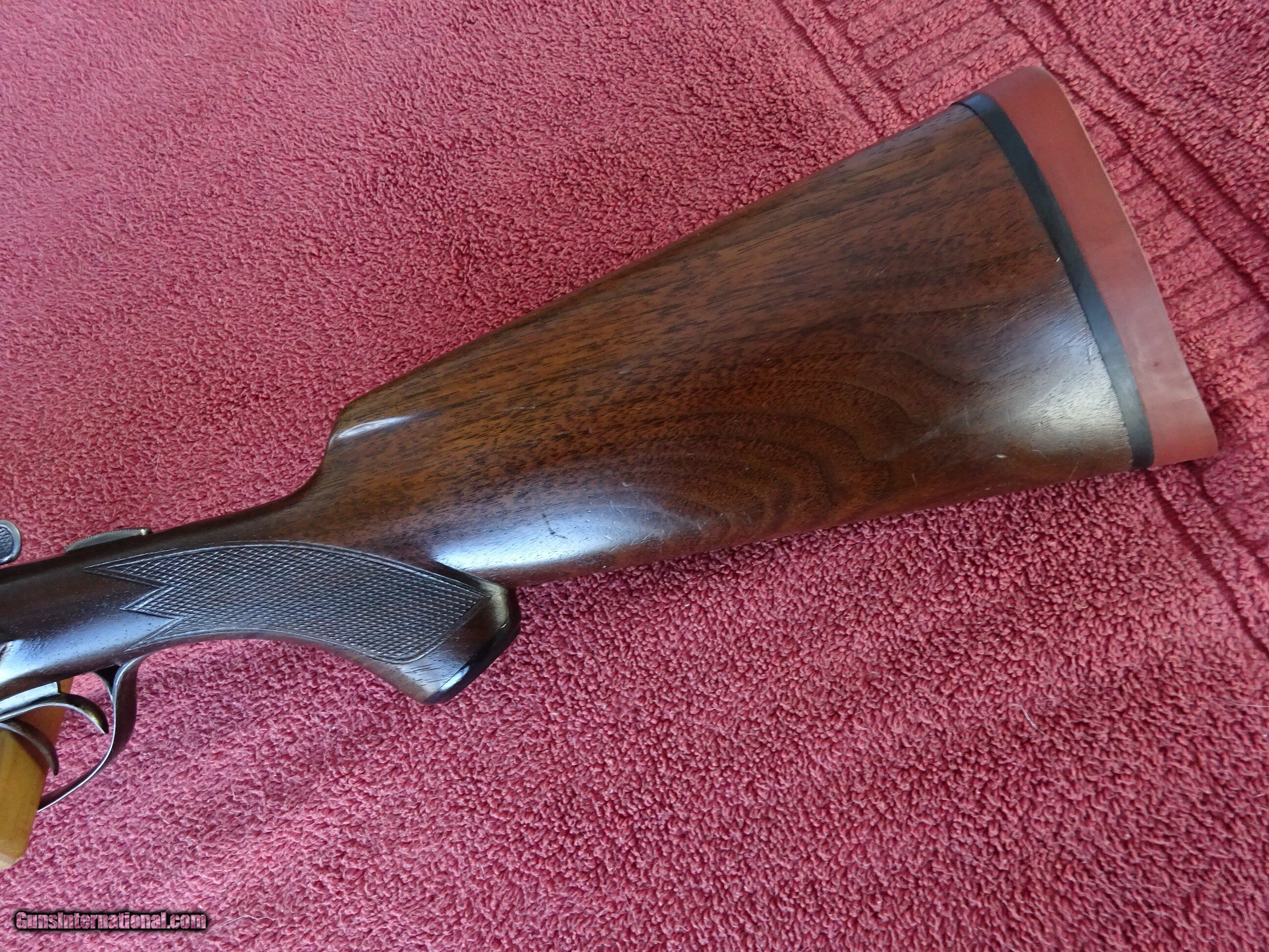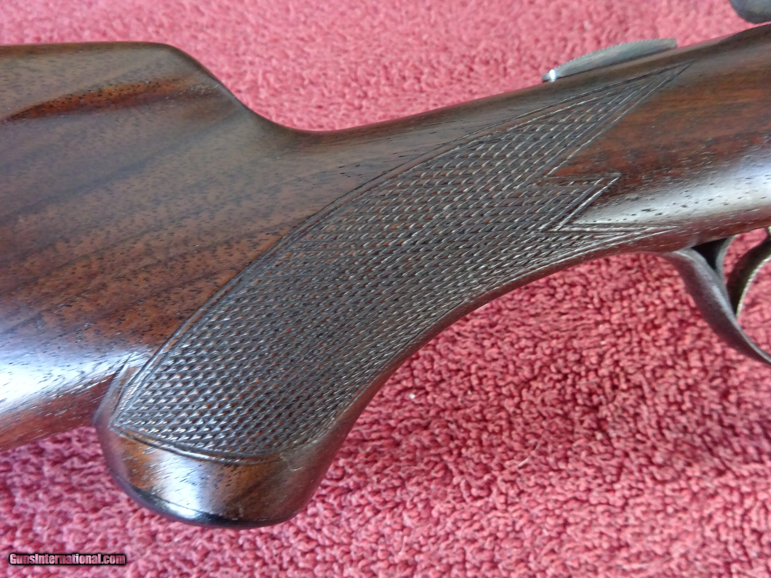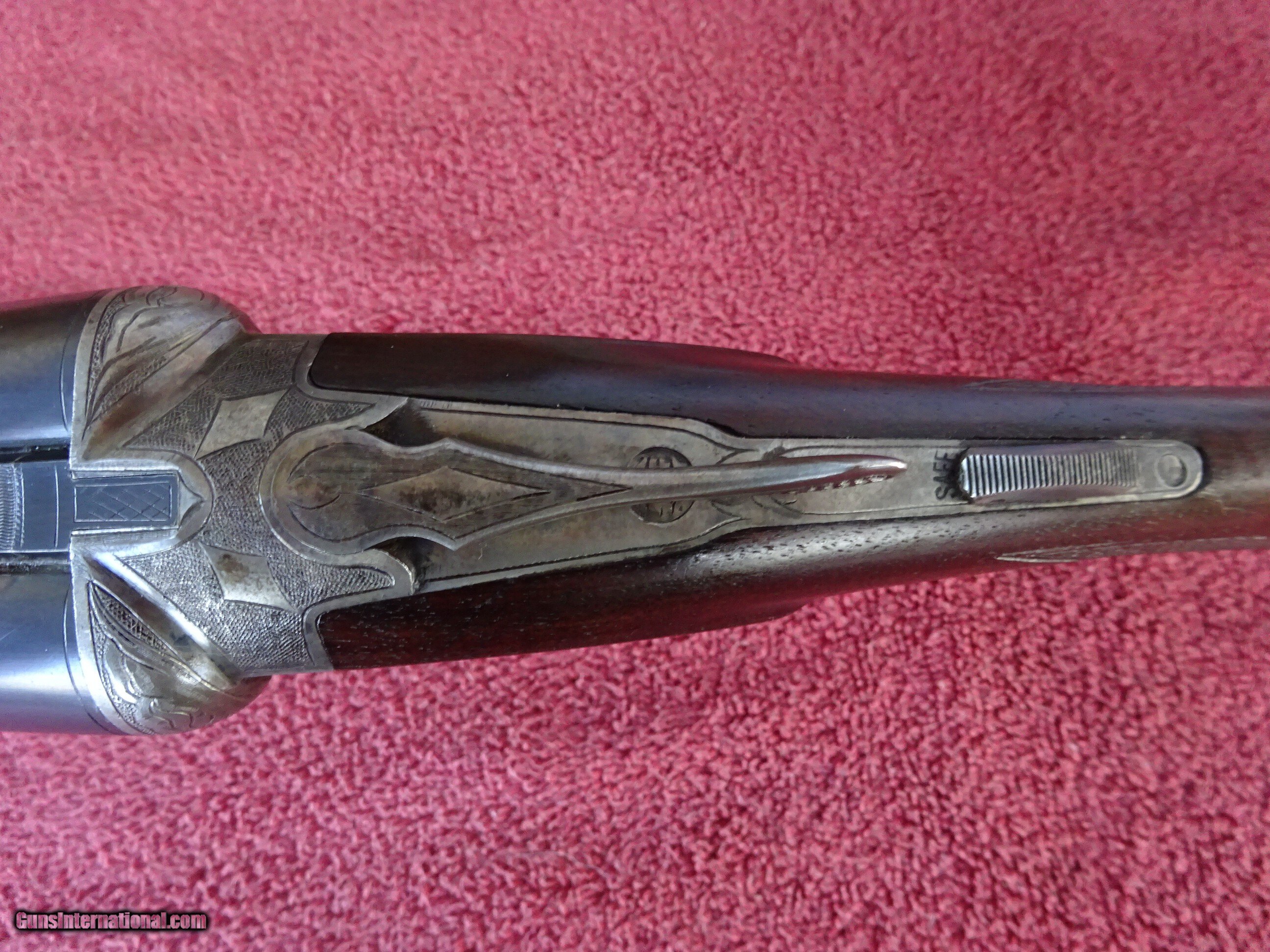 Description: A H FOX, UTICA NY., A GRADE 16 GAUGE. SIDE BY SIDE 28" CHROMOX FLUID COMPRESSED STEEL BARRELS, CLEARLY STAMPED NO 3 WEIGHT, 99% BRIGHT ORIGINAL BLUE, MIRROR PERFECT BORES, SINGLE BEAD SIGHT. REVERSE CHOKES - RIGHT BARREL MODIFIED, LEFT BARRL CYLINDER, 2 3/4" CHAMBERS, EXTRACTORS. AUT0 SAFETY, BOXLOCK FRAME WITH DEEP CUT SCROLL AND LEAF PATTERN WITH STIPPLED BACKGROUND, FINE LINE BORDERS AND ENGRAVED SCREWS. VIVID CASE COLOR IN THE PROTECTED AREAS. PISTOL GRIP STOCK, SPLINTER FOREARM, DARK GRAINED AMERICAN WALNUT WITH ATTRACTIVE FIGURE. VERY GOOD WOOD AND CHECKERING, 1 1/2" X 2 1/2" X 13 3/4", 6 POUNDS 4 OUNCES. SOLID NOSHOC PAD. INCLUDES A FOX HISTORIAN LETTER DATED 2012 VERIFYING THE SPECS ALSO STATING THE GUN WAS ORDERED WITH A 13" LENGTH OF PULL IT IS NOW 13 3/4" WITH THE PAD. NICE LITTLE CLOSE COVER UPLAND BIRD GUN MADE IN 1935. $3750.00 + $70.00 Insured shipping to an FFL address. Layaway is available. See all Pats gun listings on this site! We also have hundreds of ORIGINAL gun company advertising & memorabilia pieces available for sale on our site SPORTINGCOLLECTIBLES. We have no reprints or reproductions. Email for more information. If you need to call, morning or evening is best, and please note the Seller's Inventory number. Curio/Relic: Yes Price: $3,750.00 Shipping: $70.00 Contact Seller |