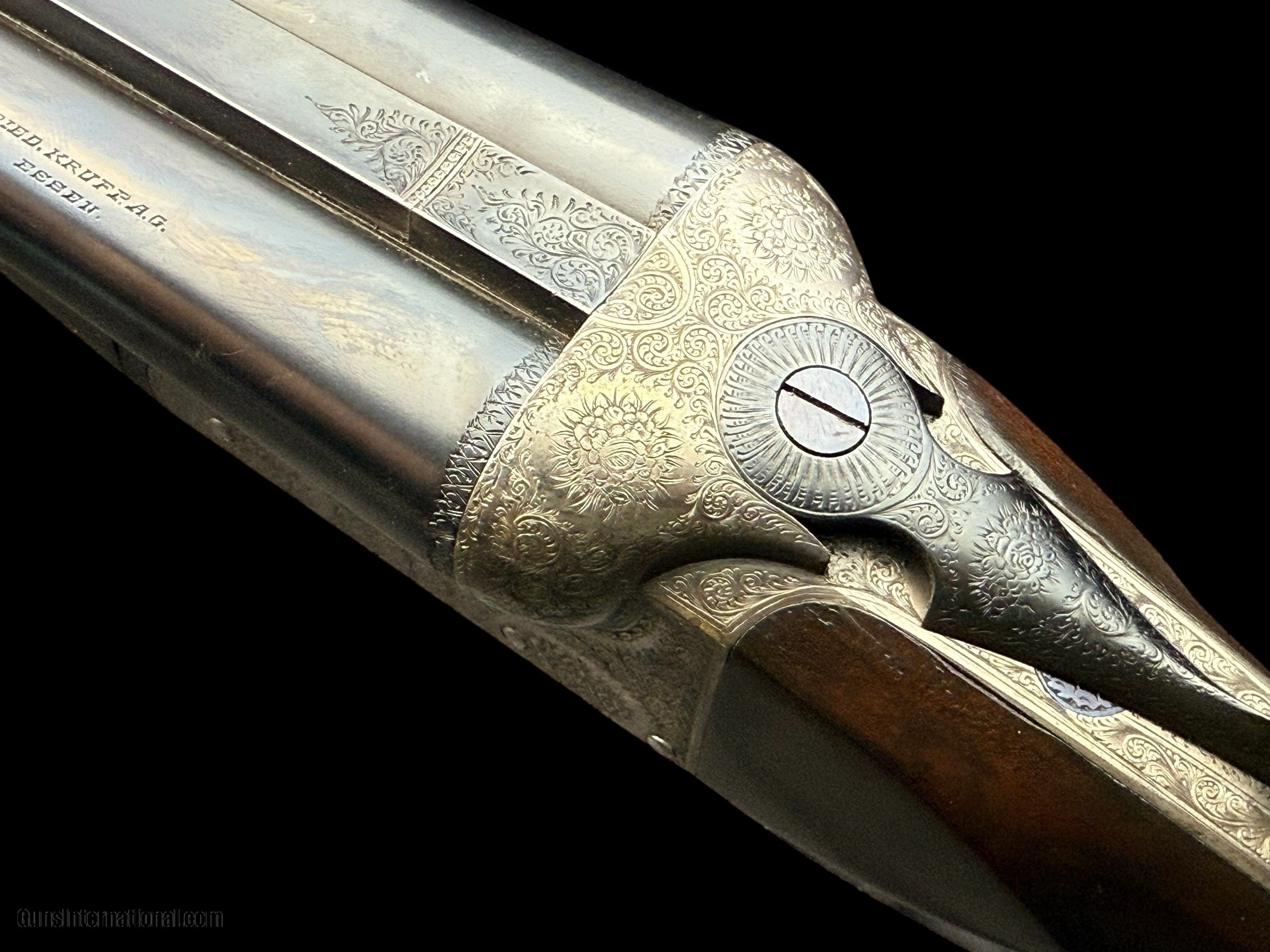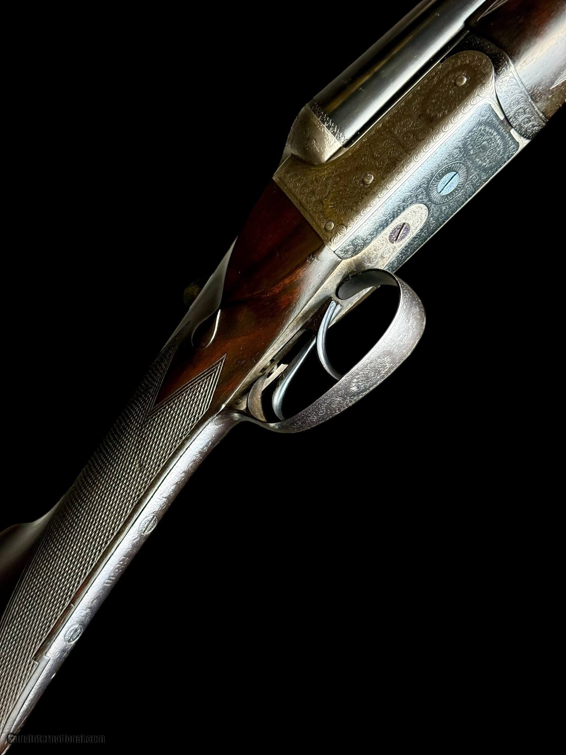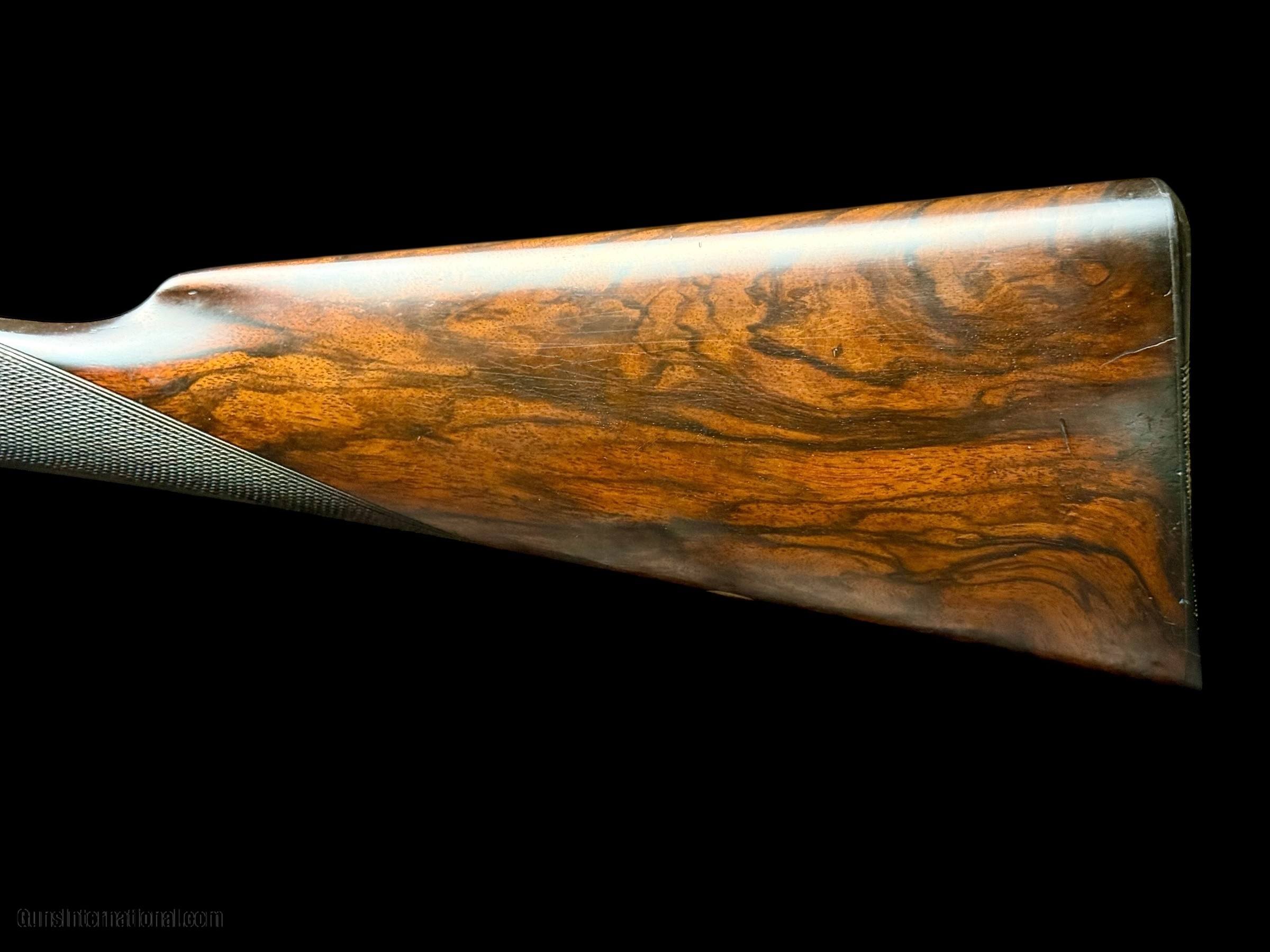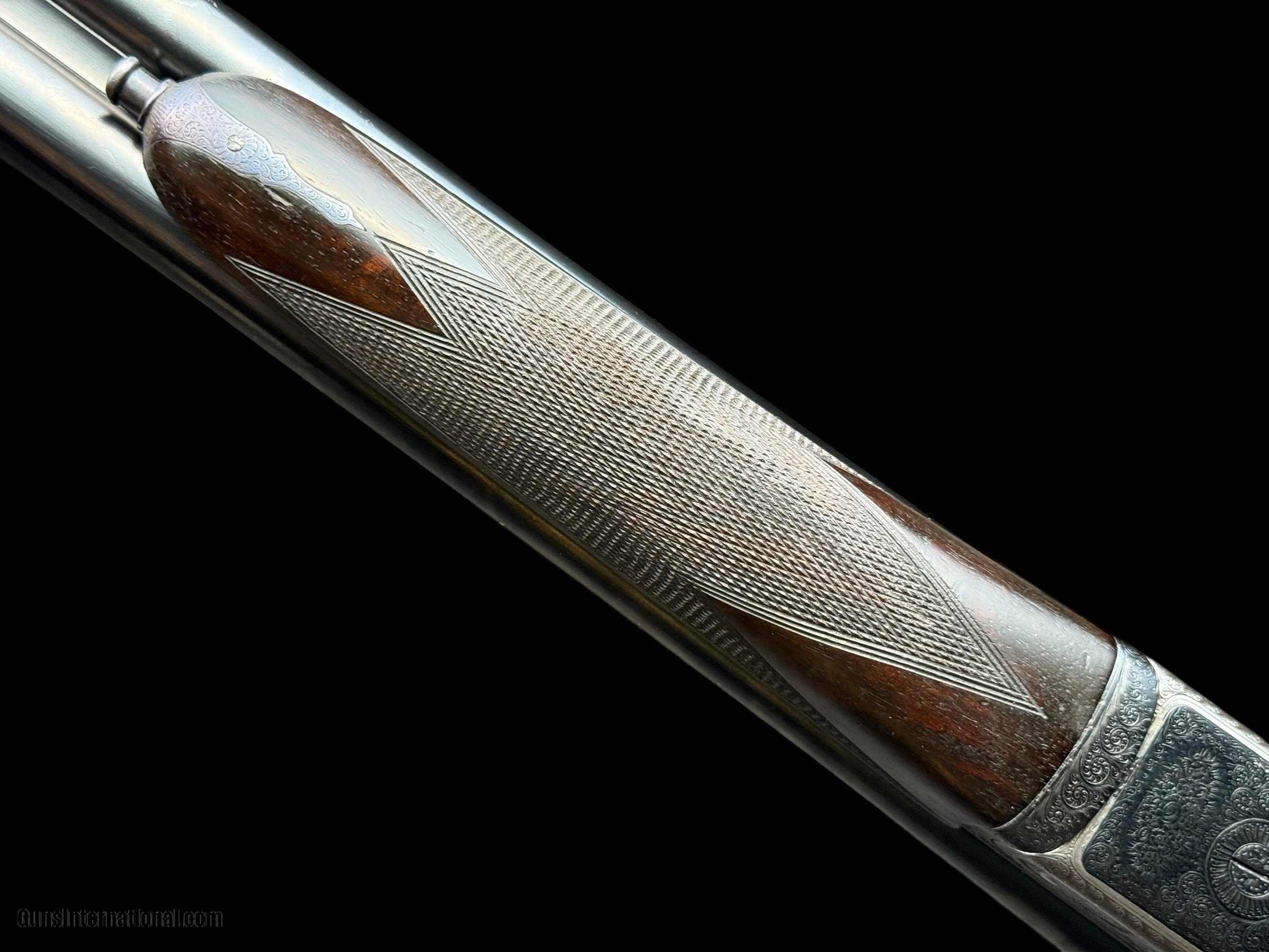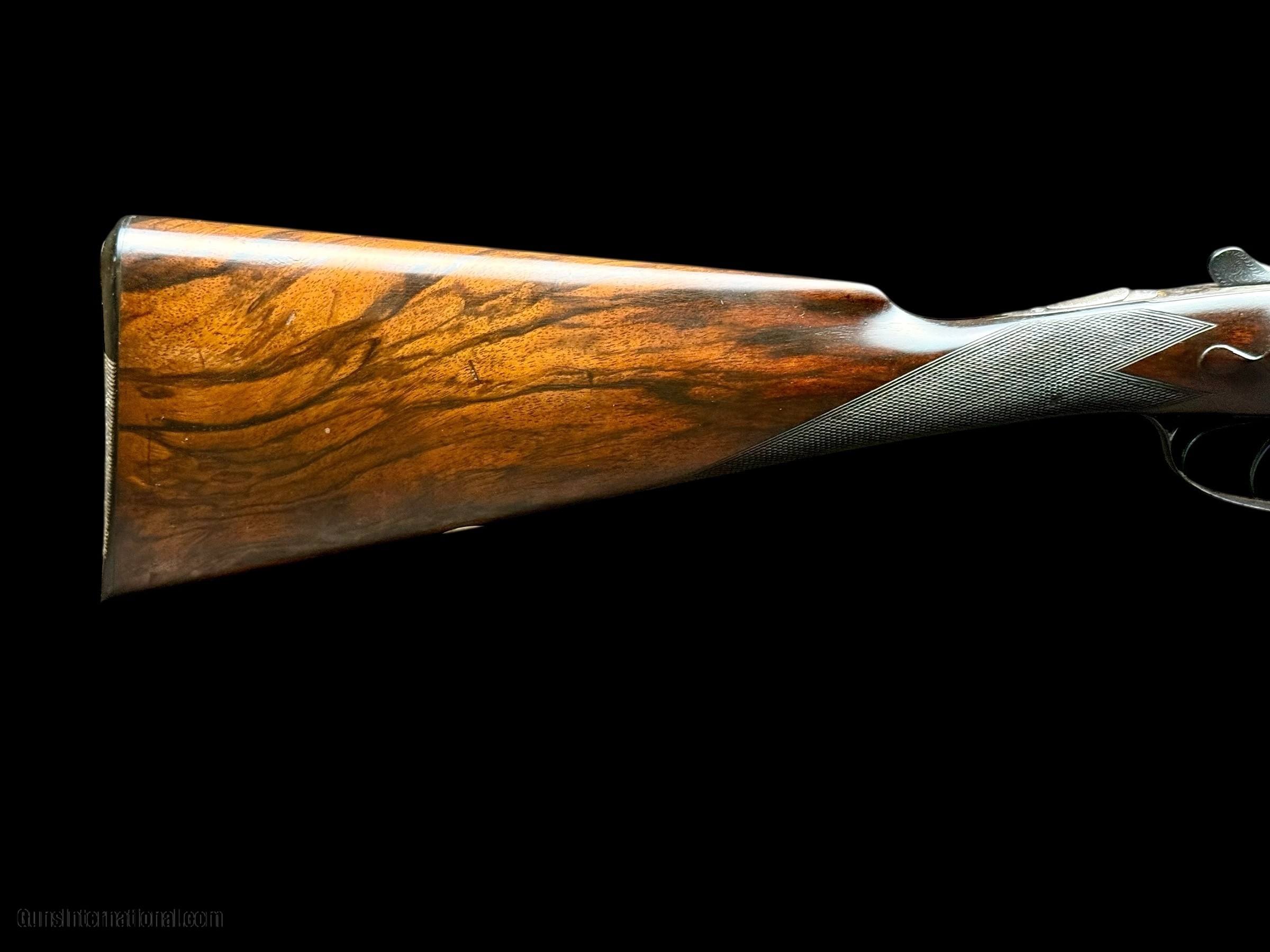 Description: AGNEW & SON - EXETER, UK - ENGLISH GAME GUN - ENGLISH SCROLL ENGRAVED BOXLOCK ACTION W/ DOUBLE UNDERBITES AND HIDDEN THIRD FASTENER - 16GA - 2 3/4" / 70MM W/ MODERN NITRO PROOFS - 28" BARRELS - CHOKES: .015" / .028" EJECTORS - DOUBLE TRIGGERS - NICELY FIGURED ENGLISH WALNUT STRAIGHT GRIP STOCK AND SPLINTER FOREND - POINT PATTERN CHECKERING WITH TRIPLE MULLERED EDGES - STRAIGHT LINE CHECKERED BUTT W/ ENGRAVED SCREWS - DIMS: LOP: 14 1/2" | DAC: 1 1/2" | DAH: 2 1/8" WEIGHT: 5LBS 13 OZ - CONDITION: GUN IS IN VERY GOOD OVERALL CONDITION. ACTION TIGHT AND ON-FACE. TRIGGERS CRSIP. EJECTORS STRONG AND IN-TIME. BLUING EXCELLENT AS LONDON QUALITY REBLUED.WOOD OIL VERY GOOD AS PROPERLY MAINTAINED WITH SCANT LIGHT HANDLING MARKS AS PICTURED. NICE GUN! GENTLEMEN, THIS IS A QUALITY ENGLISH GAME GUN WITH GREAT DIMENSIONS AND MODERN PROOFS. PERFECT GUN FOR YOUR NEXT QUAIL, PHEASANT, OR PARTRIDGE HUNT. PLEASE CALL NOW! FFL REQUIRED (C&R OKAY) FLAT $50 S/H/I CARD FEE APPLIES Curio/Relic: Yes Shotgun Gauge: 16 Gauge Manufacturer: AGNEW & SON Model: GAME GUN Serial Number: 8890 Barrel Length: 28 Chambers: 2.75 OR 70MM Ejectors: YES Condition: VERY GOOD Metal Condition: VERY GOOD Wood Condition: VERY GOOD Bore Condition: VERY GOOD Barrels: STEEL Action: BOXLOCK EJECTOR Triggers: DOUBLE Proof:Nitro: YES Price: $2,950.00 Contact Seller |