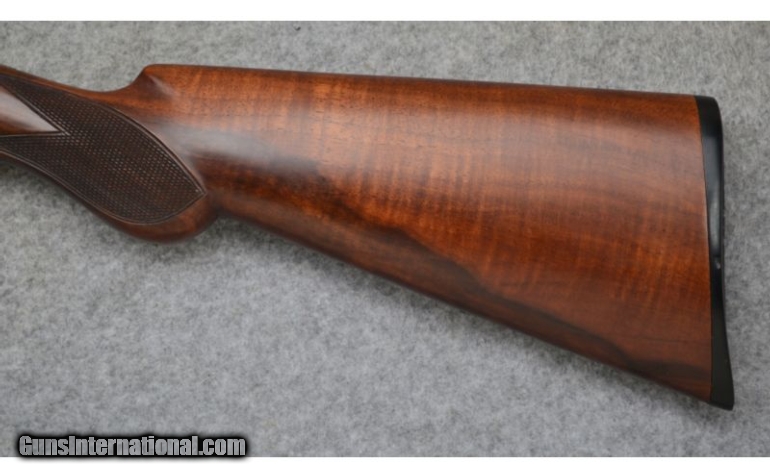 Description: Very good condition overall. Stock has been replaced. SOLD Manufacturer: Circa: 1898 to1930 Caliber Info: 16 Gauge Chambers: 2 3/4 Metal Condition: Very Good Wood Condition: Excellent Bore Condition: Very Good Barrels: 28" Damascus Steel Triggers: Double Triggers with Extractors Stock: Checkered Walnut Round Knob Pistol Grip Butt Stock Stock Dimensions: LOP: 14 1/8 Fore End: Checkered Walnut Splinter Style Butt Pad: Baker Butt Plate Weight: 6 lbs. 12 ozs. Sights: Single Bead Chokes: Fixed: Modified & Modified Item Location: Hamburg, PA |