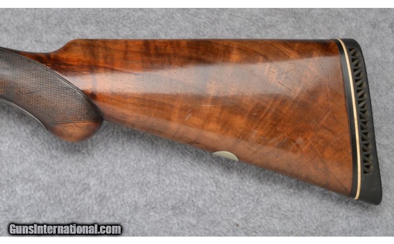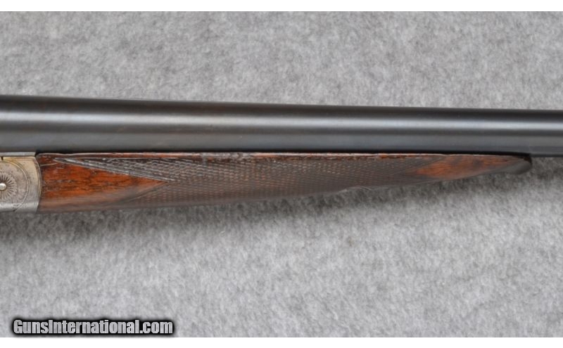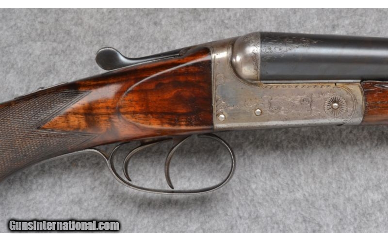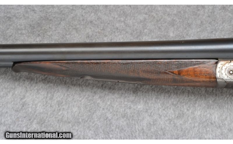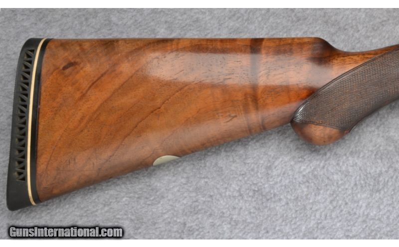 Description: Receiver shows traces of case color in protected area with carry wear to the lower tang. Wood has been lightly sanded and refinished with a non-original pad fitted to the buttstock. Bores are bright and excellent. Lockup is tight and ejectors strong. SOLD Manufacturer: S/N 81XX Caliber Info: 16 GA Chambers: 2 1/2" with Ejectors Metal Condition: Very Good Wood Condition: Good - Refinished Bore Condition: Excellent Barrels: 30 Triggers: Double Stock: Checkered Walnut Pistol Grip Stock Dimensions: 14 3/4" LOP Fore End: Checkered Walnut Splinter Butt Pad: Black Vented Rubber Weight: 6 1/2 LB Sights: Single Front Bead Chokes: Full/Full Item Location: Wheeling, WV |