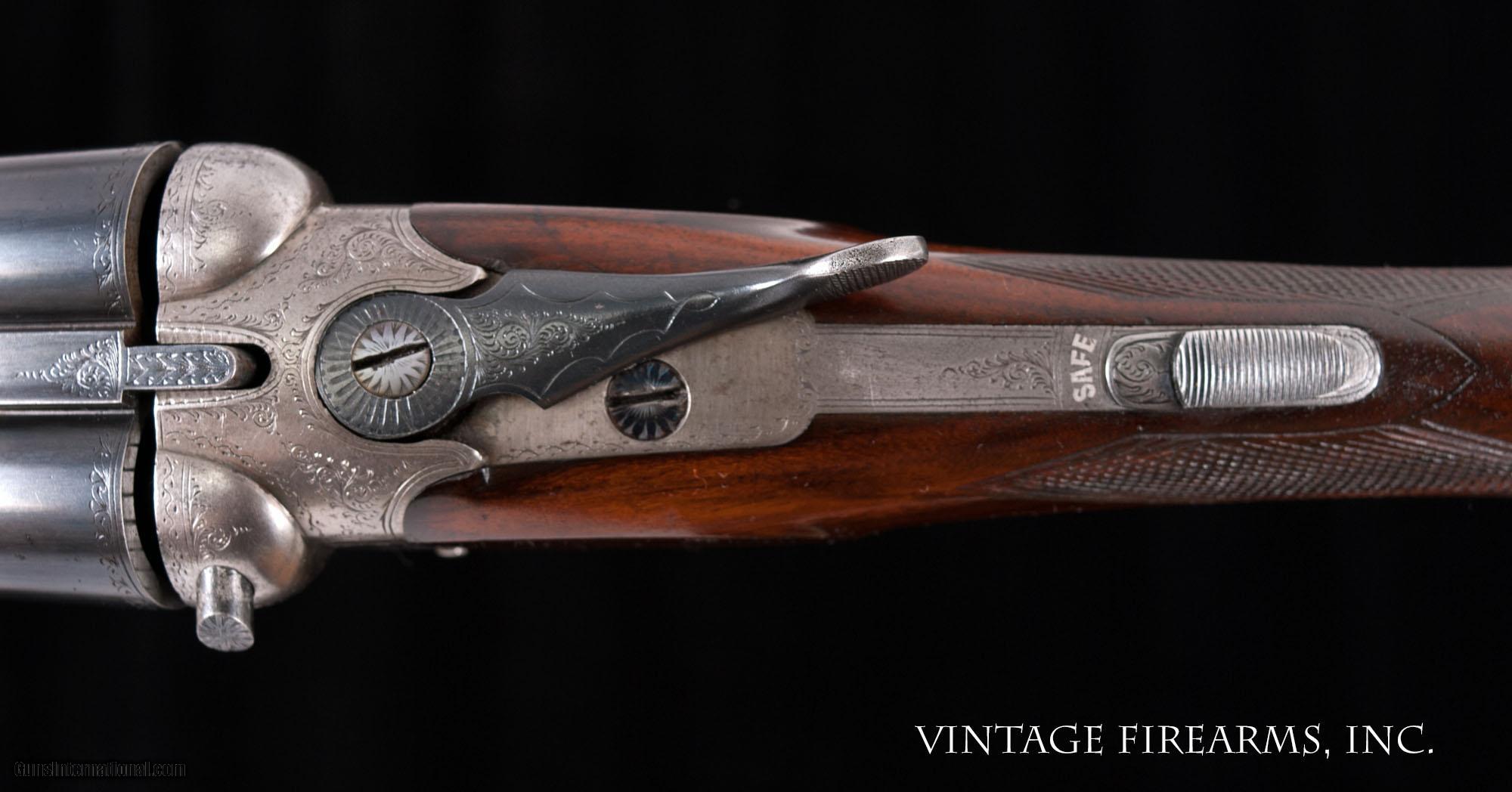 Description: Blake and Beeley 16 Gauge Side-by-Side 30” BARRELS, EJECTORS, MODERN PROOF, 6LBS, ENGLISH GRIP, NICE! General Specs: Blake & Beeley, Year 1896-1925, 16 Gauge, 6lbs 2oz, Side by Side Serial Number: 1521 Blake and Beeley was a marketing company of quality shooting accessories and guns in Mansfield, England. This fine upland gun, sn1521 built prior to 1925, is in excellent condition and perfect mechanical order. Built on the venerable Anson & Deeley boxlock ejector action, this gun has been very well maintained, as the ejectors are strong and well timed, the barrels are tight on the hinge pin and breech face like a new gun, the bores are excellent, and there are no cracks or repairs to the wood. The graceful 30” nitro steel barrels are in proof, with recent proof marks indicating the gun was reproofed sometime after 1989, 2 ½” chambers, choked perfectly for hunting upland birds over pointing dogs or in the thick stuff at SK/LM, no dents or dings, a minimum barrel wall thickness a very healthy 35 thousandths as the thinnest spot anywhere, a really nice set of barrels. The nicely figured English walnut stock has great stock dimensions with 14 ¾” LOP to a checkered butt, excellent checkering with a mullered border, forend has ebony tip, all in excellent condition. This gun shoulders and swings like you would expect from a fine English gun, weighing 6lbs. 2oz. and balanced just forward of the hinge pin. These British made boxlock ejector guns are the very best value for a fine shooting gun in the market place, with exceptional workmanship and handling characteristics, hand engraved, perfect wood to metal fit, really gorgeous wood, all at a very affordable price. Thanks for looking. Barrels Barrel Length: 30" Chokes: .004/.013 SK/LM Bores: excellent Bore Diameter: .658/.660 Wall Thickness: .040/.035 % Blue: 95% Chambers: 2 1/2" Ribs: ring Sights: single Action Action: tight Ejectors or Extractors: ejectors/strong/timed Screws: very good Engraving: sharp 50% scroll Trigger Type: double, crisp Trigger Guard Color: 80% Stock Type: english stock/splinter forend; nicely figured English walnut LOP: 14 11/16" LOP To End Of Wood: same DAH: 2 1/8" DAC: 1 9/16" Cast: 3/16" off Checkering Condition: excellent Butt Treatment: checkered butt There are more photos upon request. We offer a 30 day mechanical warranty on this fine shotgun. Call us for full details. PLEASE SEE MY OTHER FINE VINTAGE FIREARMS. Just open one of my ads and click on the line that says “see all items from this seller” and a very nice list of fine sporting and collectible arms will appear. I have many more fine sxs shotguns not yet listed. Thanks for looking! We employ a full time gunsmith on premises and can perform alterations to suit your needs within a few weeks of purchase. Payment Methods: Money Order, Certified Check, Personal Check, Wire Transfer Inspection Period / Return Policy: Three Days from the date the item was received. Sales Tax: 6% Michigan Only Shipping & Insurance: Ground $45.00 We ship internationally! Item Condition: Used Requires FFL?: Yes If you have any questions about this item or payment, please email or call us directly, at #616-292-6240. Thanks! Jay Shachter, Vintage Firearms, Inc We employ a full time gunsmith on premises and can perform alterations to suit your needs within a few weeks of purchase. Common requests are: -stock bending to suit your particular requirements -addition of any specified butt pad to increase length of pull -alteration of chokes to suit your shooting preferences -lengthening of chambers and forcing cones -darkening stock color with penetrating stains -restoring any part of the gun including rust blue, charcoal blue, bone and charcoal case color, wood restoration and checkering recuts. If you like one our guns but it needs "tweaked", let us know and we can quote you a time and price. Some enthusiasts like the guns "as found" and others want them "just so". We often list guns as found and let the particular buyer choose how they want their gun to fit or look. SOLD Curio/Relic: Yes |