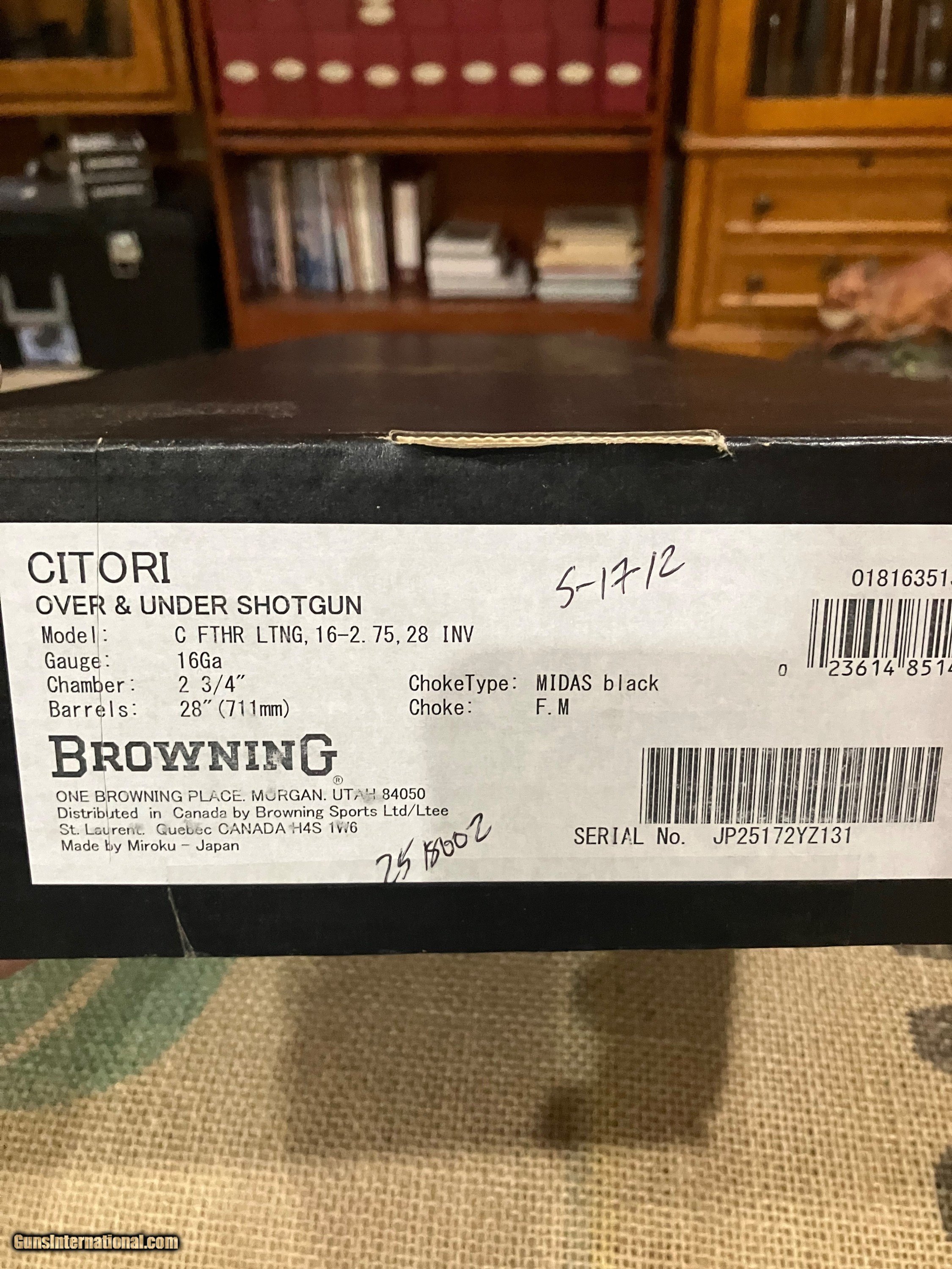 Description: Here is a rare browning 16 gauge feather lightning, nib it has a 28 inch barrel.Not many of these around to buy.It has been discontinued by browning.Gun has to be shipped to a ffl dealer. Shotgun Gauge: 16 Gauge Price: $3,350.00 Shipping: $50.00 Contact Seller |