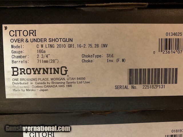BROWNING CITORI WHITE LIGHTNING 16 GA., 28” INVECTOR NEW UNFIRED IN THE BOX