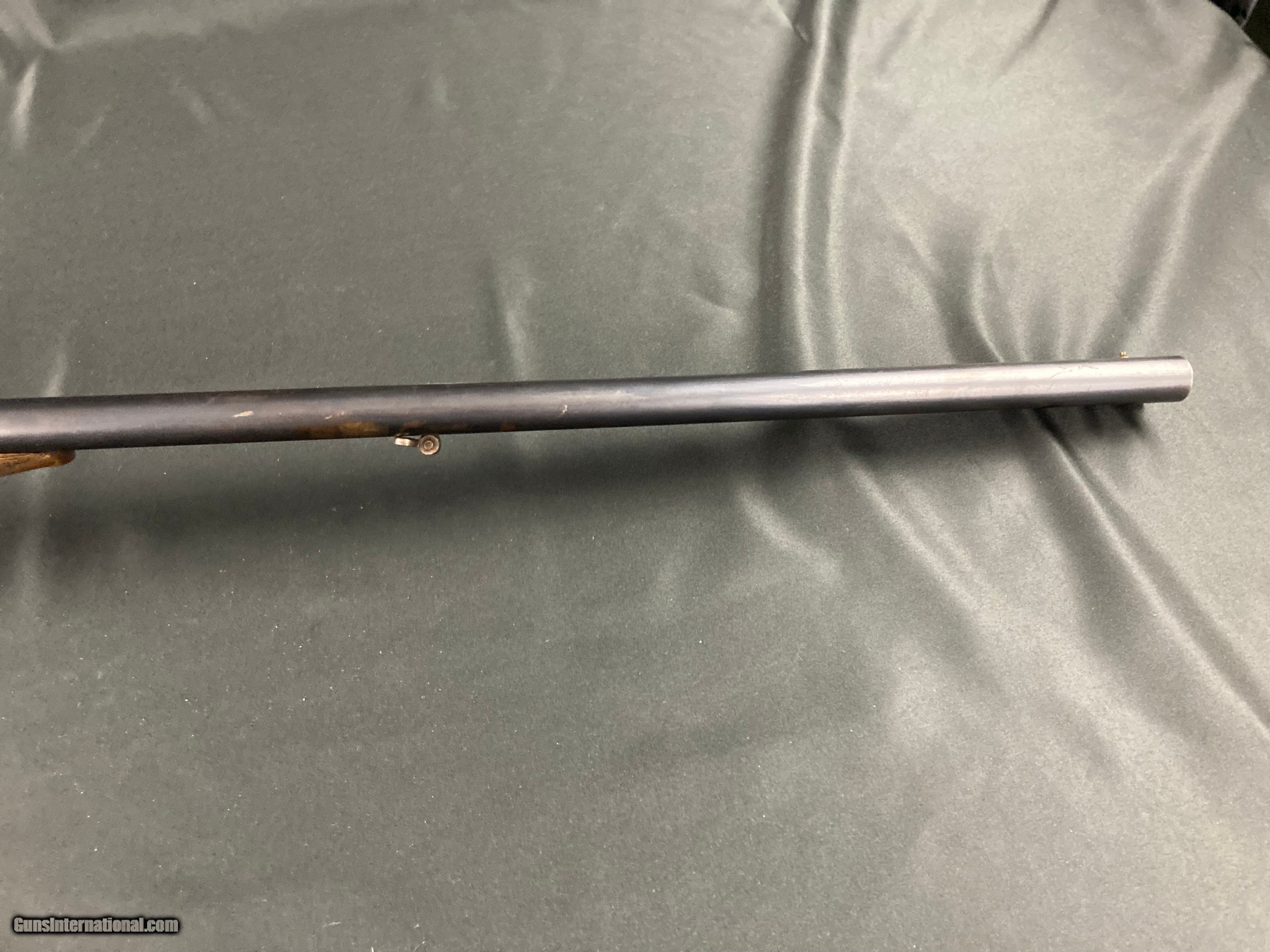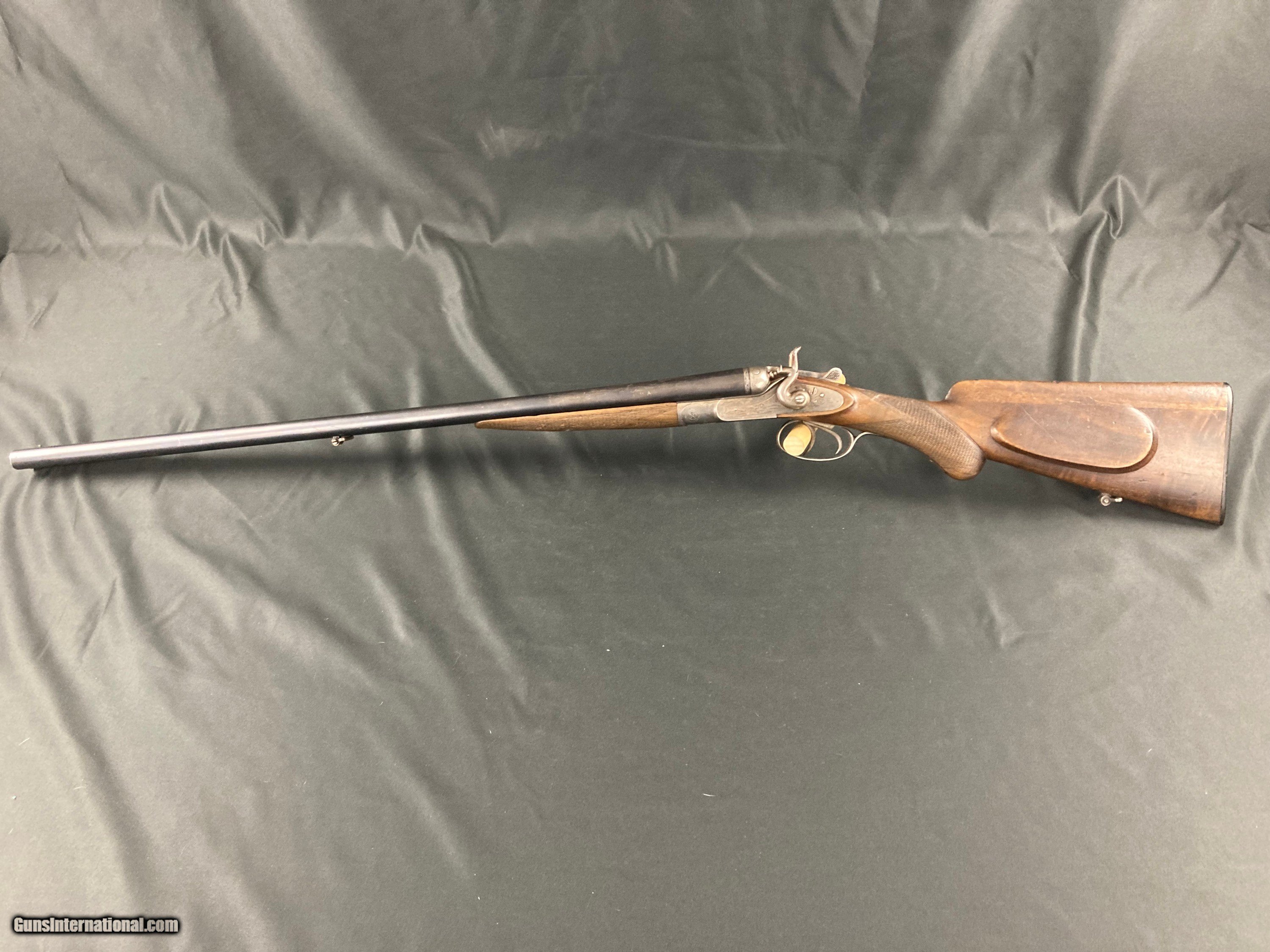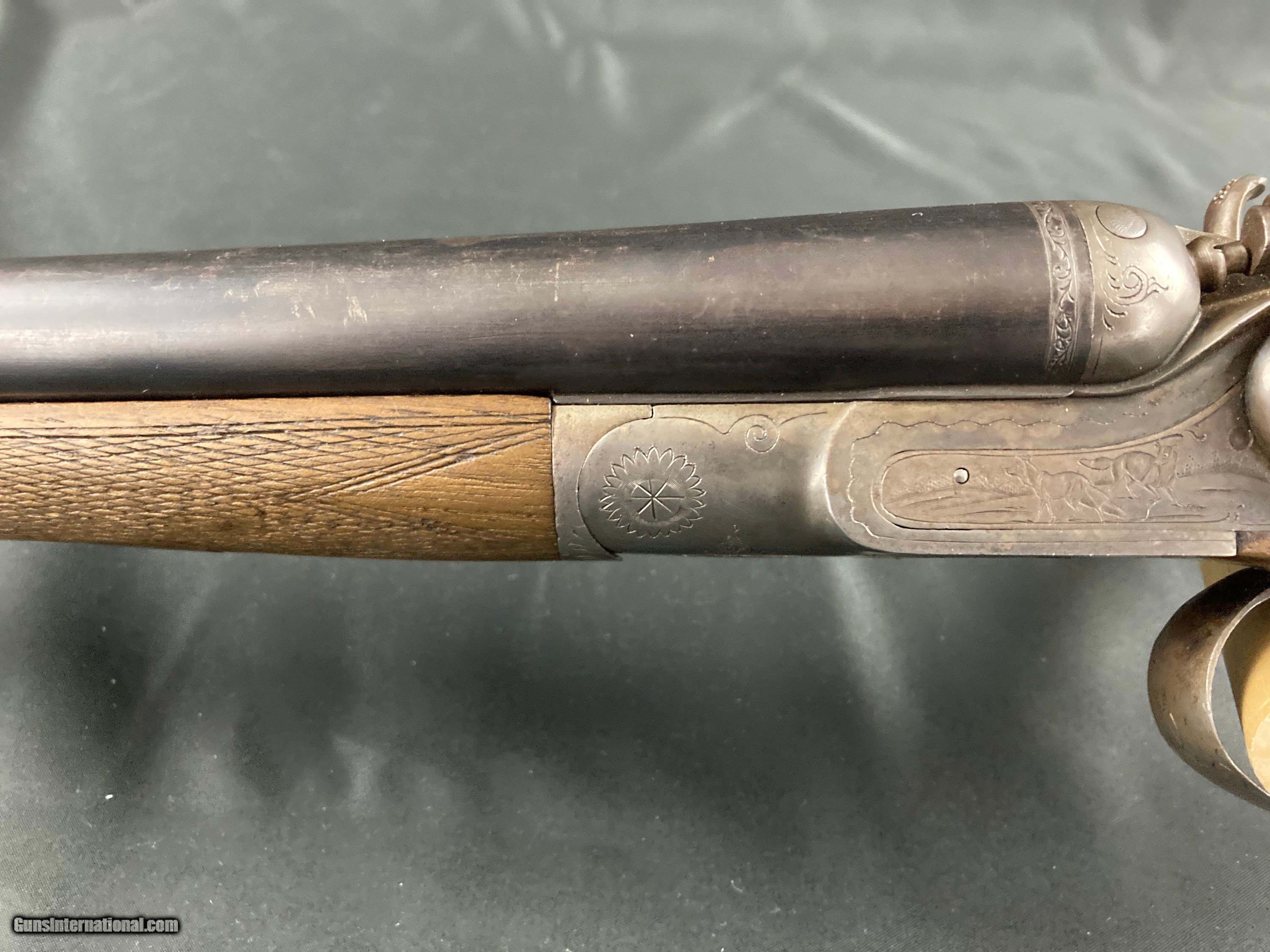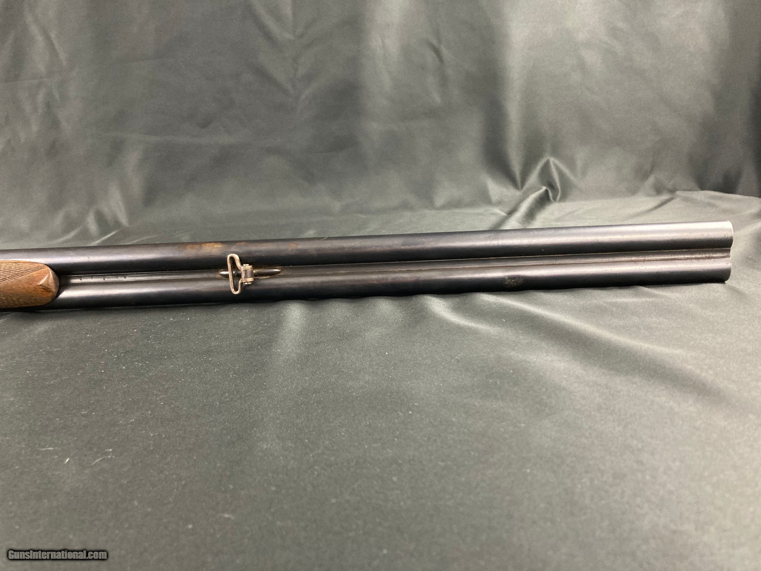 Description: Short chambers, hammers, Fluid steel barrels have been cut to 27”, double tiggers, extractors, cheekpiece for right hand shooter, original buttplate, 14” length of pull, original swivels, tight action, excellent wood around the sideplates, engraving with game scenes, matching numbers, a ding in the left barrel, the stock comb has been professionally added ($25 shipping) SOLD Shotgun Gauge: 16 Gauge |