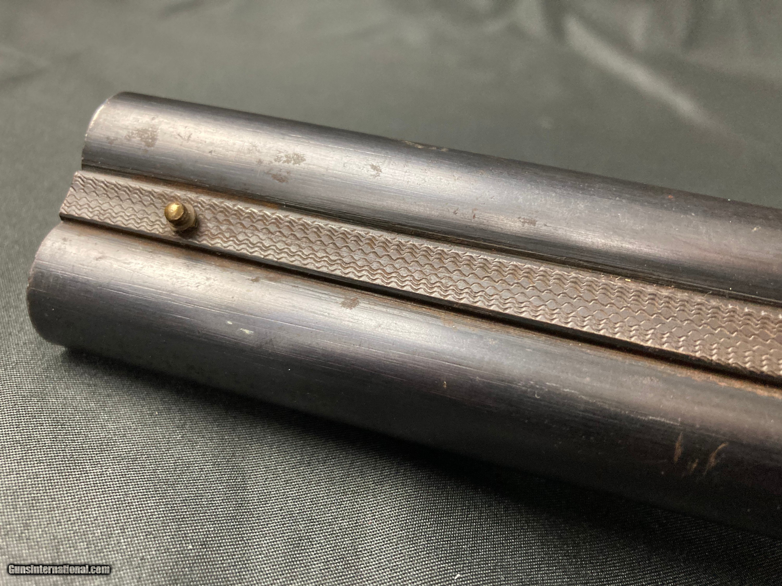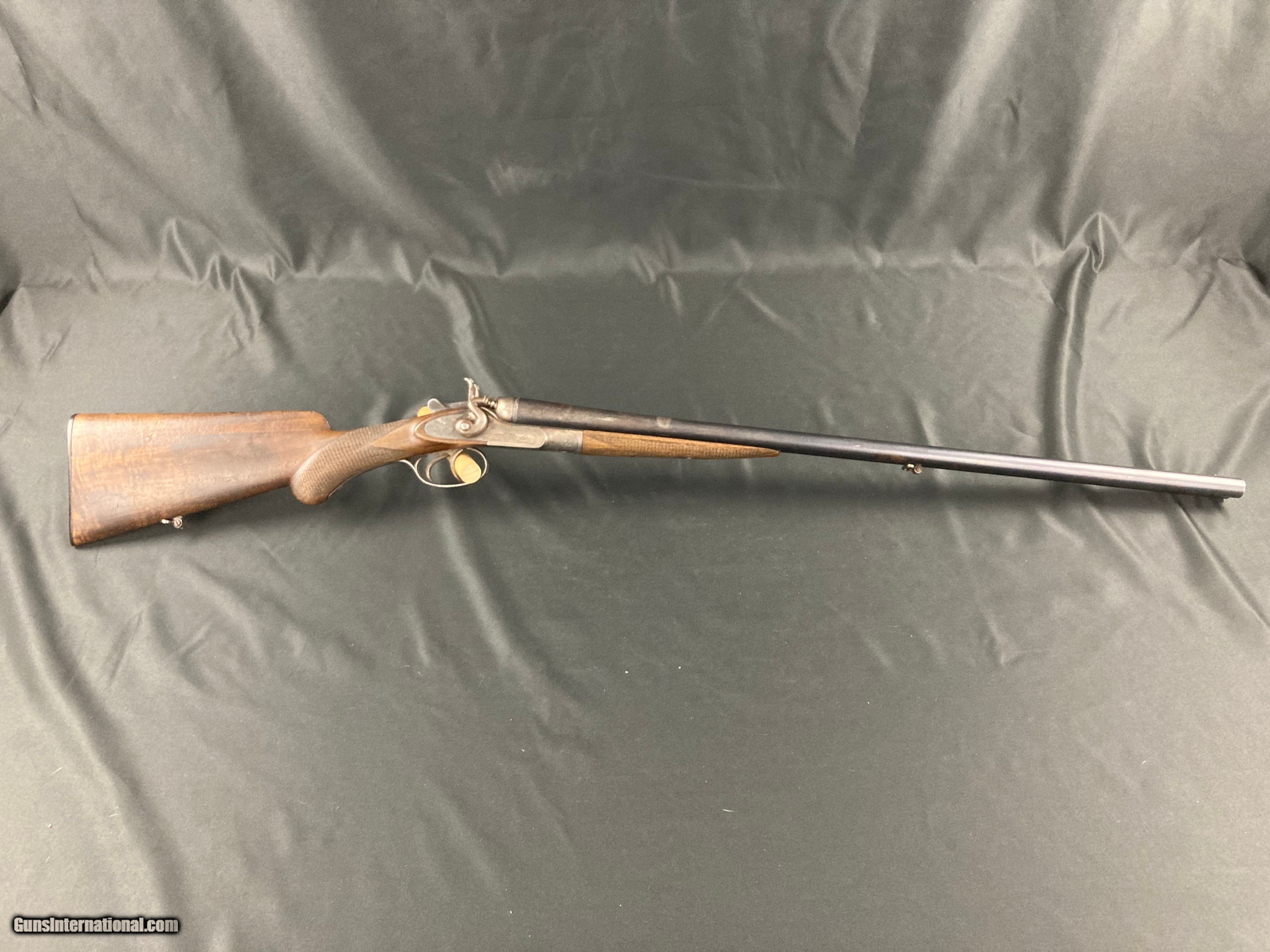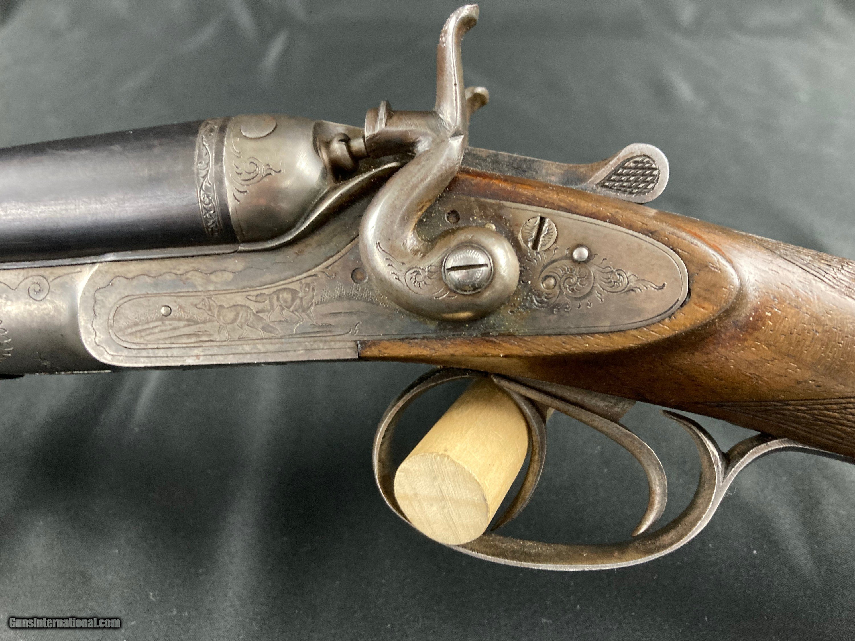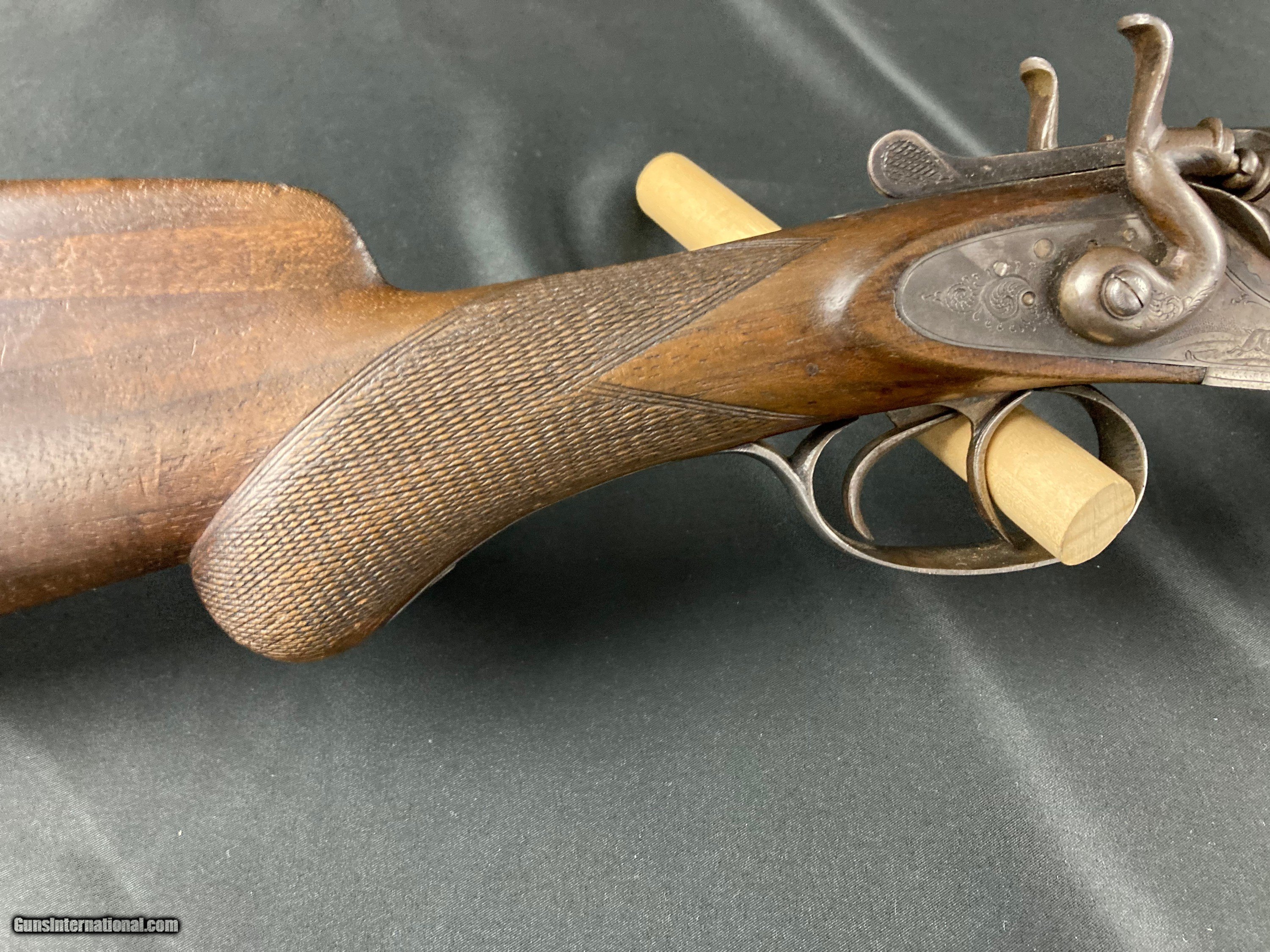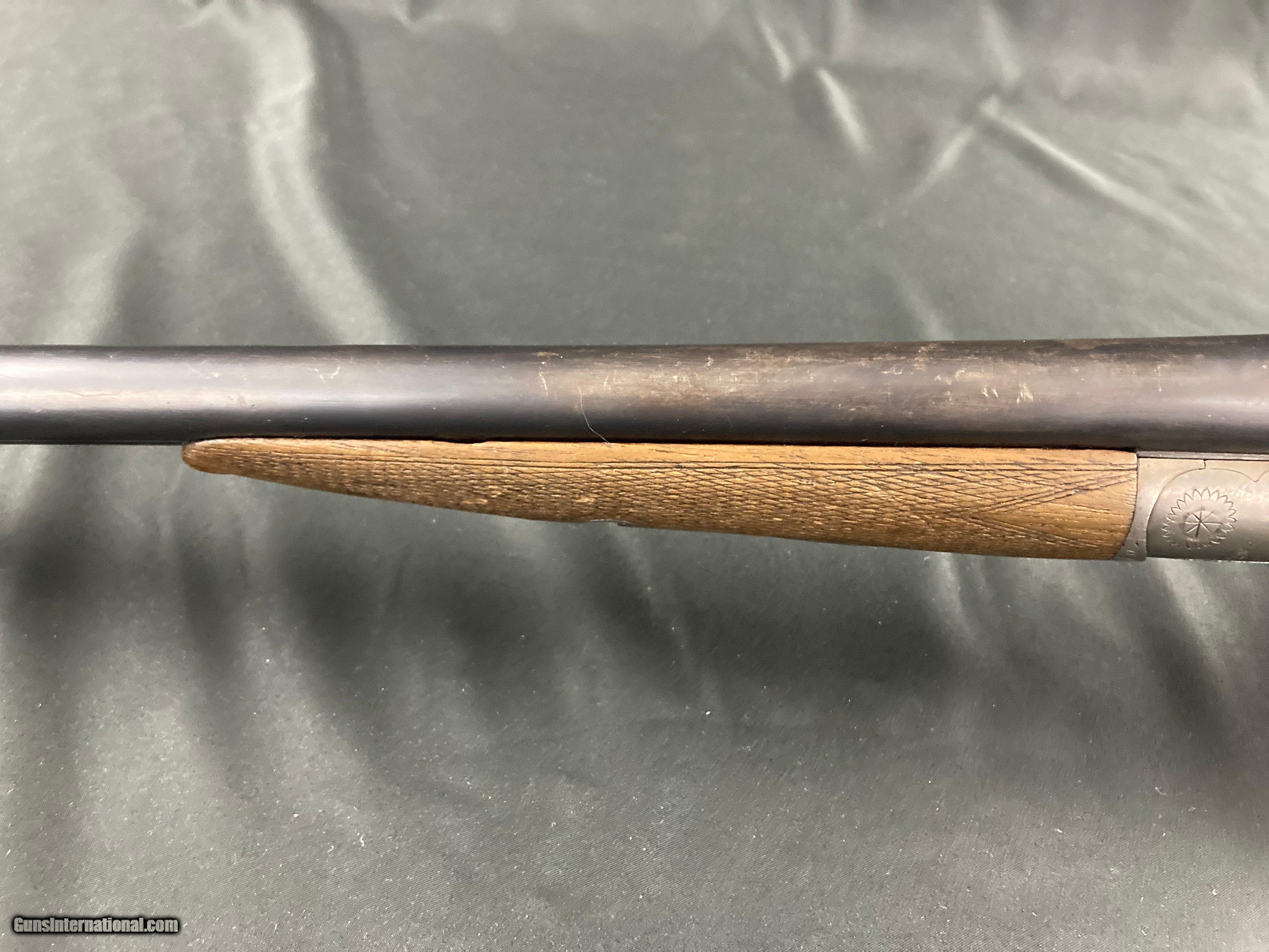 Description: Short chambers, hammers, Fluid steel barrels have been cut to 27”, double tiggers, extractors, cheekpiece for right hand shooter, original buttplate, 14” length of pull, original swivels, tight action, excellent wood around the sideplates, engraving with game scenes, matching numbers, a ding in the left barrel, the stock comb has been professionally added ($25 shipping) SOLD Shotgun Gauge: 16 Gauge |