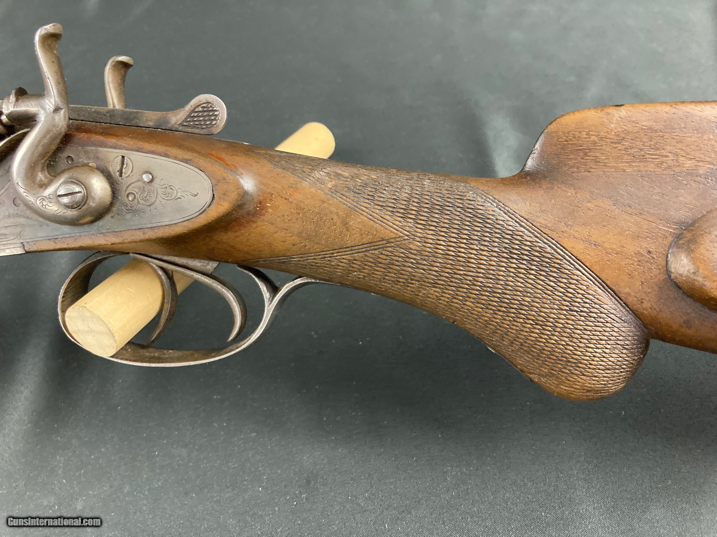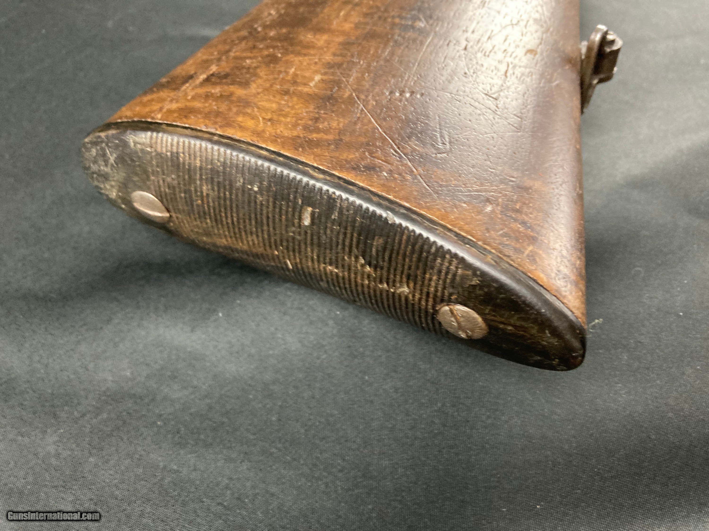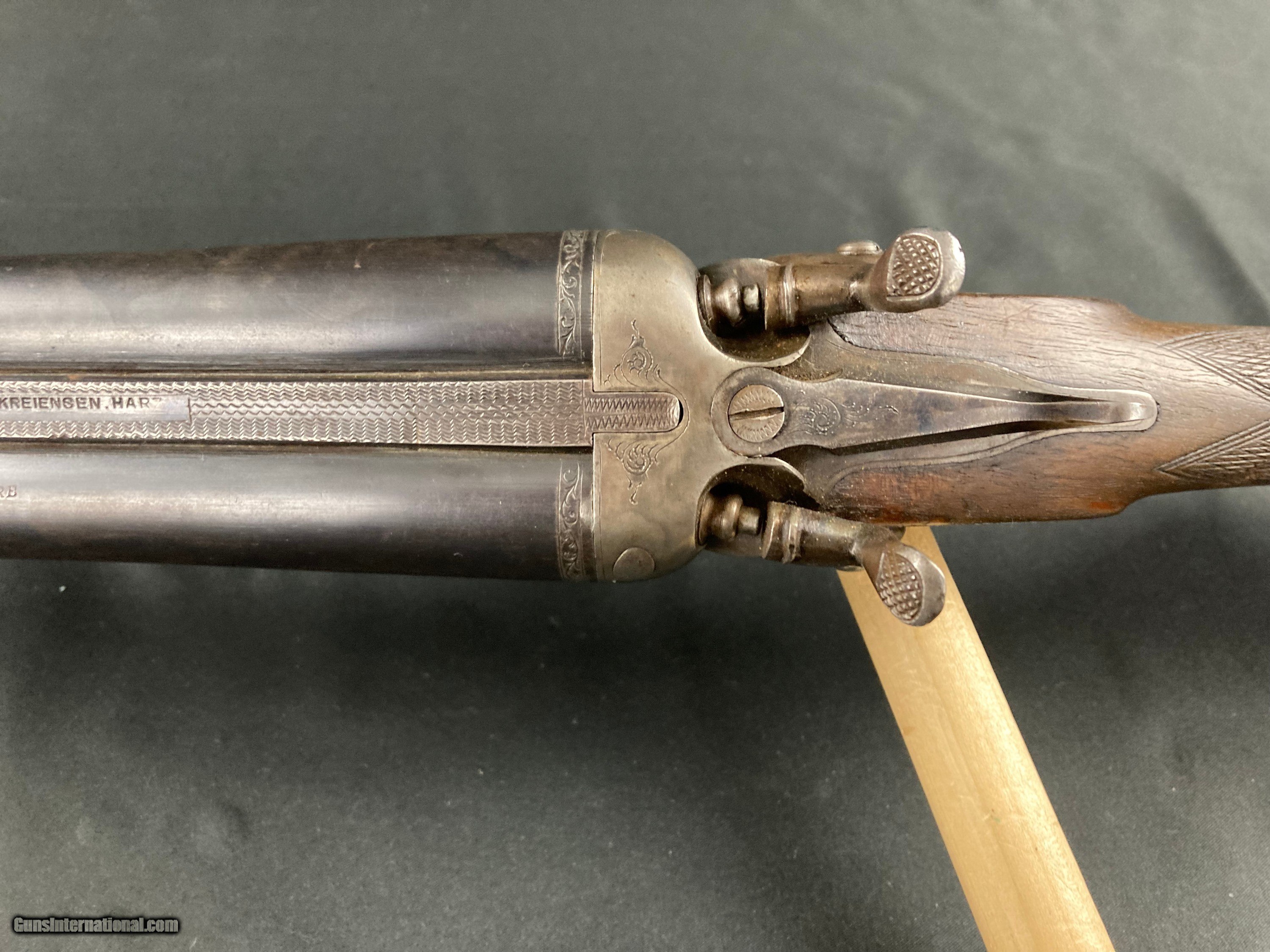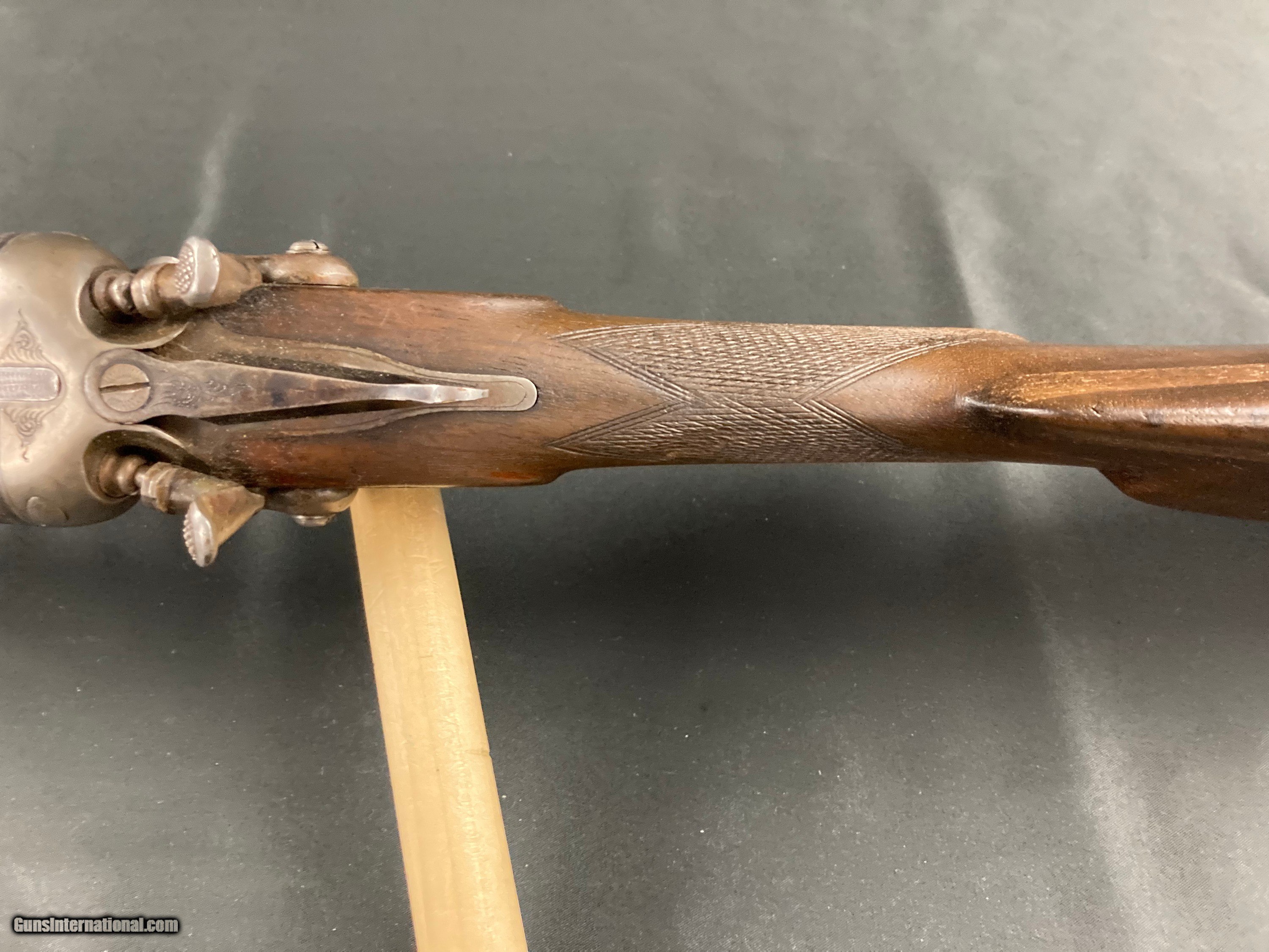 Description: Short chambers, hammers, Fluid steel barrels have been cut to 27”, double tiggers, extractors, cheekpiece for right hand shooter, original buttplate, 14” length of pull, original swivels, tight action, excellent wood around the sideplates, engraving with game scenes, matching numbers, a ding in the left barrel, the stock comb has been professionally added ($25 shipping) SOLD Shotgun Gauge: 16 Gauge |