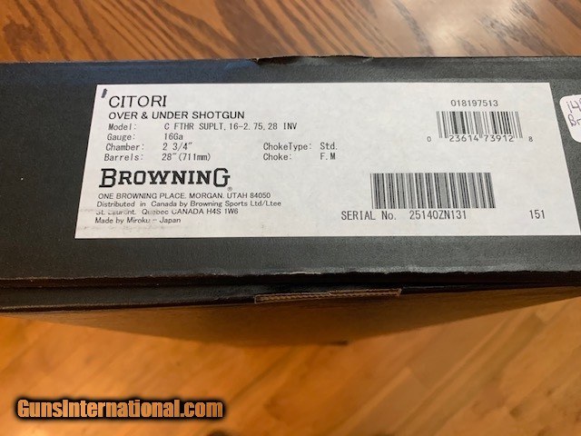 CITORI FEATHER SUPER LIGHT 16 GA. 28” INVECTOR, NEW UNFIRED, 100% COND. IN THE BOX