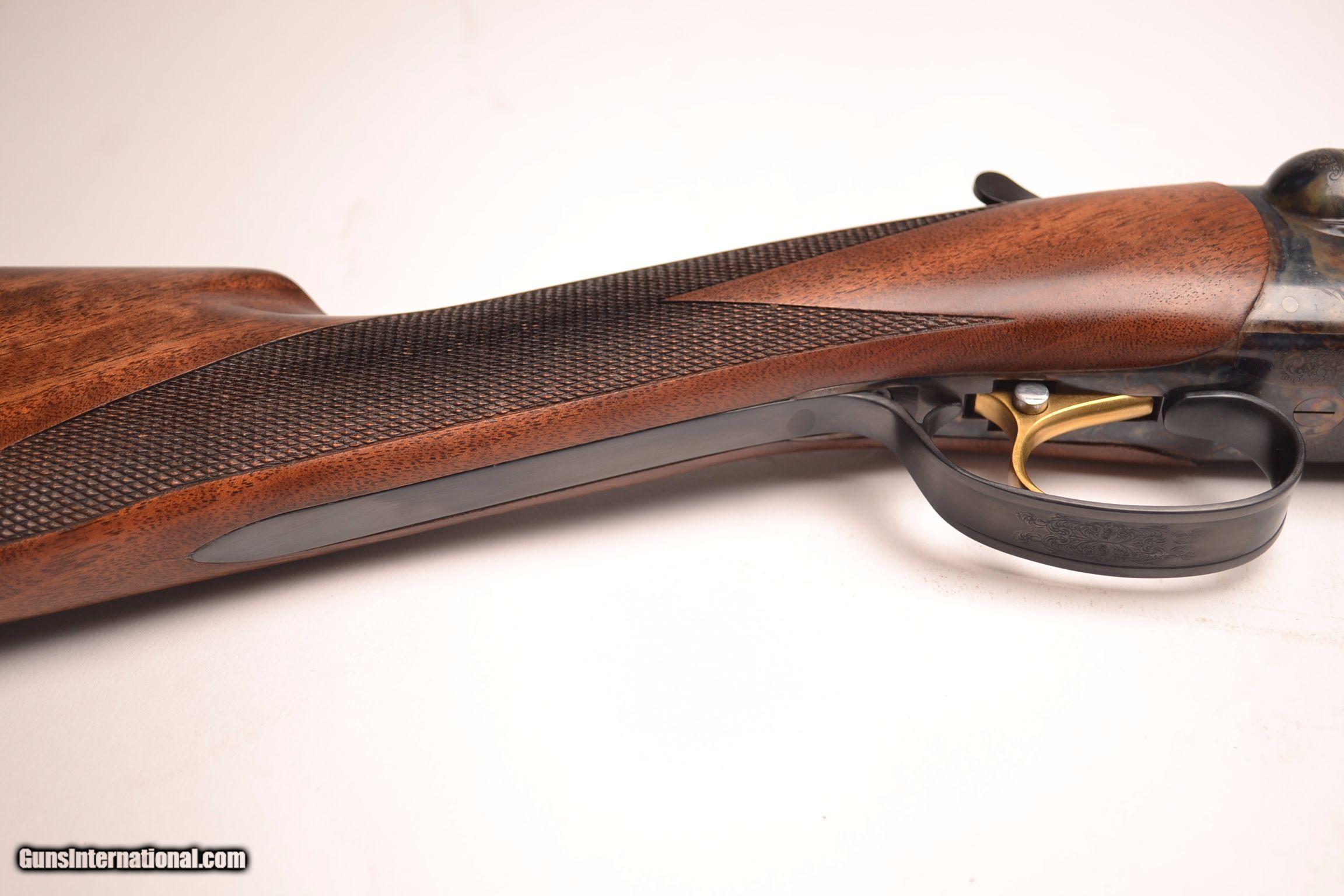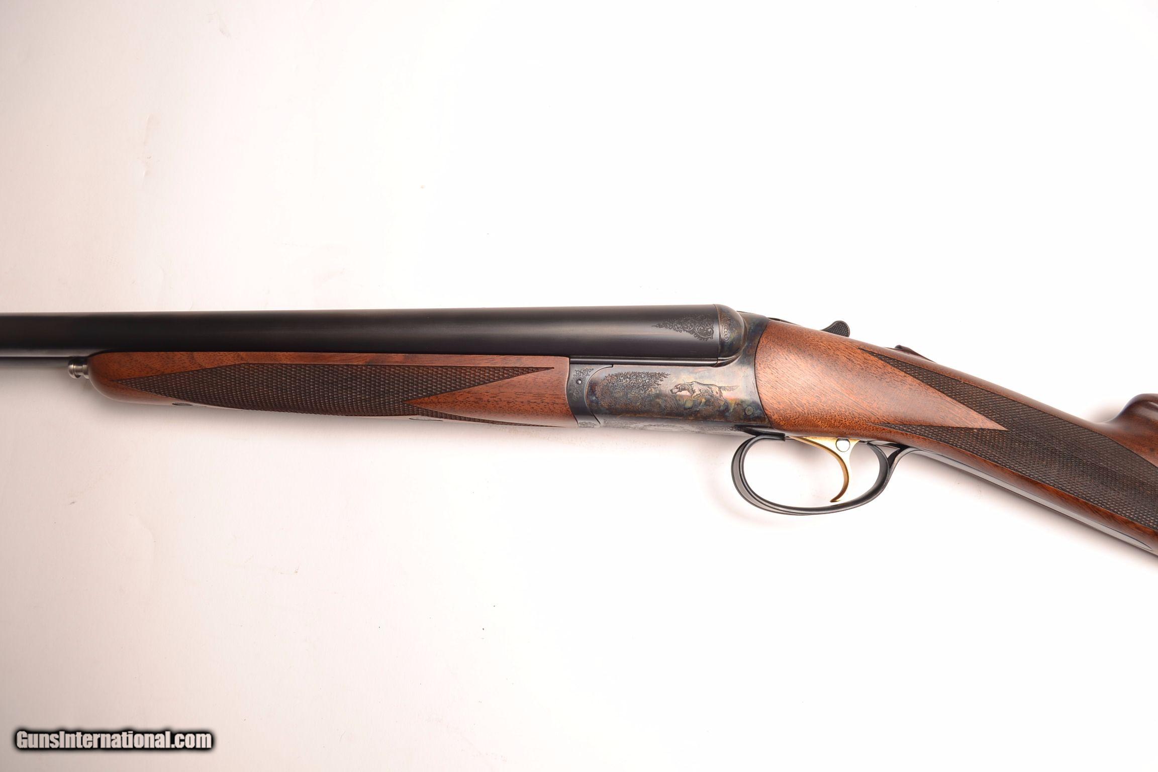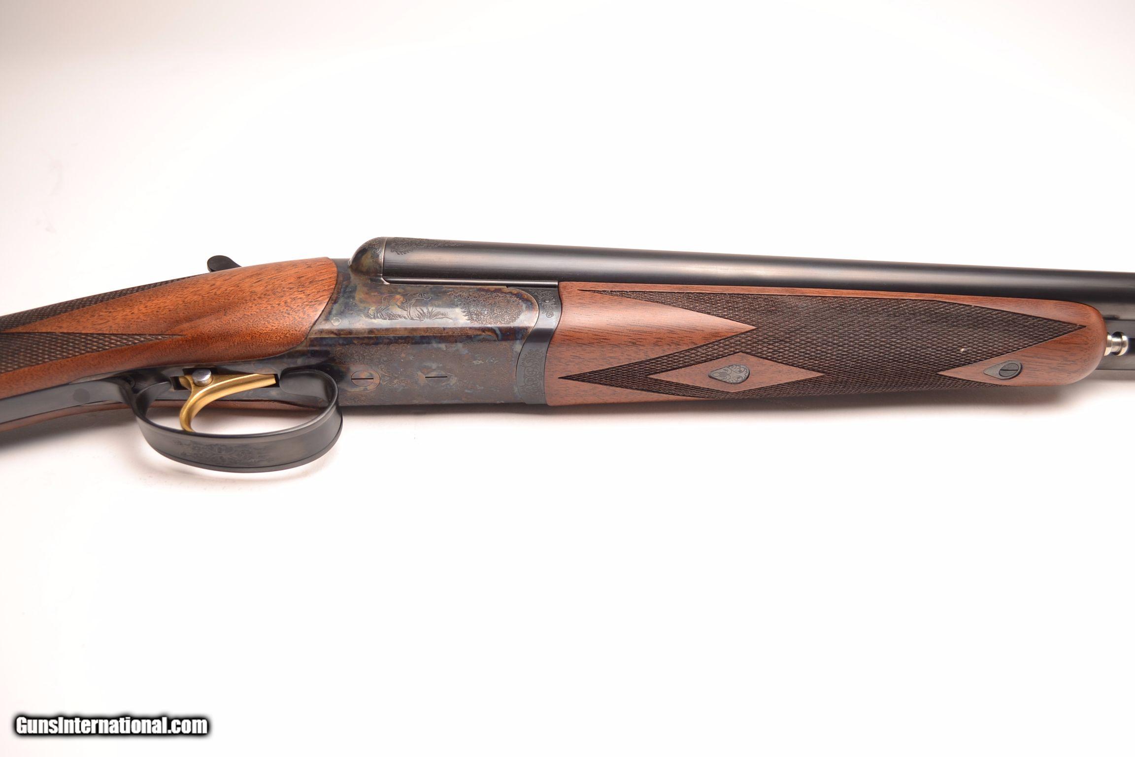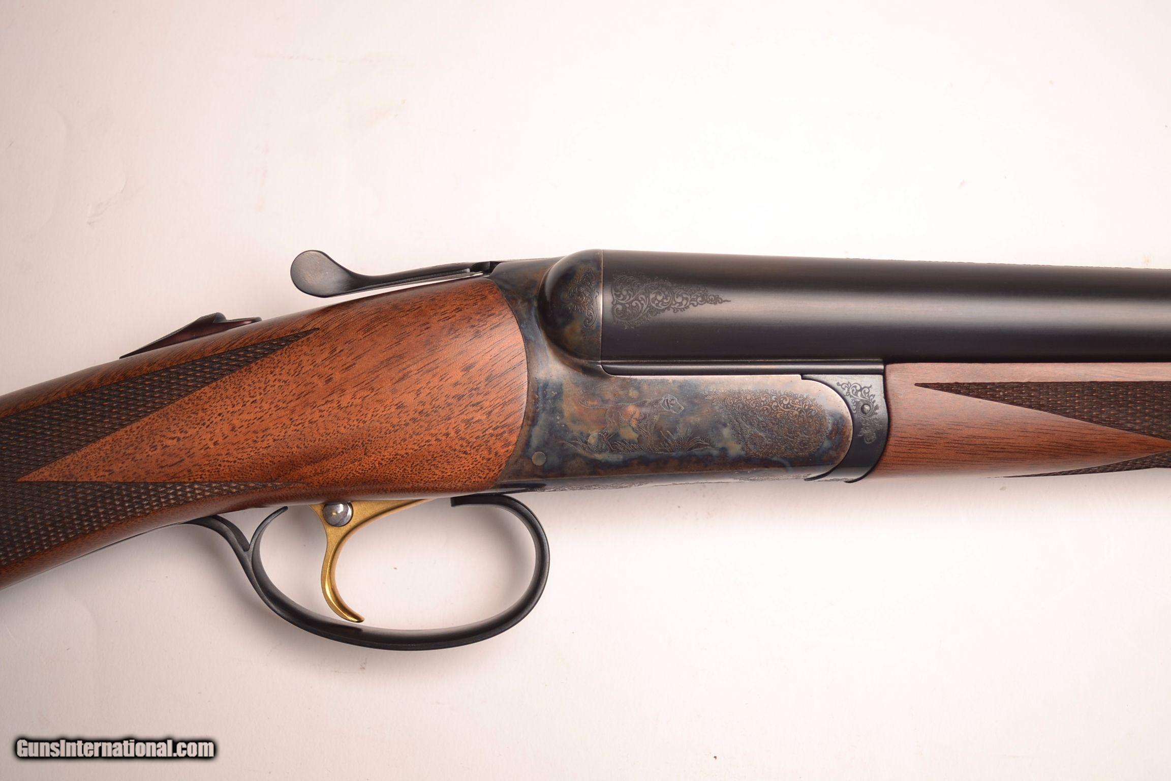 Description: RBL 16 - 16ga, 29” IC/Mod., American black walnut straight grip stock, splinter forend, London oil finish, gold single selective trigger, automatic ejectors, sold game rib, dogs on point surrounded by full coverage scroll engraving over magnificent case coloring, Base price - $3,795.00, options include, SST - $175, S&H - $50, 100% new and unfired, available for immediate delivery, includes makers’ case and accessories.