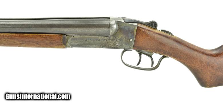 Description: Eastern Arms 16 Gauge shotgun. Side by side field gun with 28” barrels. Metal has a brown and gray patina with some case colors on receiver. Good overall condition.