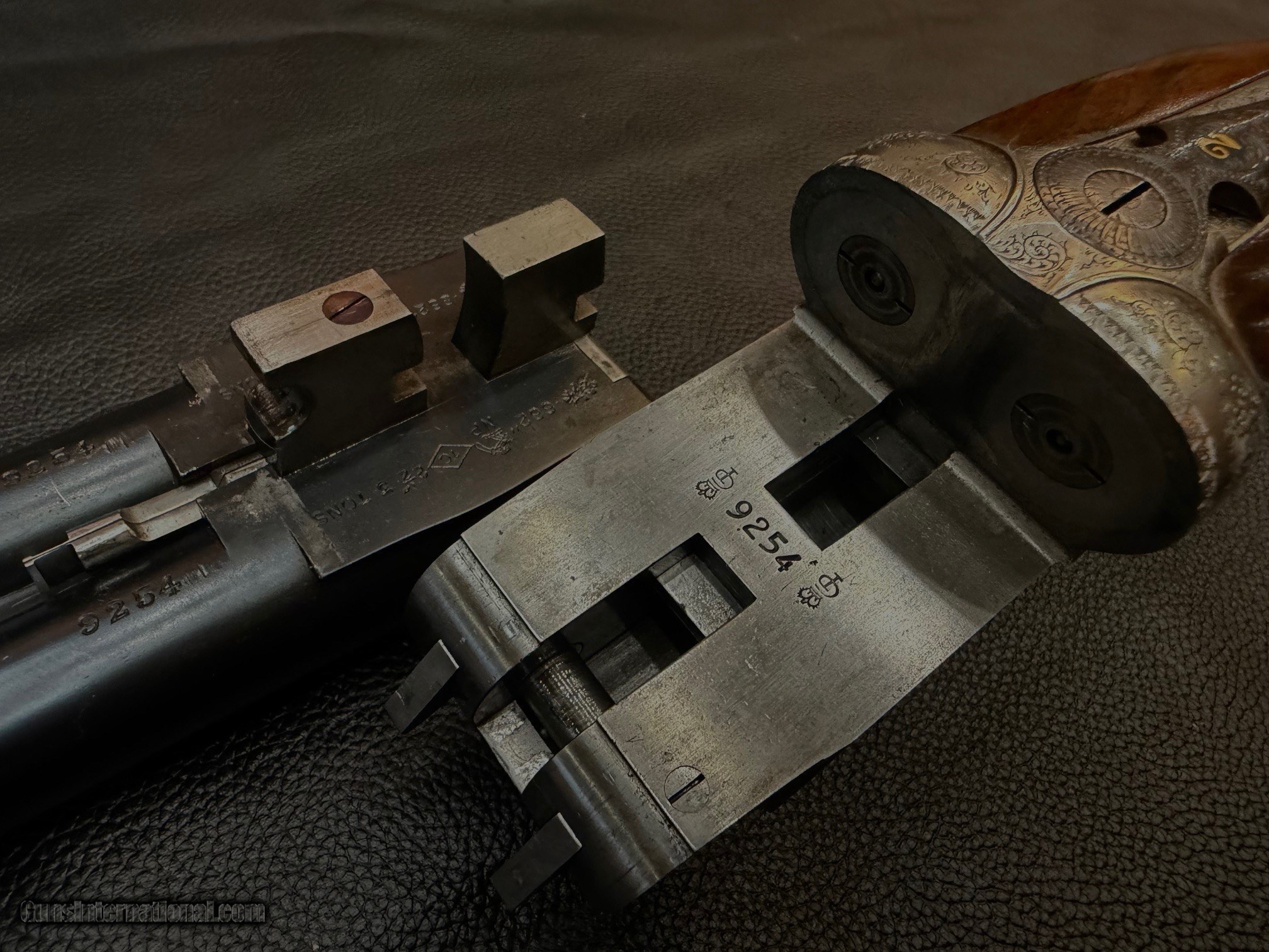 Description: Exceptionnal 1965 Pair of Deluxe grade self Opening 16 gauge BOSS and CO shotguns A very good conditions pre-owned Pair of Boss and Co side by side, sidelocks ejectors. Two triggers - 27 inches chopperlum barrels Action Calibre: .16 - 2 1/2 Action: Sidelocks ejectors, easy opening system Triggers: Double Safety: automatic Barrels Barrel Length: 27 inches Type : Chopperlump Inter Diameter : 662 for N°1 / 662 for N°2 Wallthickness : 23/23 on N°1 - 24/24 on N°2 Chokes : Modified / Imp modified on both (0,4 mm - 0,7 mm) Stock Type: French exhibition grade Walnut Length: 15,35 inches (inclued 0,65 pad) Grip: Classic Straight Cast : Straight - Drop C : 1,456 - Drop H : 2,362 inches Engraving Description: Typical english scrolls and bouquets Finish: Brush bright finish Other Information Weight: 6 lbs 3,2 Case: Original motor case Date of Manufacture: 1965 Price: $65,000.00 This rifle comes from France. Original and very good conditions Available in our Paris Shop Armurerie Elysées and ready to export to US. We handle all customs formalities and transport right to your gun shop. All informations on our guns are available on armurerie-elysees site. Shotgun Gauge: 16 Gauge Price: $57,000.00 Shipping: $1,500.00 Contact Seller |
