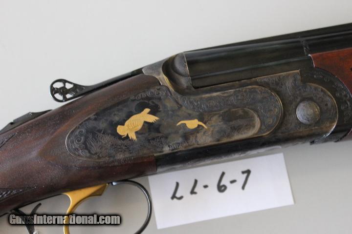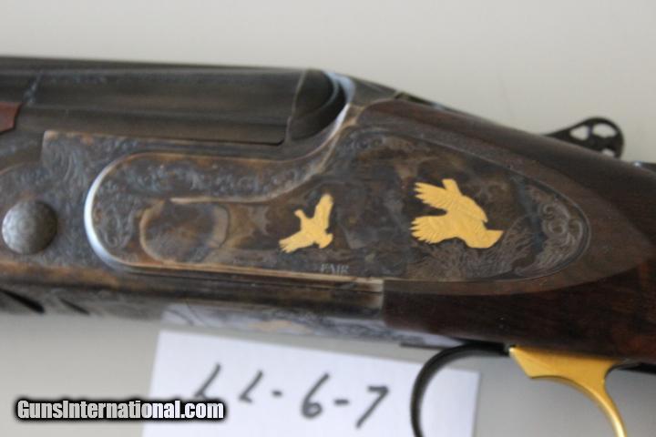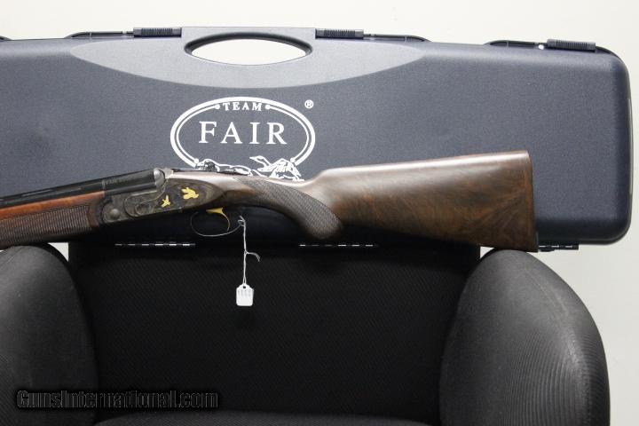 Description: Rizzini-Fair Jubilee Prestige Tartargua Gold - 16 ga. 30" choke tubes. Rare 30" barrels! This model has a sideplated receiver with a case color finish. It features beautiful gold game scene inlays with attractive scroll accents surrounding the receiver. The gun is on its' own frame size and is 6 lb 10oz. The top lever is sculptured and it also has a stock oval. Here is a fine quality Italian 16 ga. that has the proper weight and handling of a 16 ga. Just look at the outstanding wood on this gun! Layaways ok. Cased. New. $2795. Quality Arms, Houston, TX. Call Direct: 281-870-8377 ( 1 1/2 x 2 3/8 x 14 3/4 * 6 lb. 10 oz) LL-6-7 SOLD |