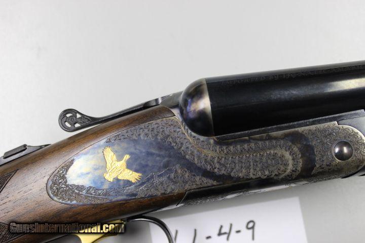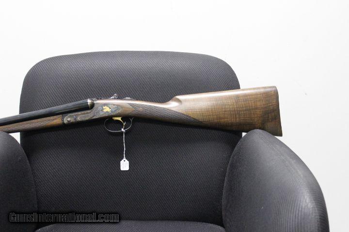 Description: Fair-Rizzini Iside Prestige Tarturaga Gold. 16 ga. 30" choke tubes. Here is a very nice 16 ga Italian gun on a 16 ga. frame! The gun has a sideplated receiver finished in a case colored finish. The plates features gold game scene engraving with elegant fine scroll accents. Single selective trigger, selective auto ejectors. A game gun with a straight stock and a splinter forearm. Traditional hand rubbed oil finish. The 30" barrels would make a fine sporting clays gun too. Cased. New. Layaways ok. $2895. Quality Arms, Houston, TX. Call Direct: 281-870-8377 ( 1 1/2 x 2 3/8 x 14 1/2 * 6lb. 8 oz) LL-4-9 SOLD |