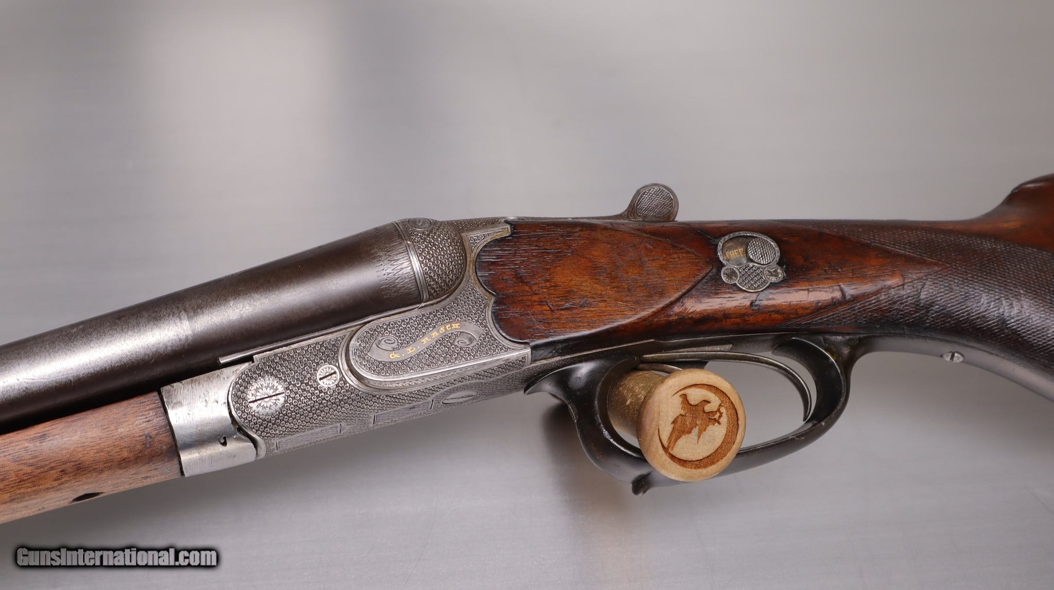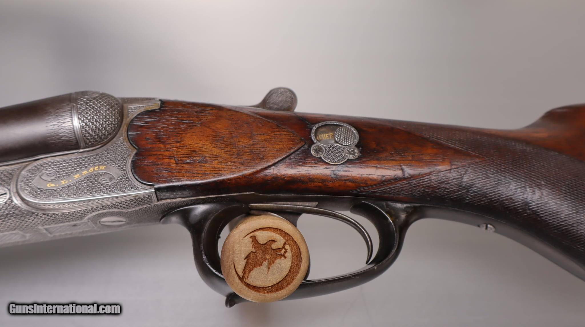 Description: Guns Listing ID: 1127591 Up for is a G.L Rasch shotgun, these beautiful shotguns were made pre WW2 in a small factory in Germany. During the war the factory was importunely bombed and never built again, from what can be found these guns were only produced from 1822 – 1944. These guns were highly sought after for their intricate engraving on the receivers, their ornate trigger guards and their beautiful walnut stocks. These guns were purchased by royal family members during that time period. All of the guns made by them are true one of a kind and works of art This gun is “Nitro” proofed, which means it was produced between 1940-1944, please look at all pictures for all proof marks. The Barrels measure 29 ½ “ and are 16 Ga, there is some wear on the bluing and pitting on the right barrel, the bores on both barrels are in excellent condition with no rust or pitting. Both Barrels are engraved G.L Rasch, although some of the engraving is worn. The receiver is in great shape and locks up tight, the entire receiver is engraved and has a patina finish. The trigger guard appear to be made out of some type of horn or plastic and has a small piece of engraved metal on the inside of it. The stock is in good condition for the age, the walnut is checkered, and is missing a rear sling swivel missing. The buttplate is an engraved metal and has some patina. The forend is in average shape, the finish is worn and wont stay onto the gun, appears to be missing a spring or something similar to keep it locked on the gun. Overall condition of gun is in good condition for the age and is definitely a true work of art, this gun would make a great piece for a collector of rare shotguns. SOLD Manufacturer: GERMAN MILITARY Model: G.L Rasch Engraved 16 Gauge Side by Shotgun SXS Pre WWII Made in Germany Condition: Used - Non-Certified Barrels: 29.5 BARREL Gauge Info: 16 GA Finish: BLUED |