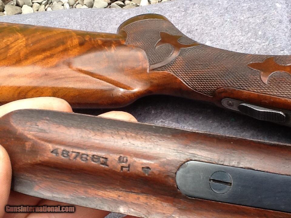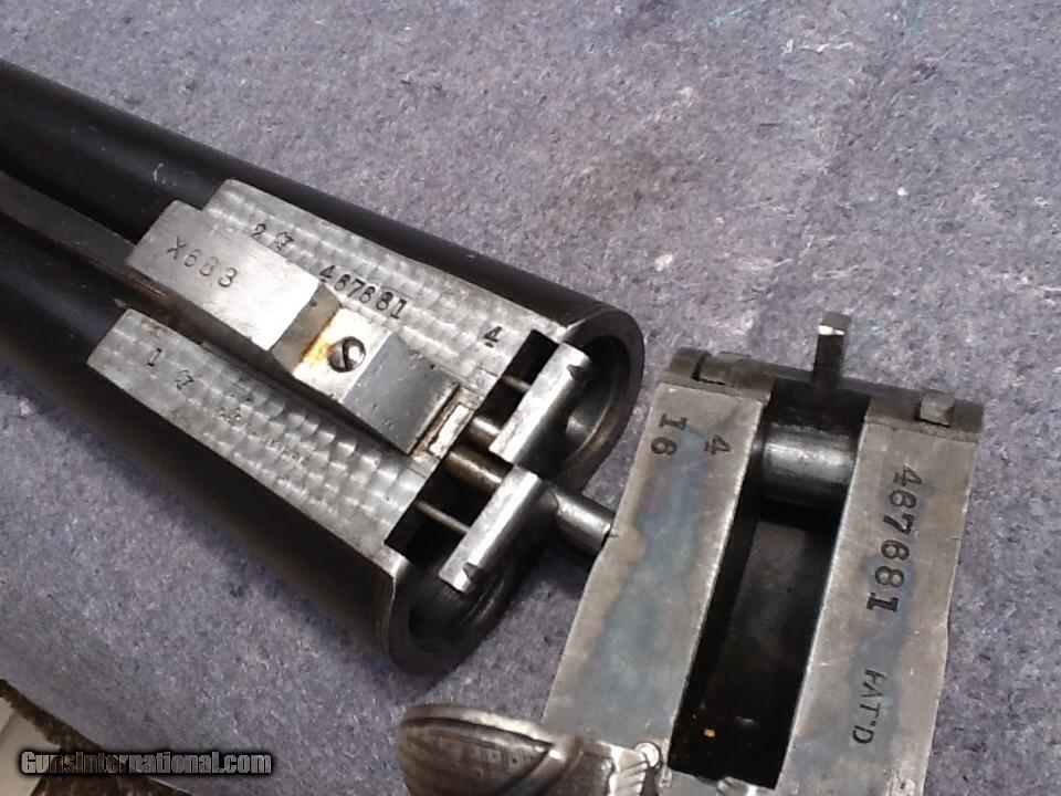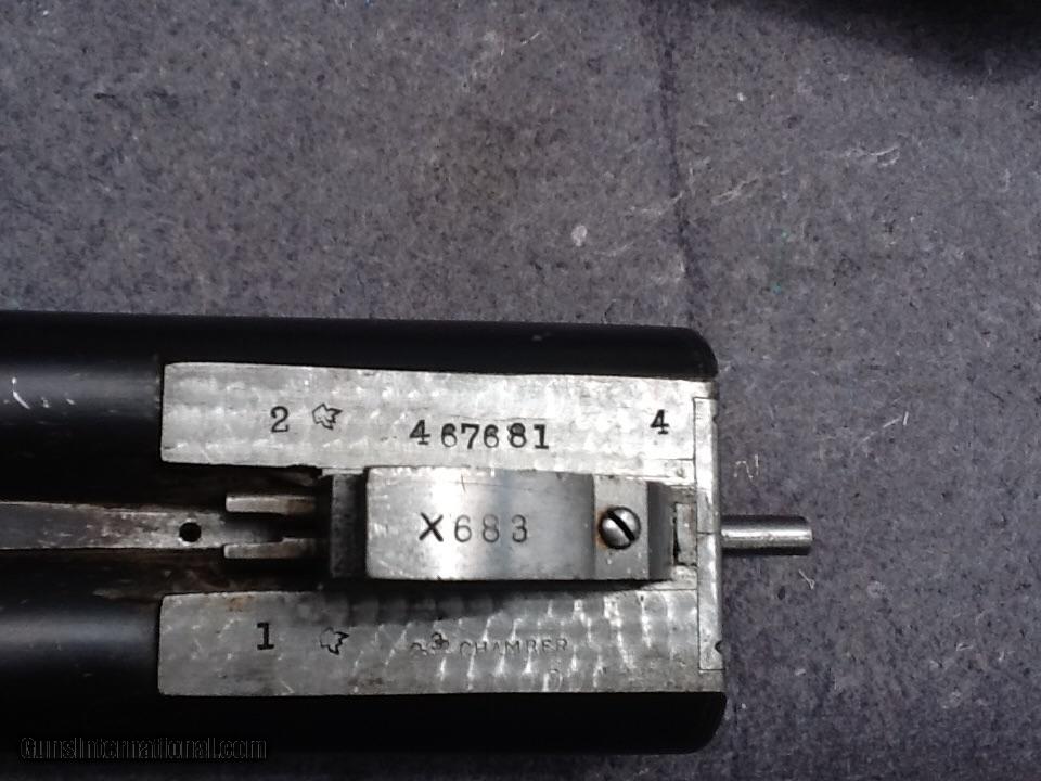 Description: ITHACA NID 16 GA GRADE 4 ,26'' BARRELS CHOKED .O18-.023 MARKED 2-1 ON BARREL FLATS (IMP-MOD) , EJECTORS, LOP IS 14'' TO ITHACA HARDPLATE , DAC 1 5/8, DAH 2 7/8, WOOD IS IN EXCELLENT CONDITION WITH EMPTY GOLD SHIELD IN STOCK,BARRELS HAVE NO DENTS OR PITTING,TONS OF CASE COLOR LEFT.GUN WAS BUILT IN 1946 2 3/4 IN CHAMBERS, THIS IS A VERY VERY HARD GUN TO FIND IN THIS CONDITION SOLD Curio/Relic: Yes Manufacturer: ITHACA Model: NID Caliber Info: 16 Chambers: 2 3/4 Ejectors: YES |