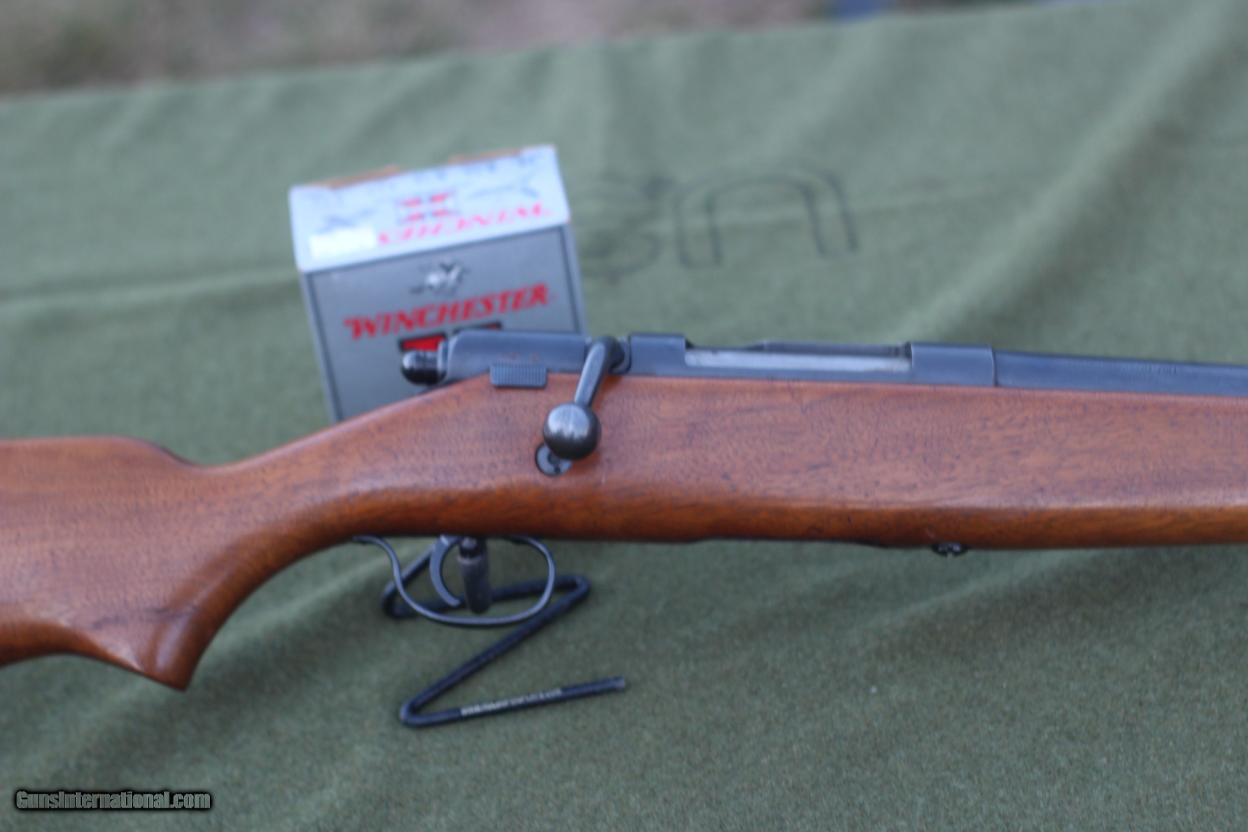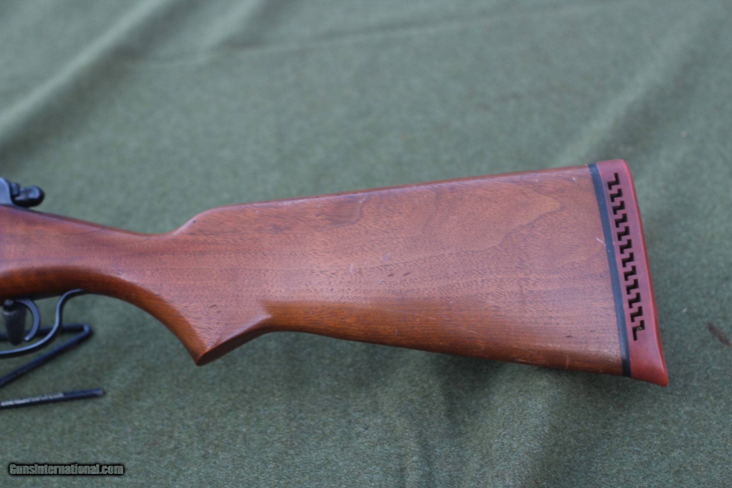 Description: 26" barrel Excellemt bore Williams adjustable sights Globe front sight 85% bright bluing Hardwood stock Drilled for scope use All steel design All original $ 199 + Shipping SOLD |