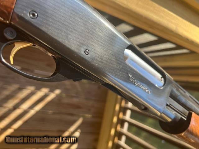 Description: This is a very nice Wingmaster. It is newer production shotgun as evidenced by the screw in choke. Only one choke is included. It is lightly used with light handling marks and the only significant blemish shown in the picture. This is a nice, relatively hard shotgun to find. Ships to FFL only. Shipping is a flat $50. Thanks for looking. SOLD Shotgun Gauge: 16 Gauge Manufacturer: Remington Model: Wingmaster Serial Number: D328308W |